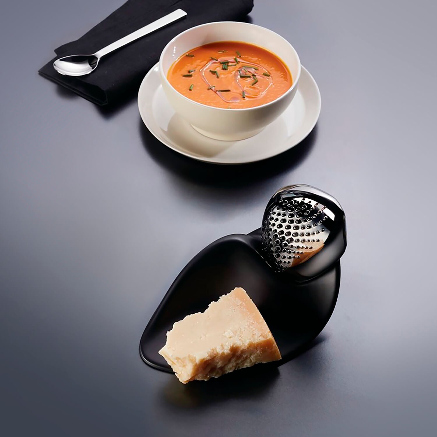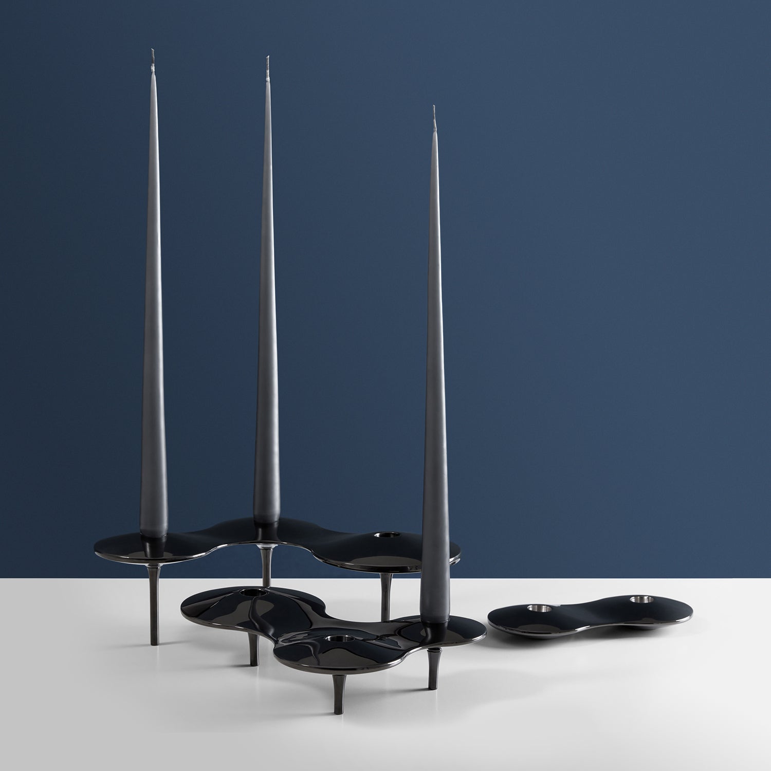 The complexity of Hadid’s architectural forms translate into her furniture designs. The Aqua Table, for example, is a unified shape that is seemingly obscure though formed with exacting precision. Three asymmetrical modules serve as the Aqua’s foundation as they flow unhindered through the surface, expressed as mild depressions in the tabletop. Constructed of a gloss-finished polyurethane, the design and manufacture of the piece was made possible only through highly advanced software and manufacturing processes.