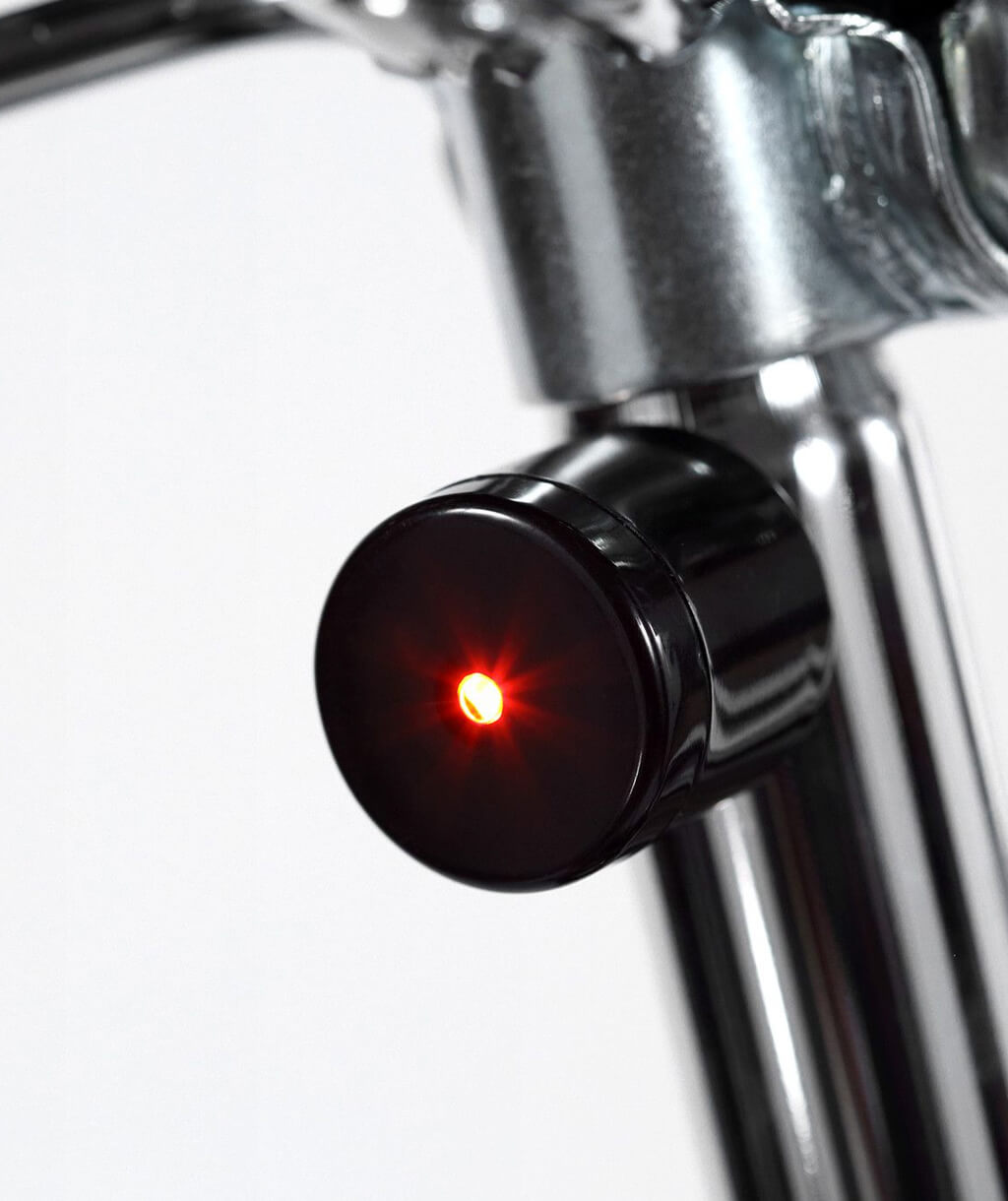 Easy to attach to any bike, the two small lights – 1 red and 1 white – switch on with just a click and are guaranteed to stay securely in place even on the bumpiest street. You can select a steady beam, a slow or fast flashing light by simply clicking the light on the bike. When you reach your destination, remove the lights, join them together and slip them in your pocket ready for your next outing. Click here to view a video.