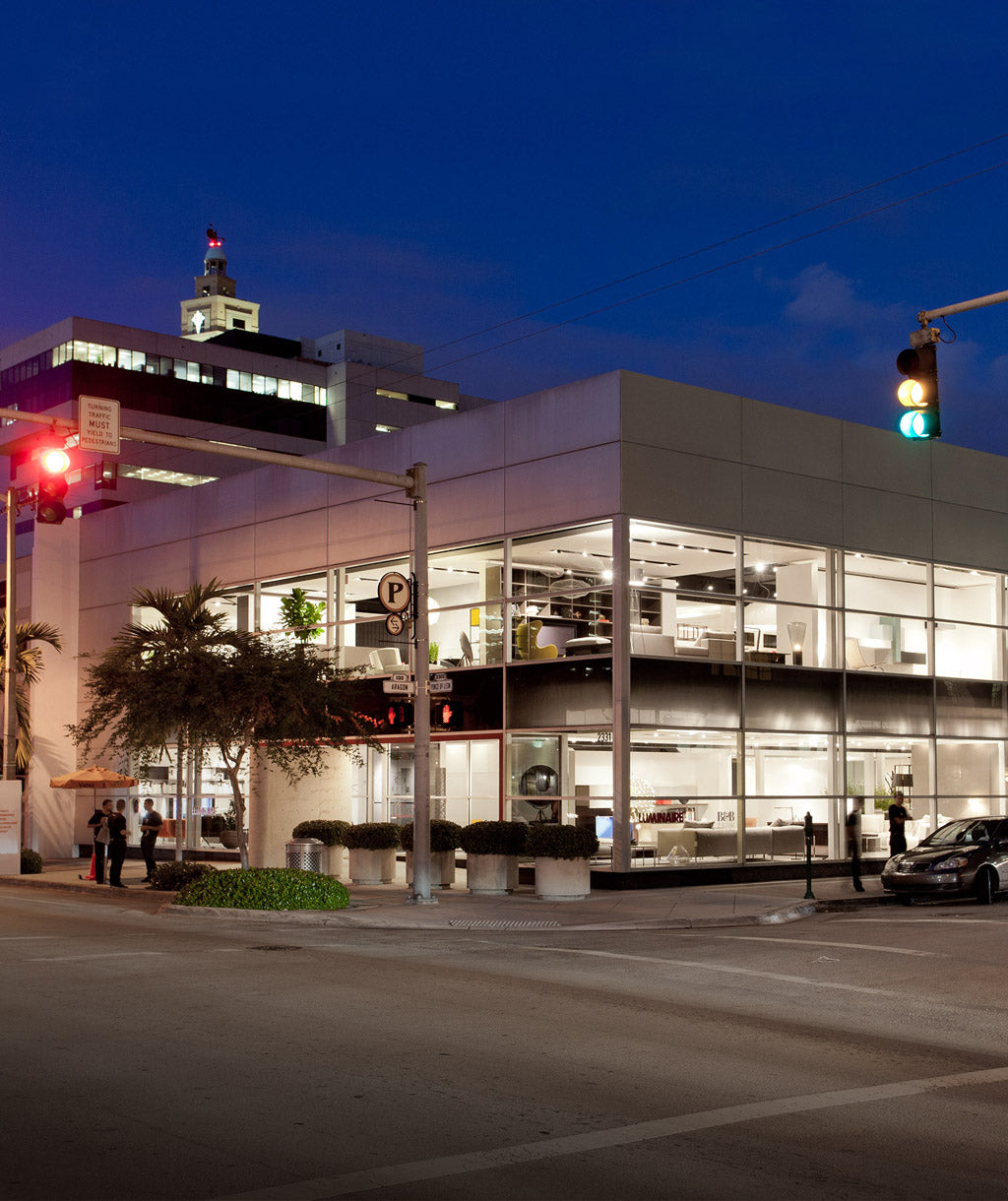 The couple expanded to Coral Gables in 1976, starting out in a clothing shop on Miracle Mile, offering a wider variety of items that drew local architects and university professors. In 1984, they debuted their current showroom building, designed by Mateu Architects, on the site of a former movie theater. The corner building has repeatedly won the Test of Time award from state and local architect groups.
