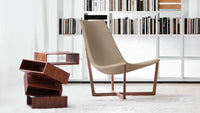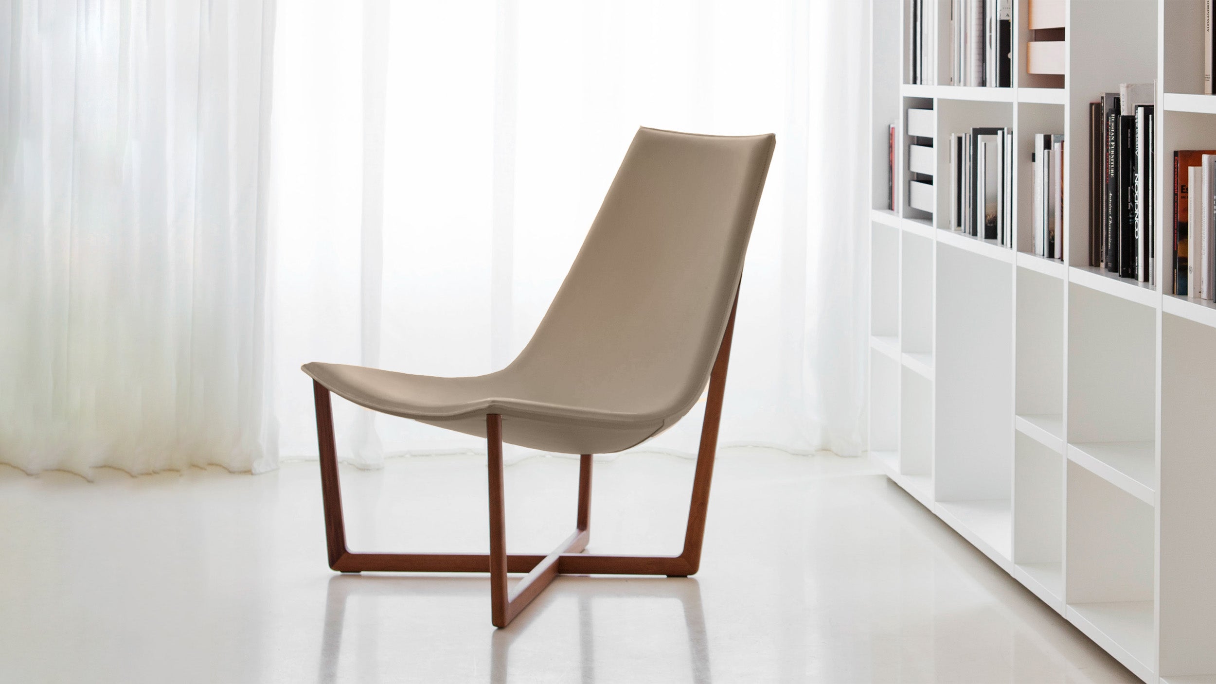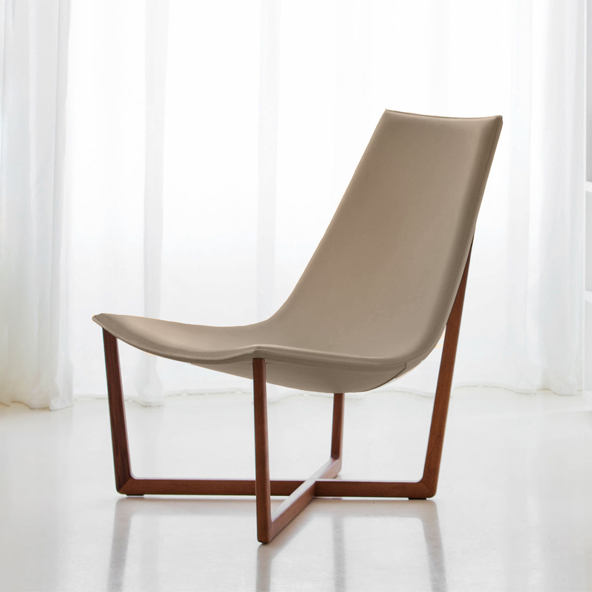 The Jade Lounge Chair, designed by Christophe Pillet for Porro, blends poised elegance with relaxed comfort. A softly curved upholstered shell appears to float atop a sleek cross-base in black-stained ash or Canaletto walnut, inviting thoughtful repose and refined style. With upholstery choices in leather, eco-leather or suede, Jade adapts effortlessly between high-end residential, office or hotel interiors. Its minimalist framing and luxurious finish make it both a statement piece and a deeply inviting seat.