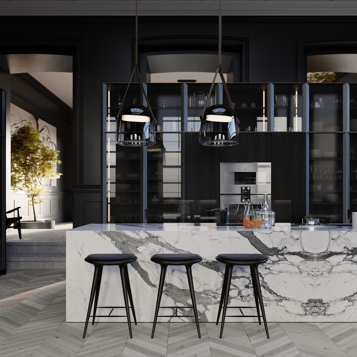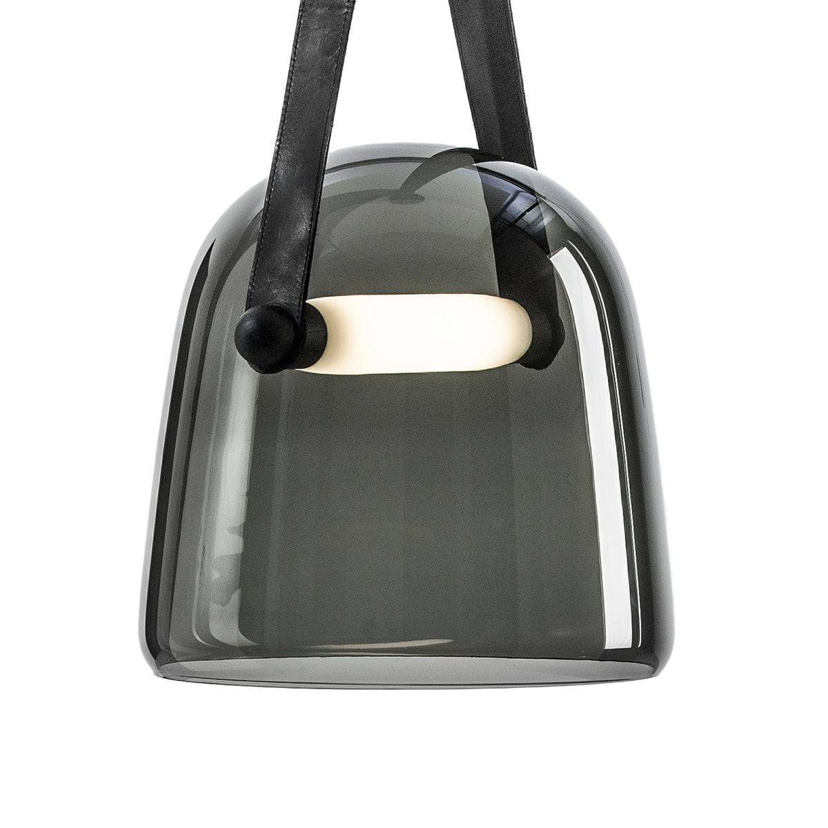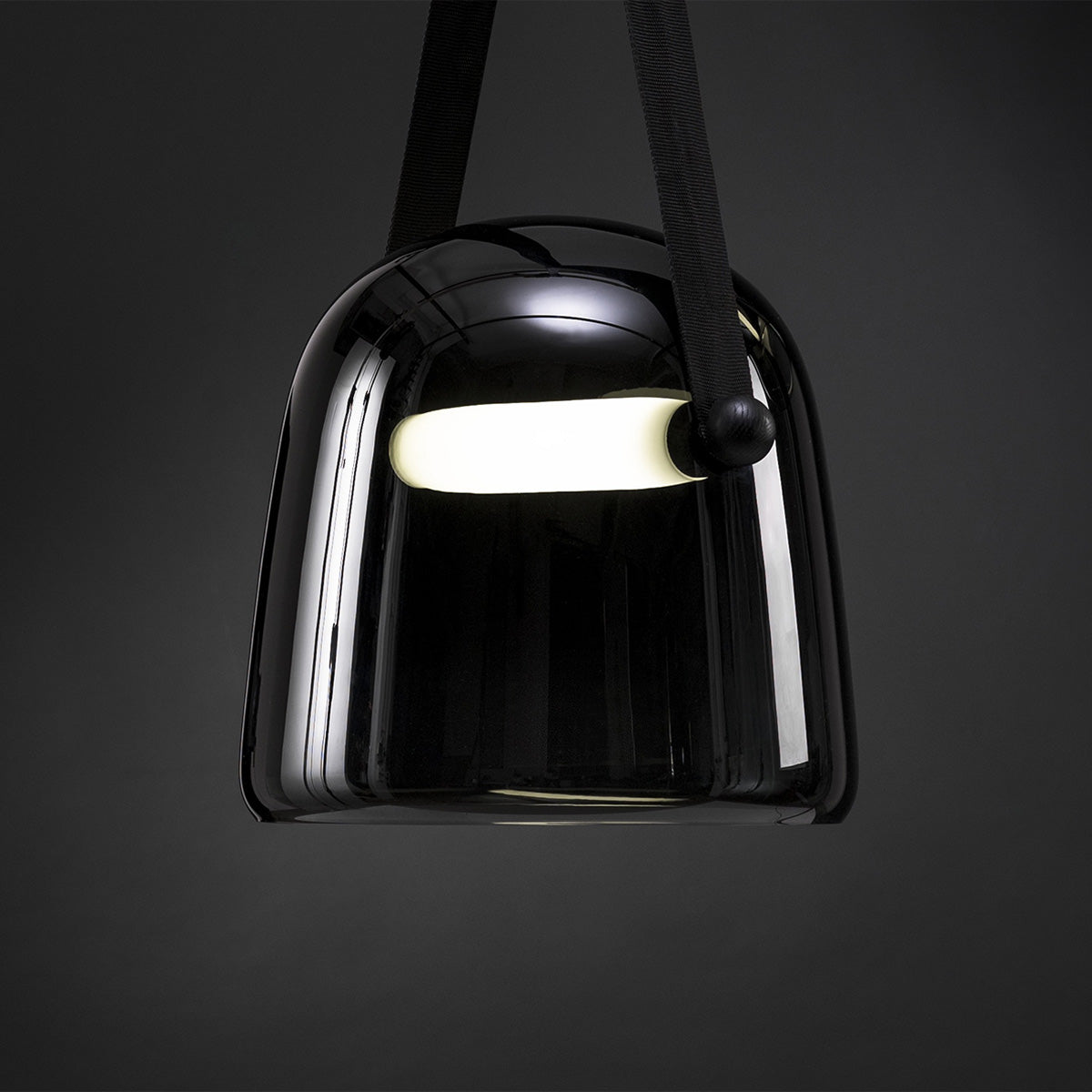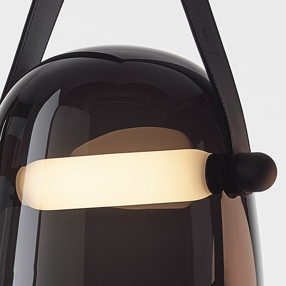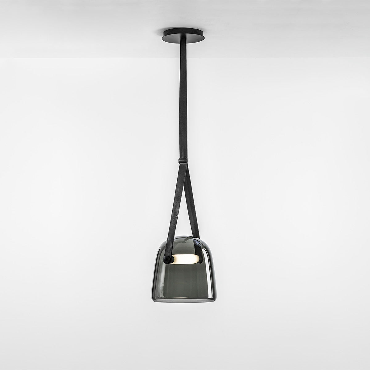 The Mona Large Pendant Lamp, designed by Lucie Koldova for Brokis, explores light as a sculptural journey through glass. A bold LED light source traverses the generous hand-blown globe, punctuating the space within and challenging perception of volume. With its refined combination of materials; glass, metal canopy, leather strap, this pendant becomes a hovering element of understated drama. Whether suspended over a dining table or floating in a lofty foyer, it transforms illumination into poetic presence.