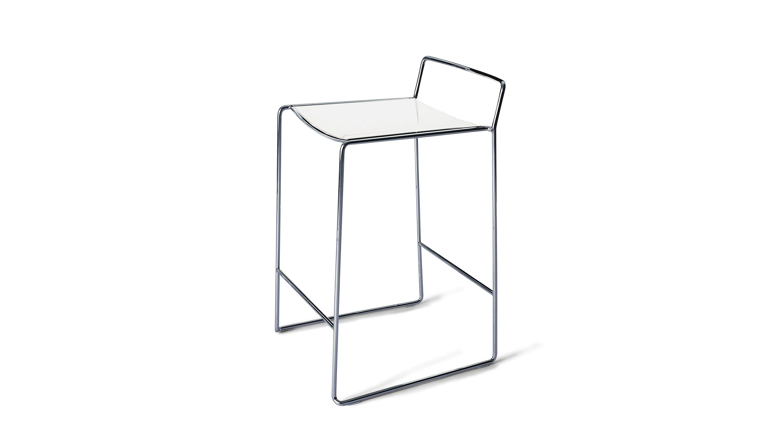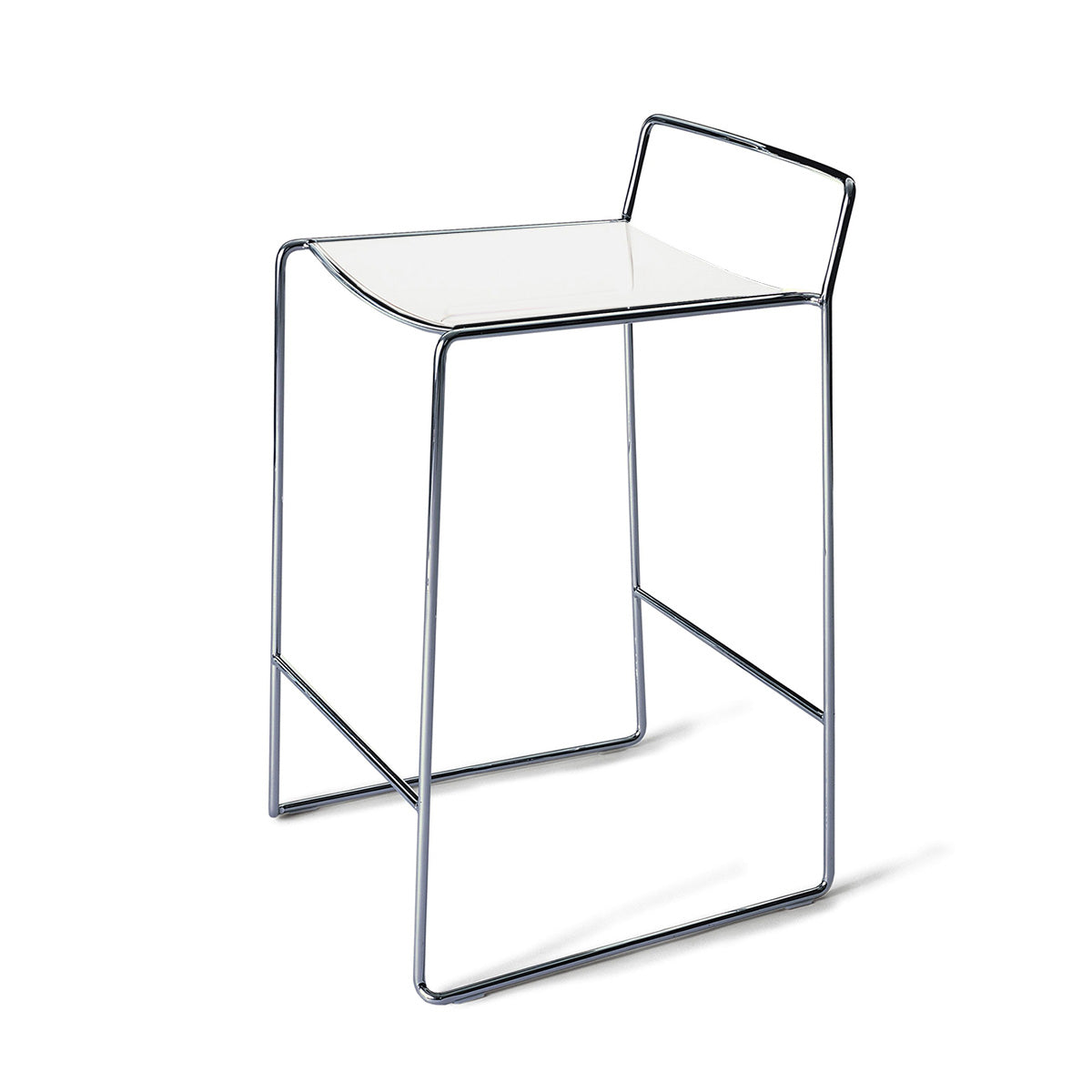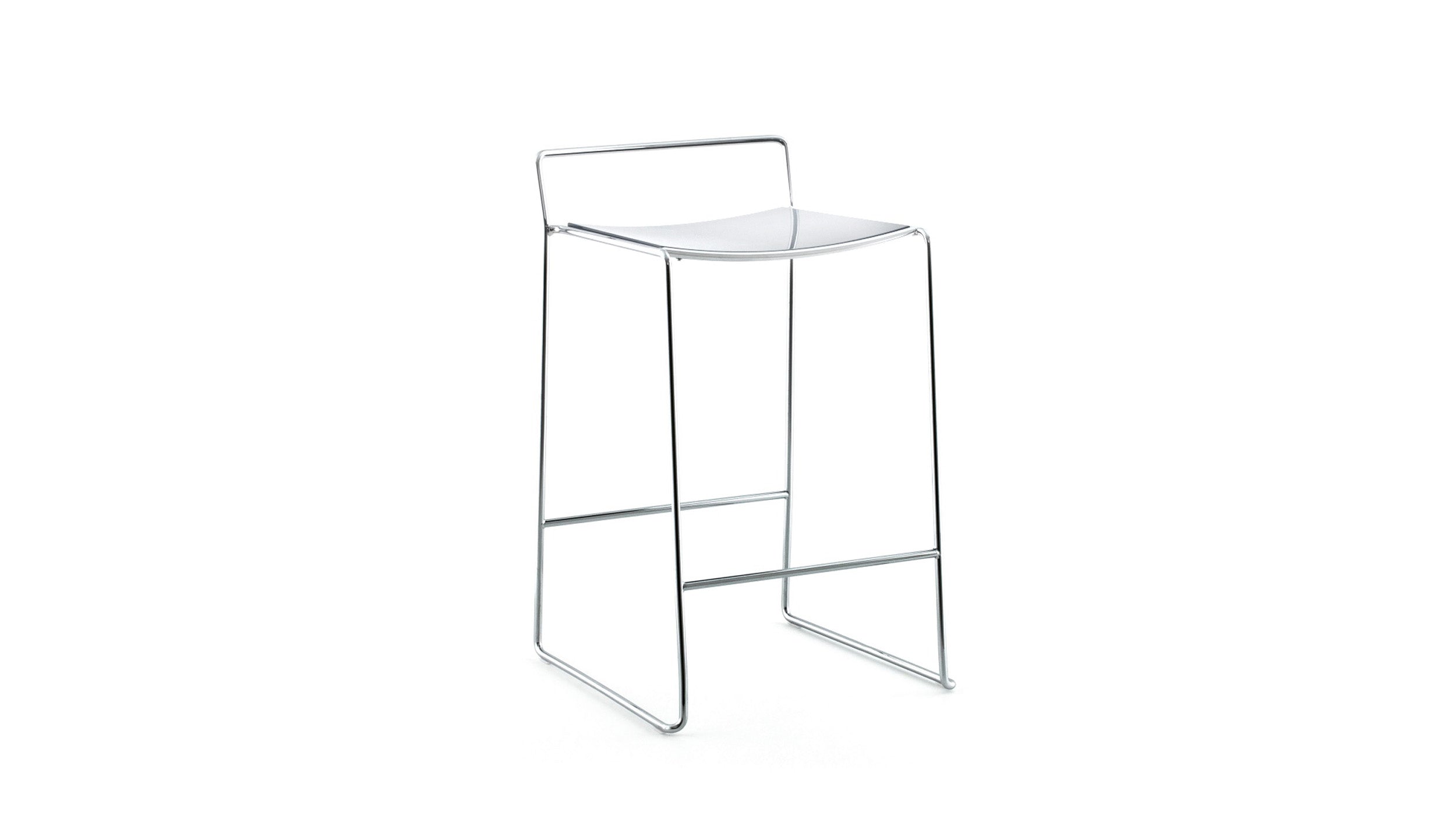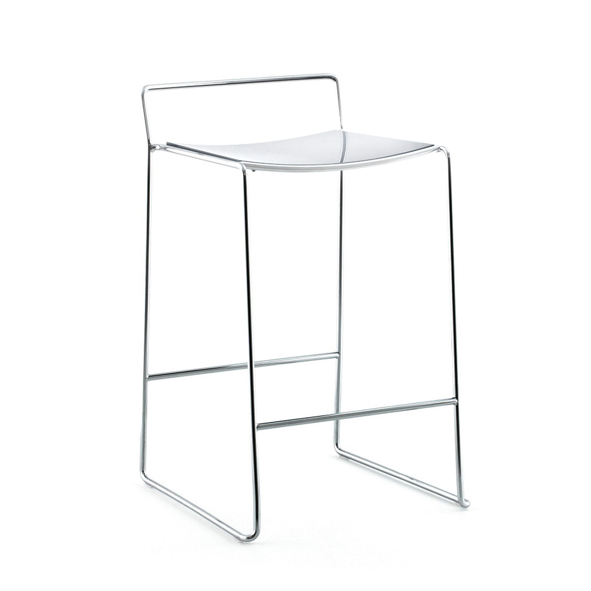 The Spindle Bar Stool in Glossy White by Piero Lissoni for Porro is a masterclass in minimalist geometry and refined materials. Its ultra-slim chromium-plated rod frame lends surprising lightness while supporting a crisp white lacquered seat that feels sculptural yet comfortable. Designed to be both stackable and resilient, it transitions effortlessly from home dining to high-end contract interiors. A timeless piece that blends transparency, precision and enduring style.