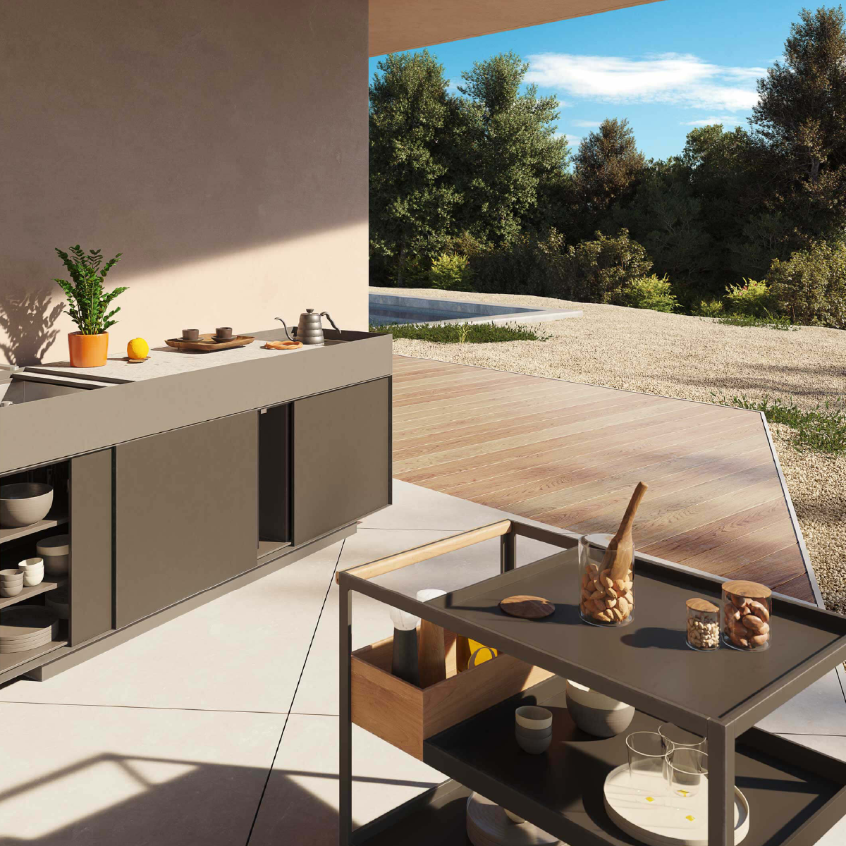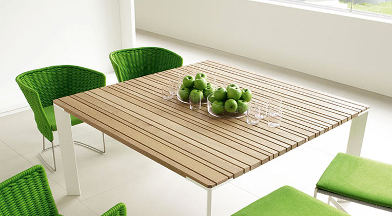 Luminaire’s outdoor tables withstand demanding weather conditions while providing a refined place to dine, converse and relax outdoors. Stylish and modern, these tables perfectly fuse function with rigorous design.