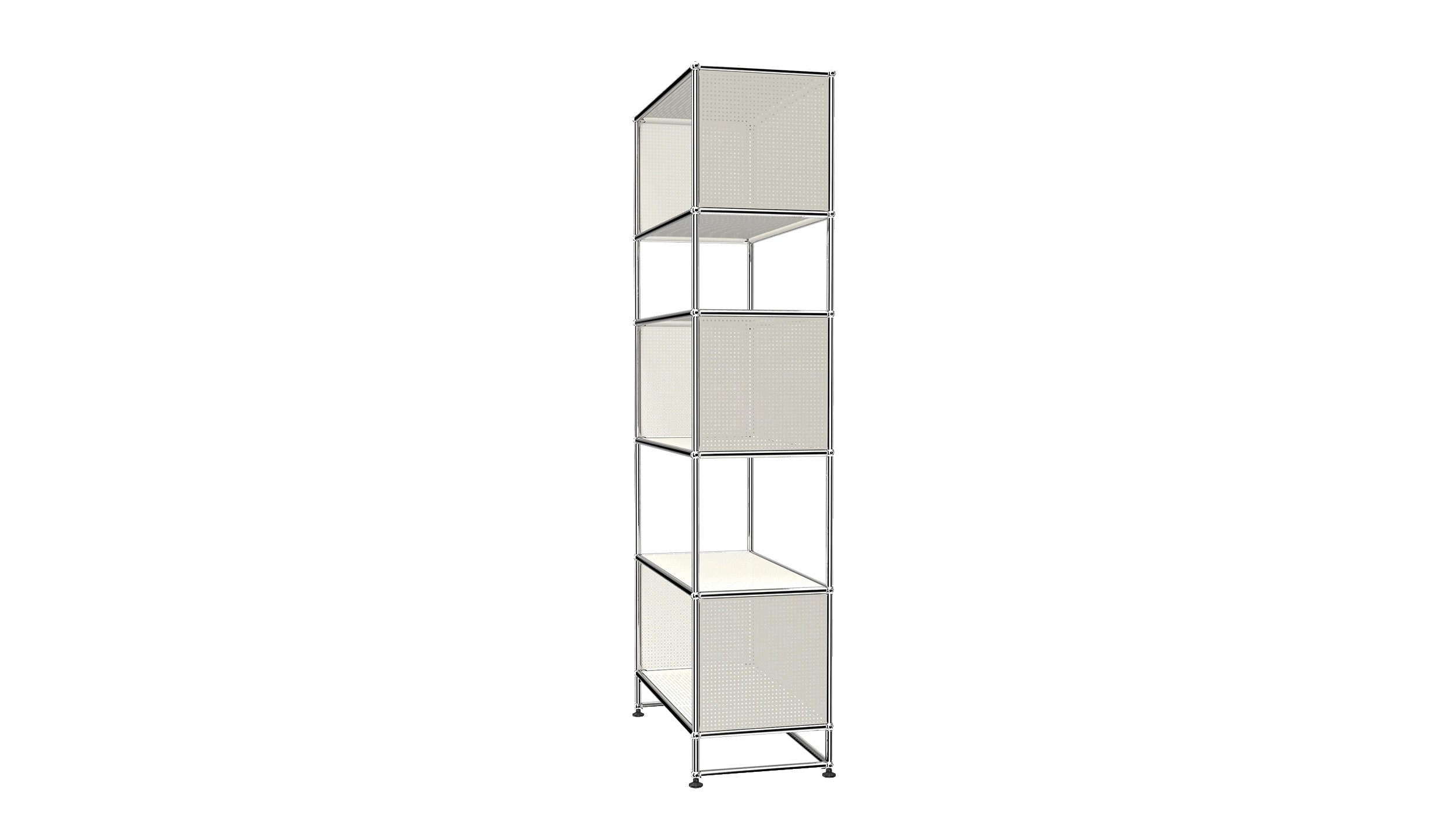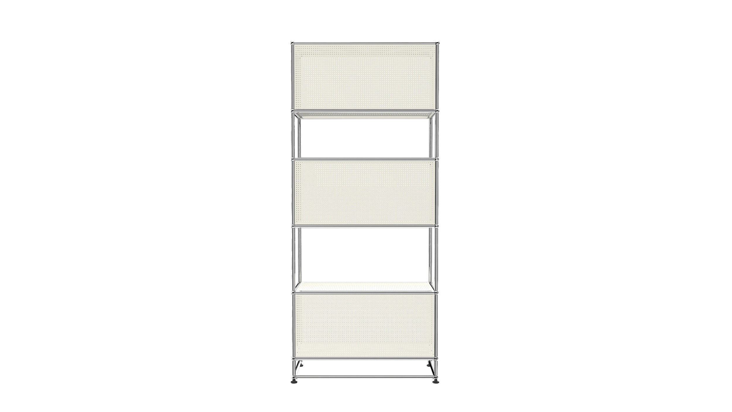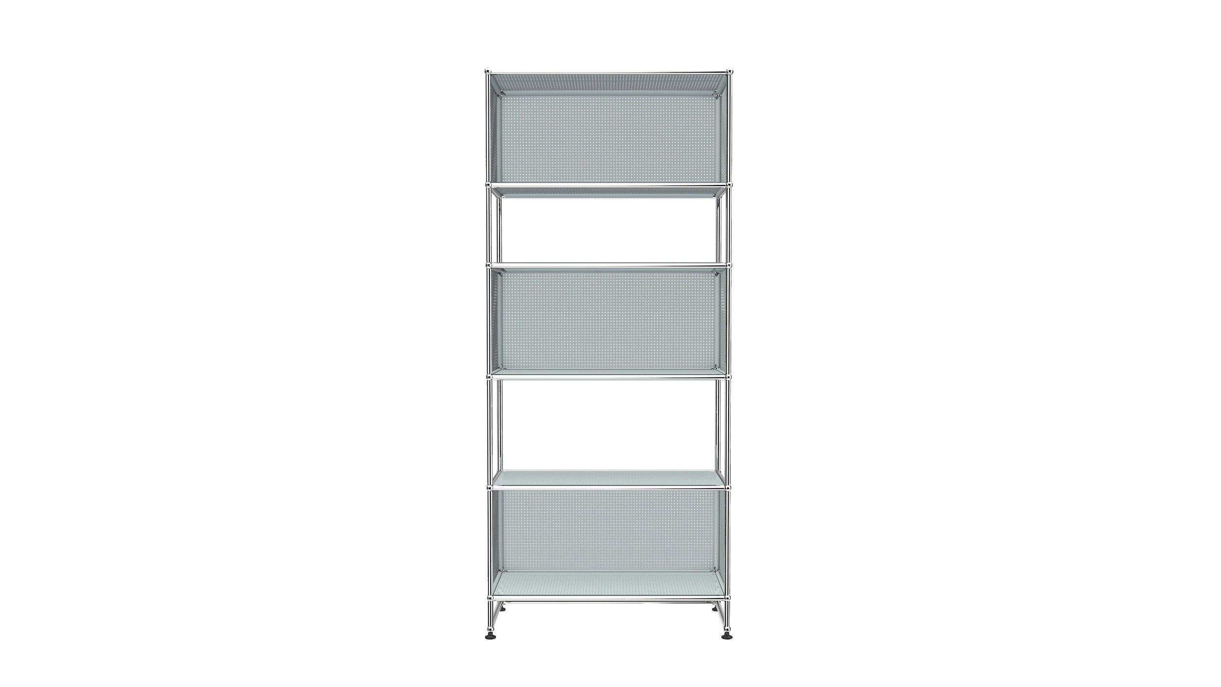 3 Box Shelving (RE119) reimagines modular shelving with perforated panels in every compartment and an elevated base frame. Graphic, lightweight, and highly versatile, it brings texture, display value, and practical storage to residential or creative spaces. Available in 6 Quick Ship colors, it offers a distinctive and adaptable presence.