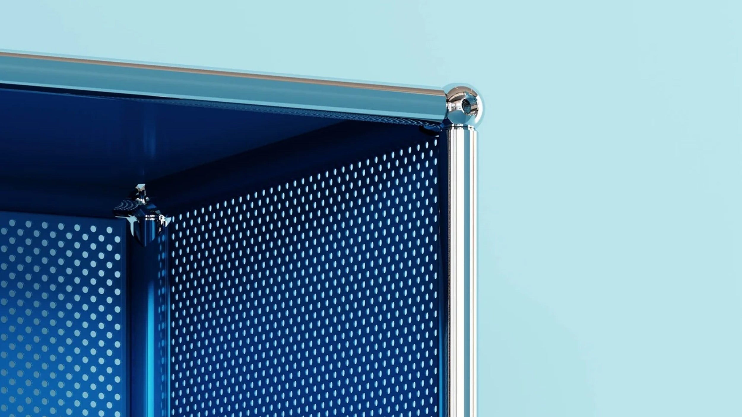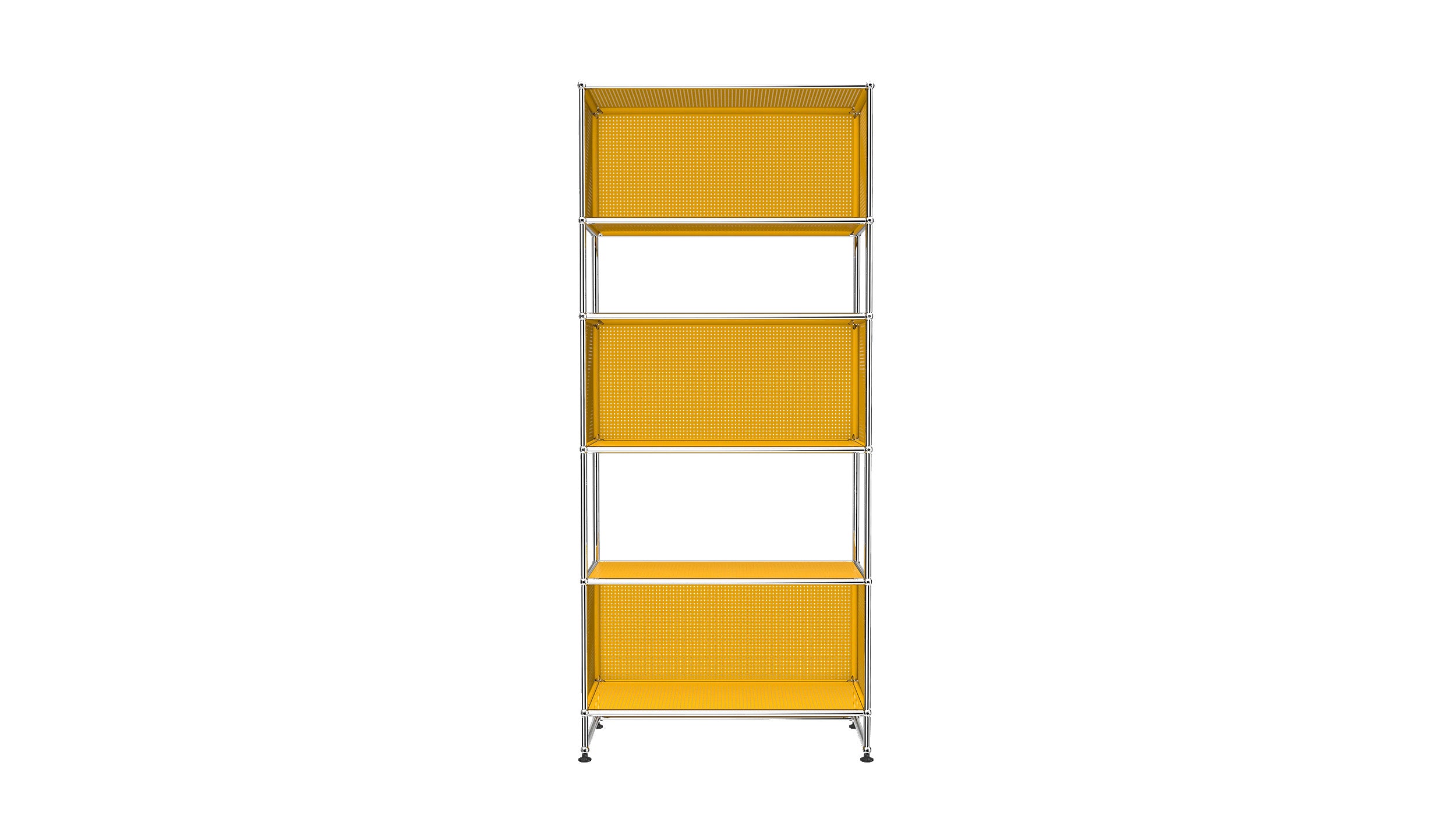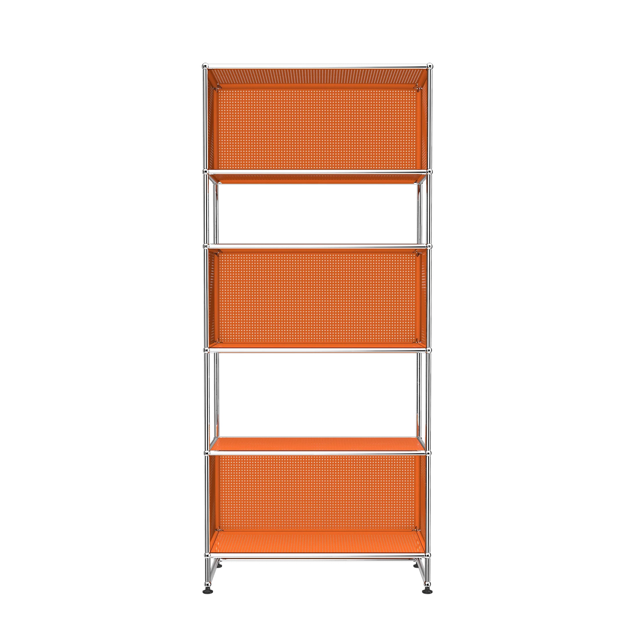 3 Box Shelving (RE119) reimagines modular shelving with perforated panels in every compartment and an elevated base frame. Graphic, lightweight, and highly versatile, it brings texture, display value, and practical storage to residential or creative spaces. Available in 6 Quick Ship colors, it offers a distinctive and adaptable presence.