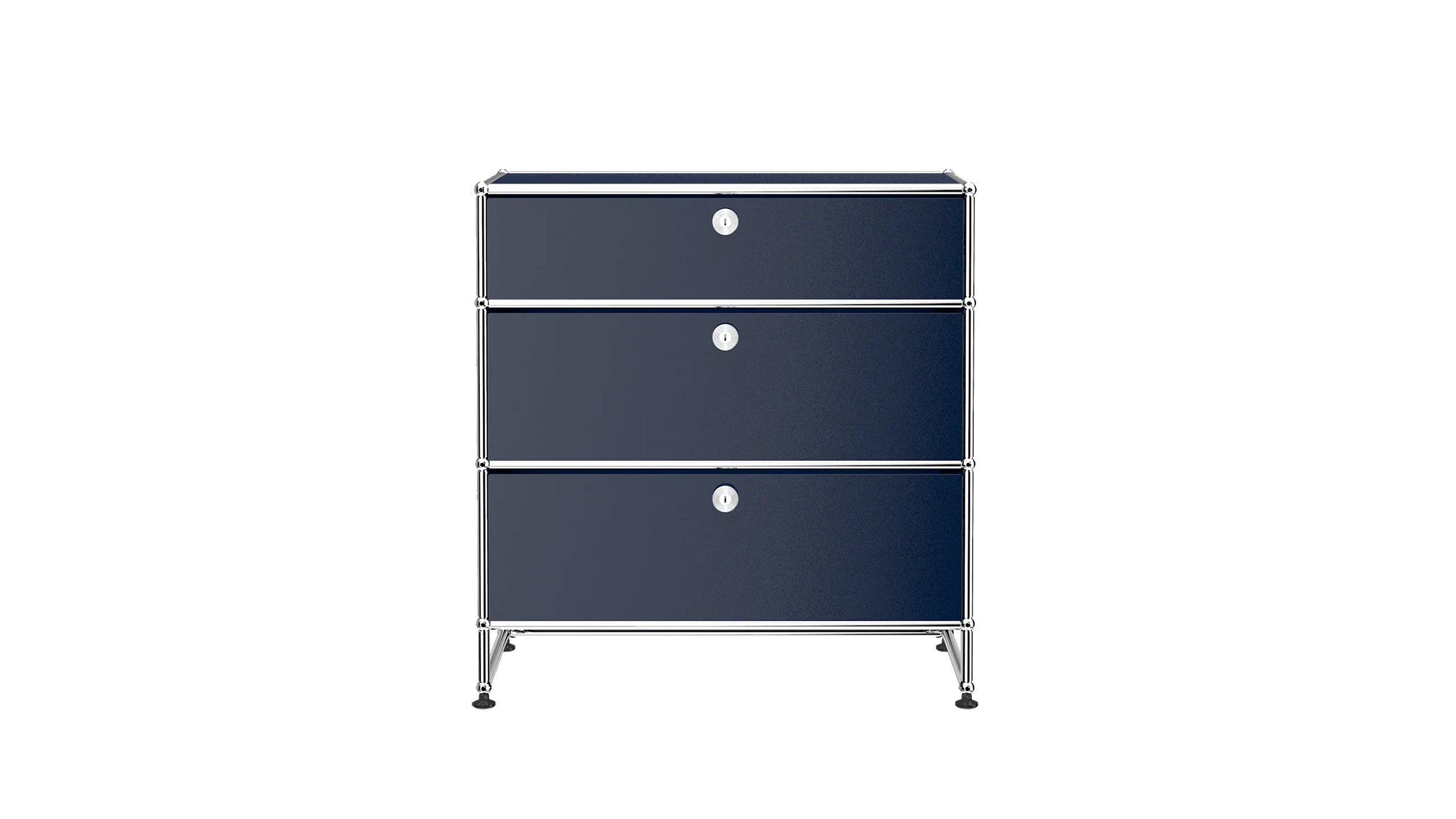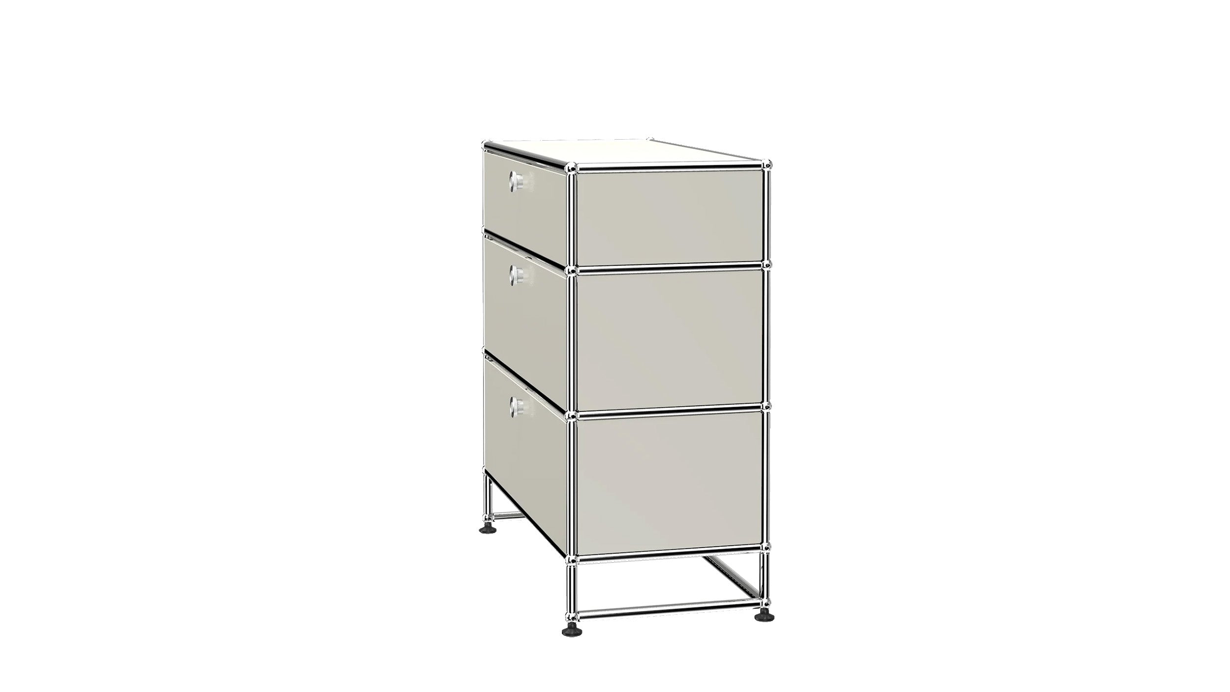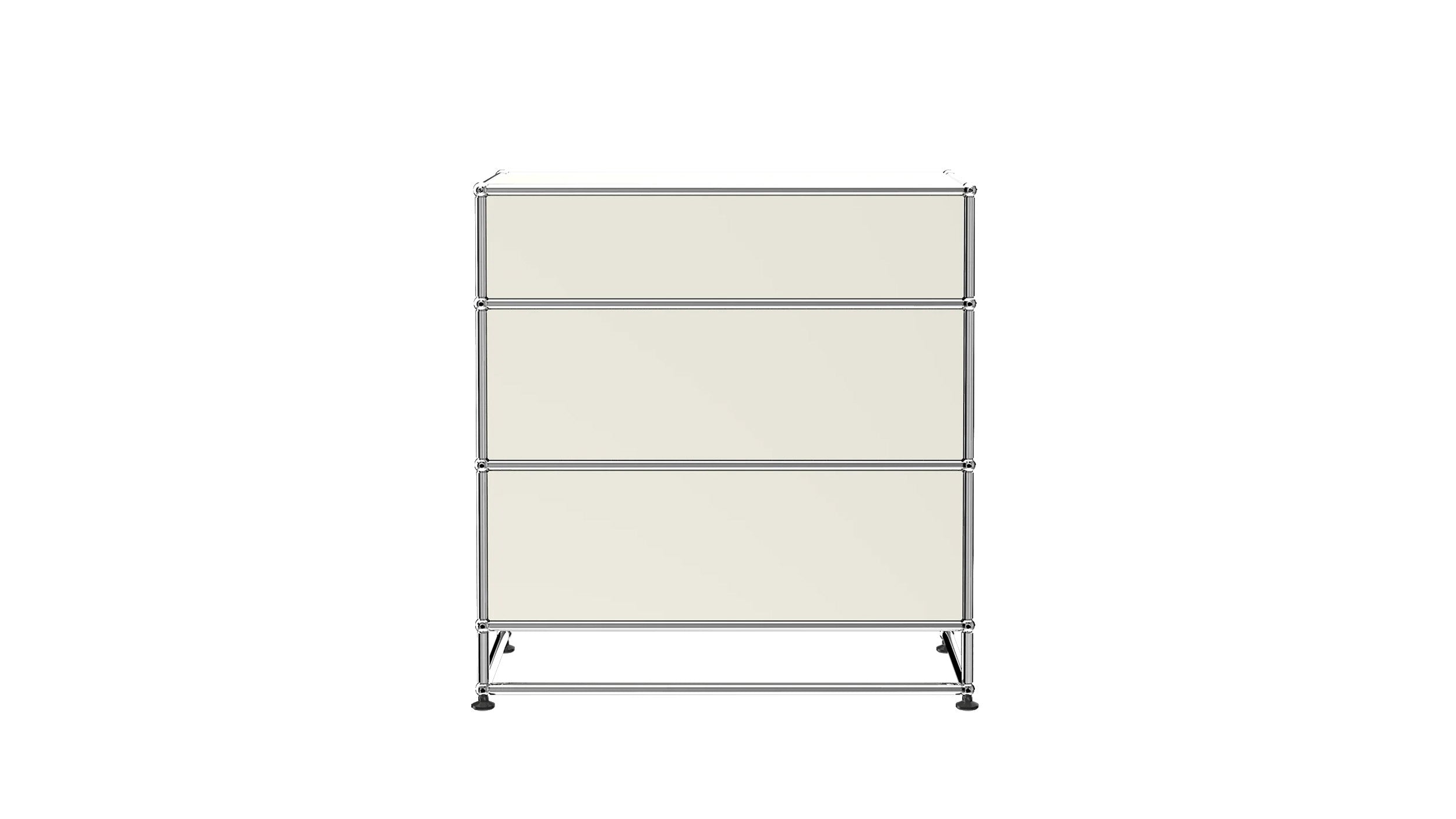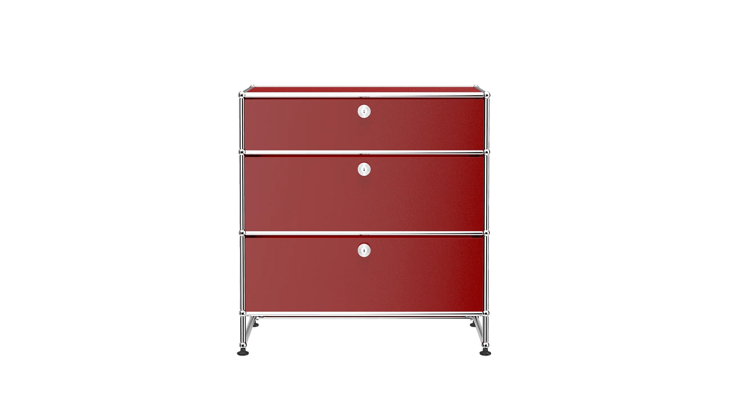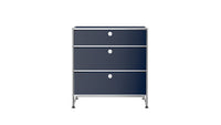 3 Drawer Storage (Y) is a refined storage credenza featuring one 6-inch drawer and two 10-inch drawers set on an elevated 4-inch base frame. This configuration creates a more substantial storage piece while preserving a light, architectural feel. Available in 7 standard surface colors, it can be specified to complement a wide range of bedroom, living room, or office interiors.