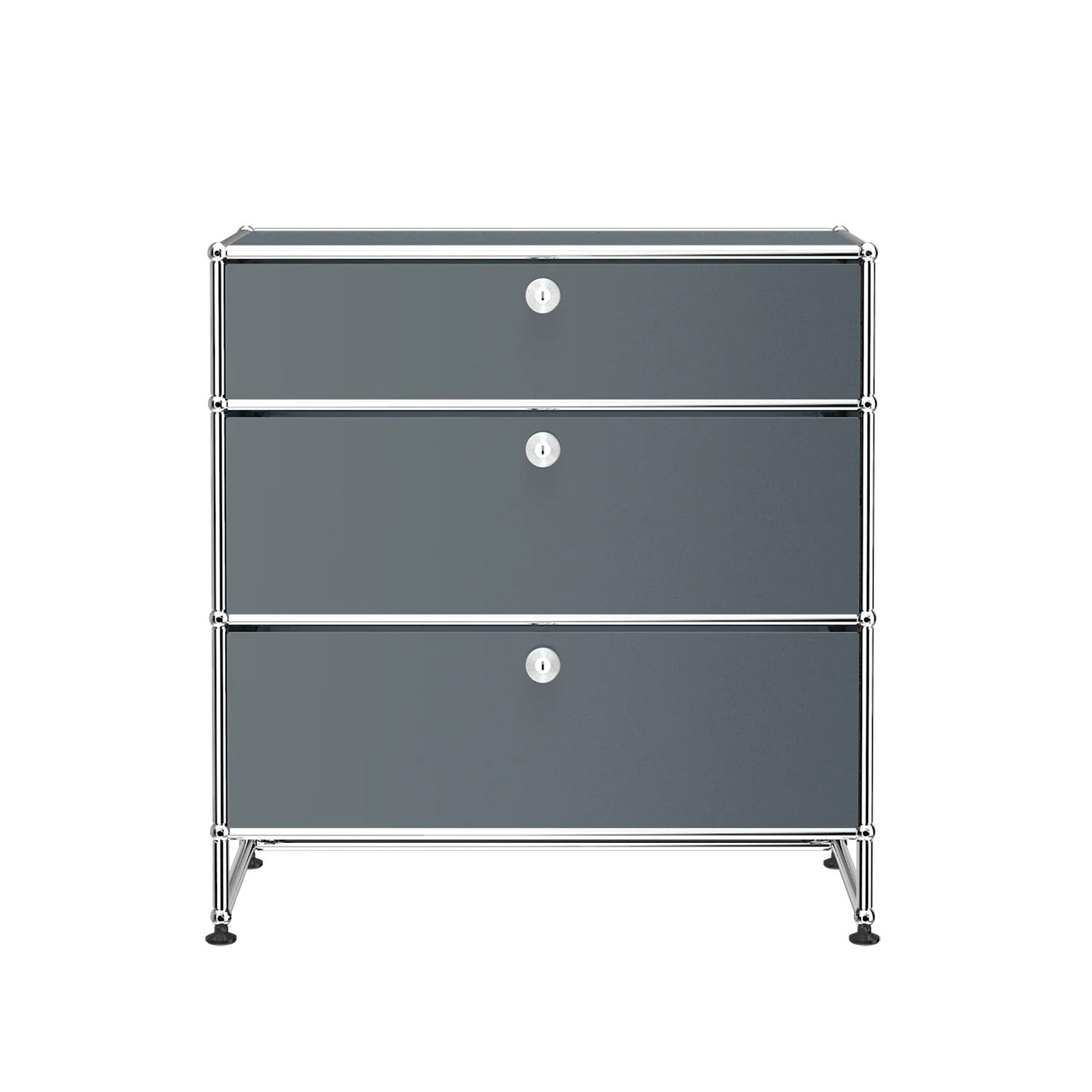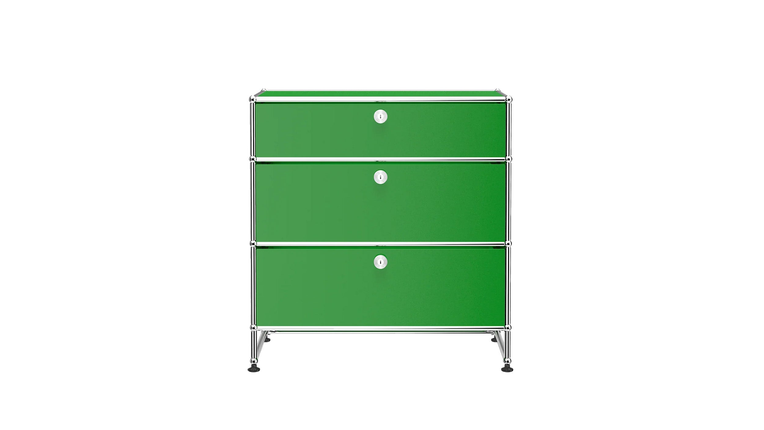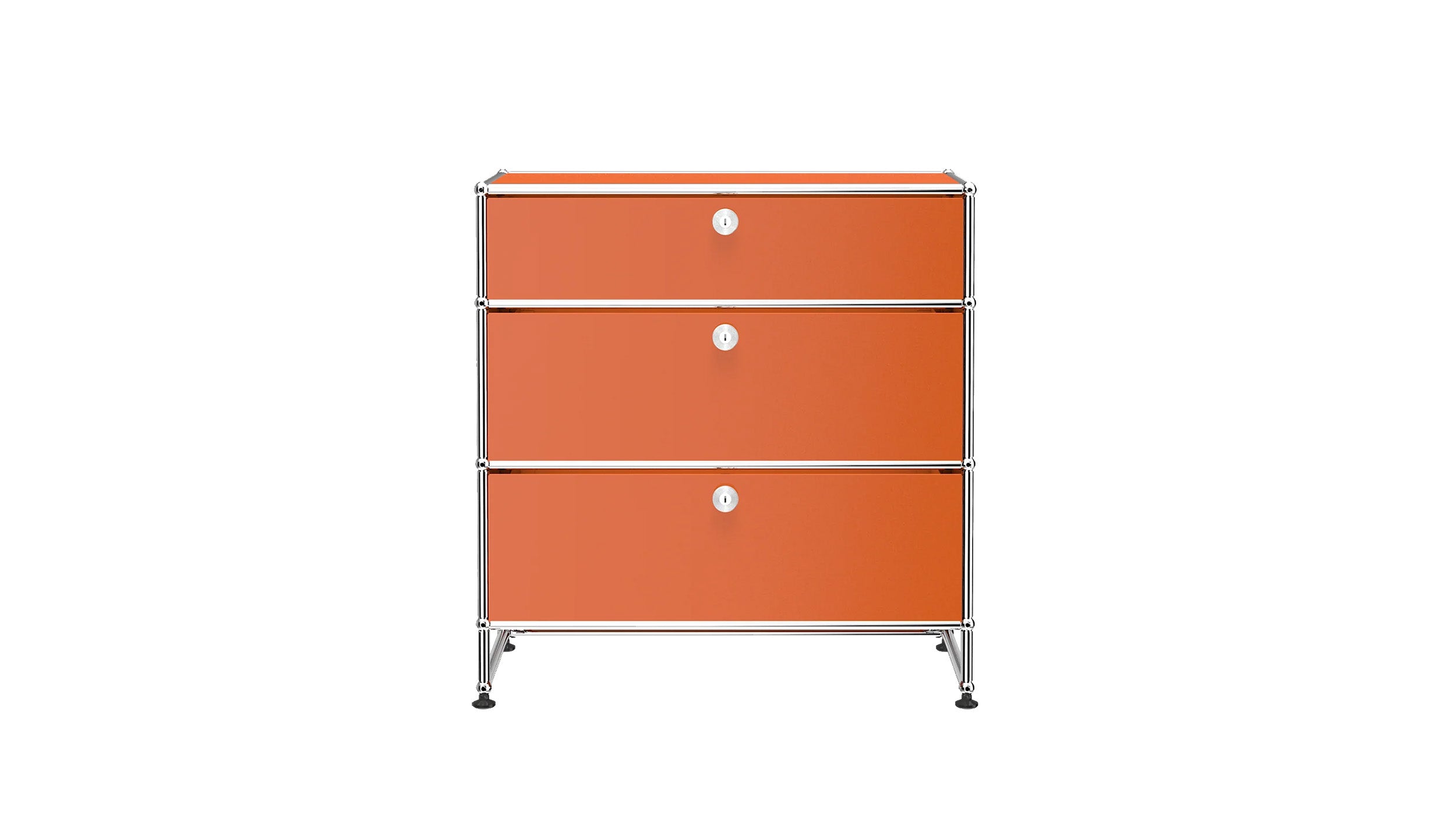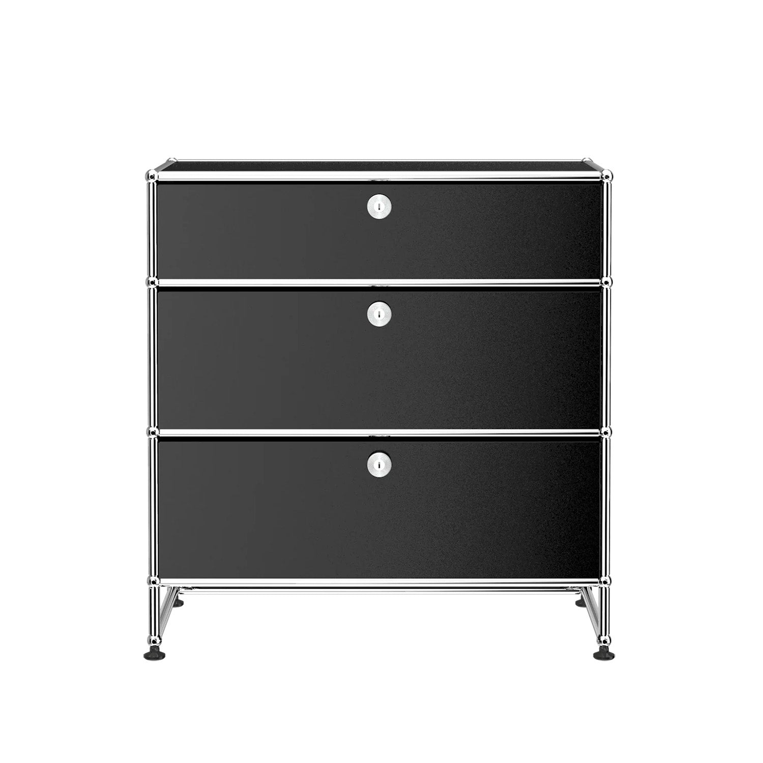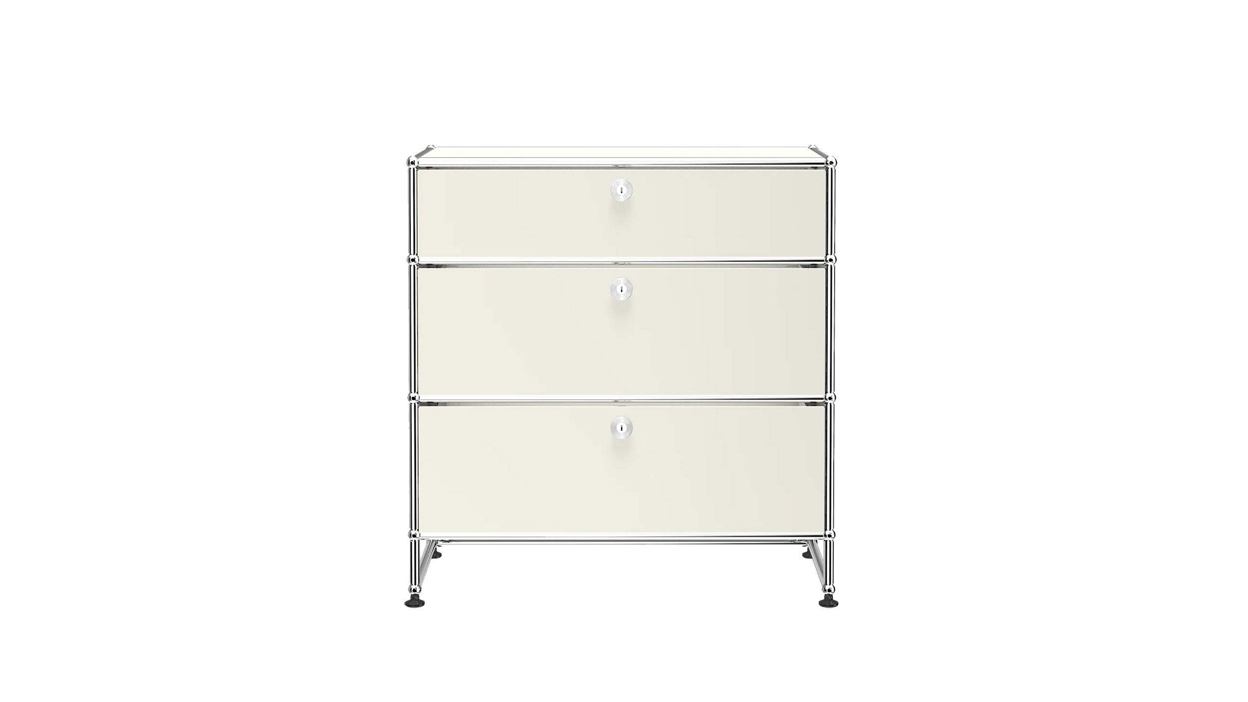 3 Drawer Storage (Y) is a refined storage credenza featuring one 6-inch drawer and two 10-inch drawers set on an elevated 4-inch base frame. This configuration creates a more substantial storage piece while preserving a light, architectural feel. Available in 7 standard surface colors, it can be specified to complement a wide range of bedroom, living room, or office interiors.