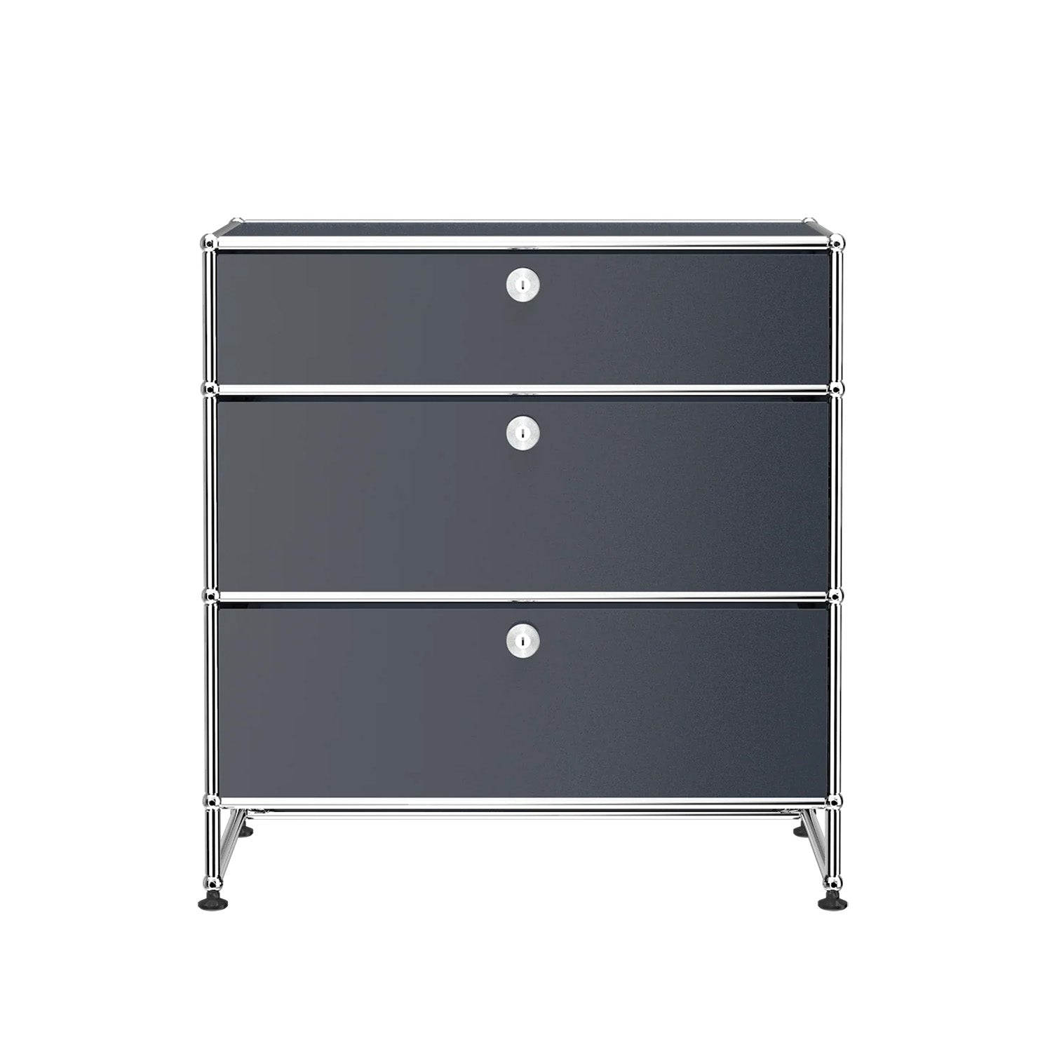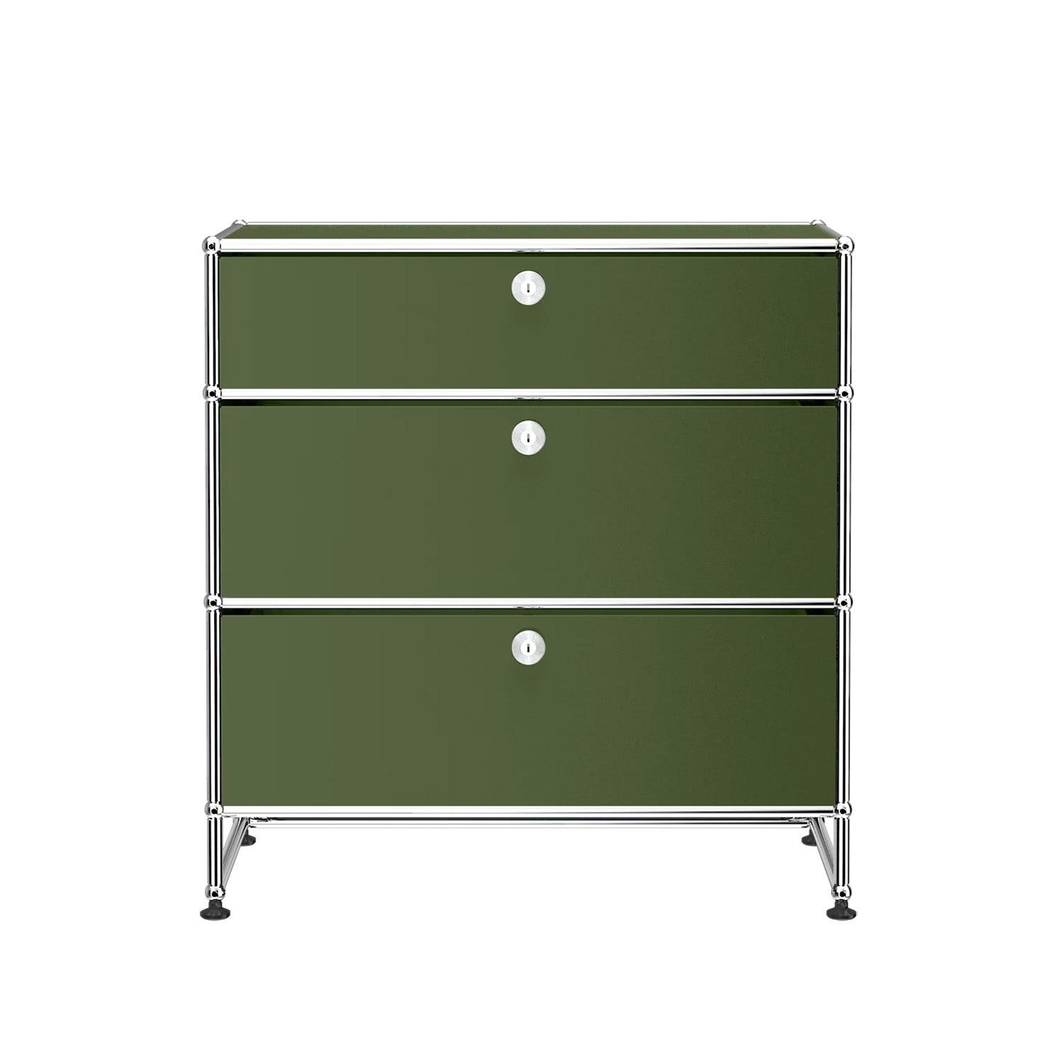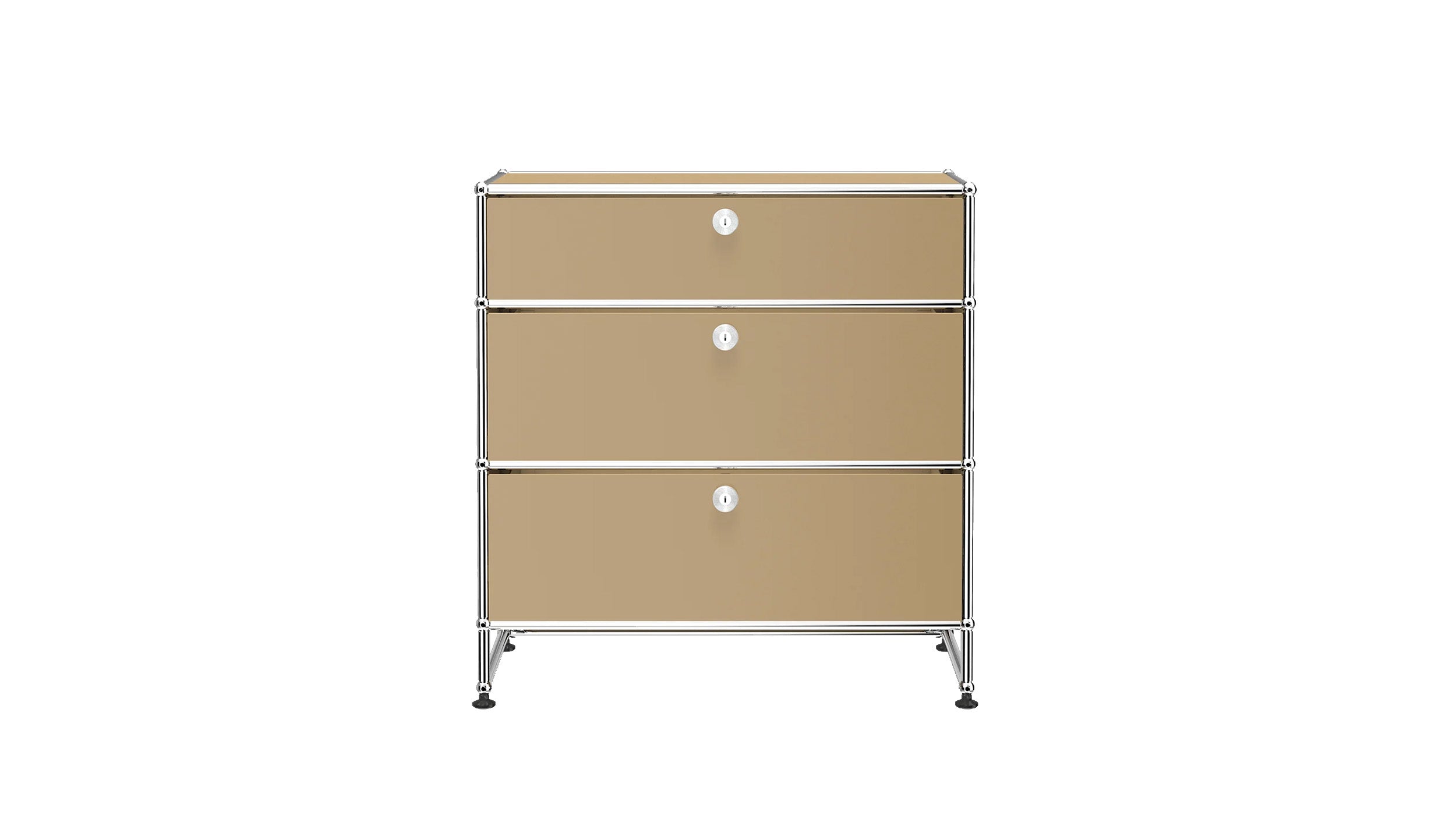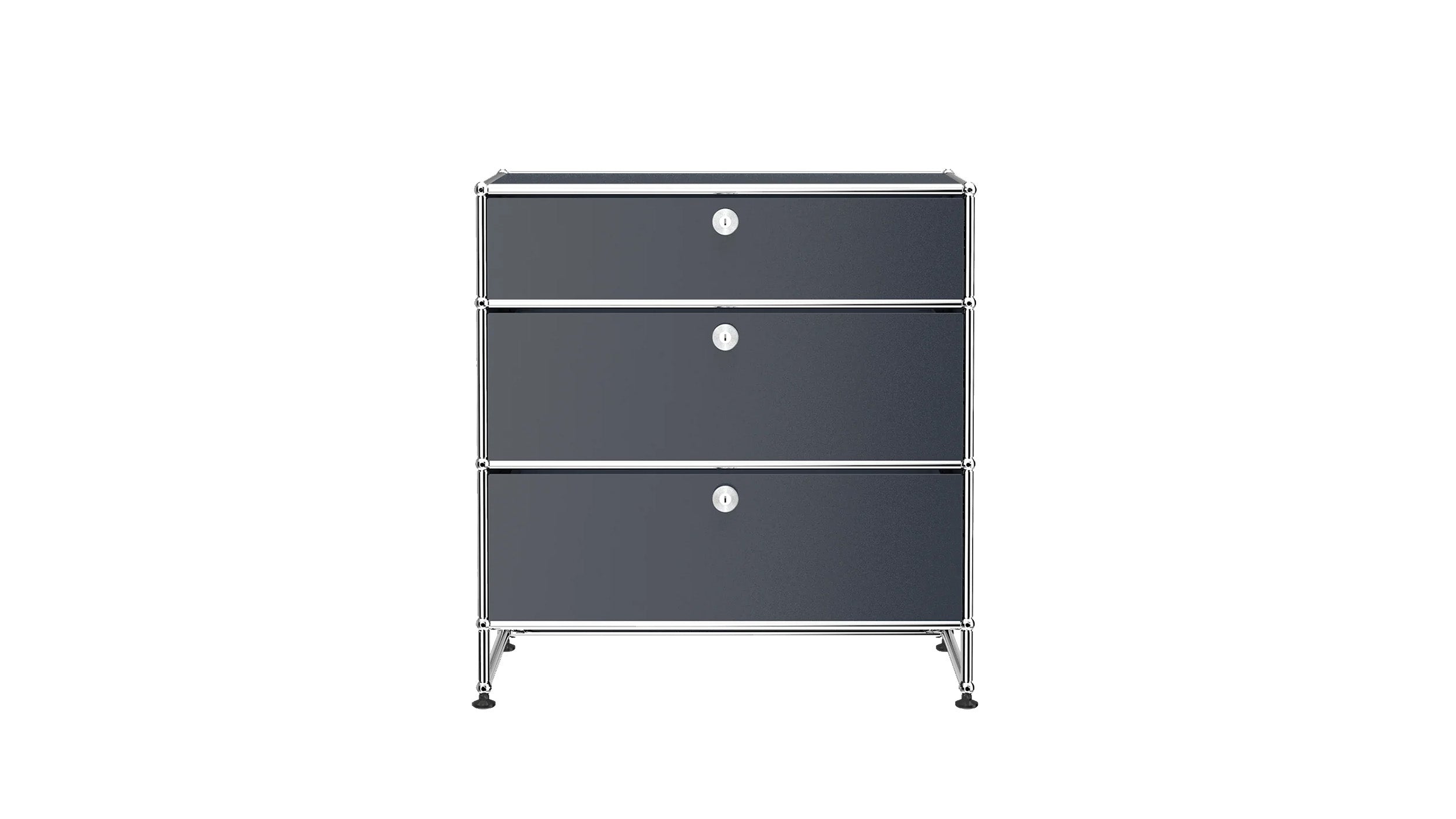 3 Drawer Storage (Y) is a refined storage credenza featuring one 6-inch drawer and two 10-inch drawers set on an elevated 4-inch base frame. This configuration creates a more substantial storage piece while preserving a light, architectural feel. Available in 7 standard surface colors, it can be specified to complement a wide range of bedroom, living room, or office interiors.