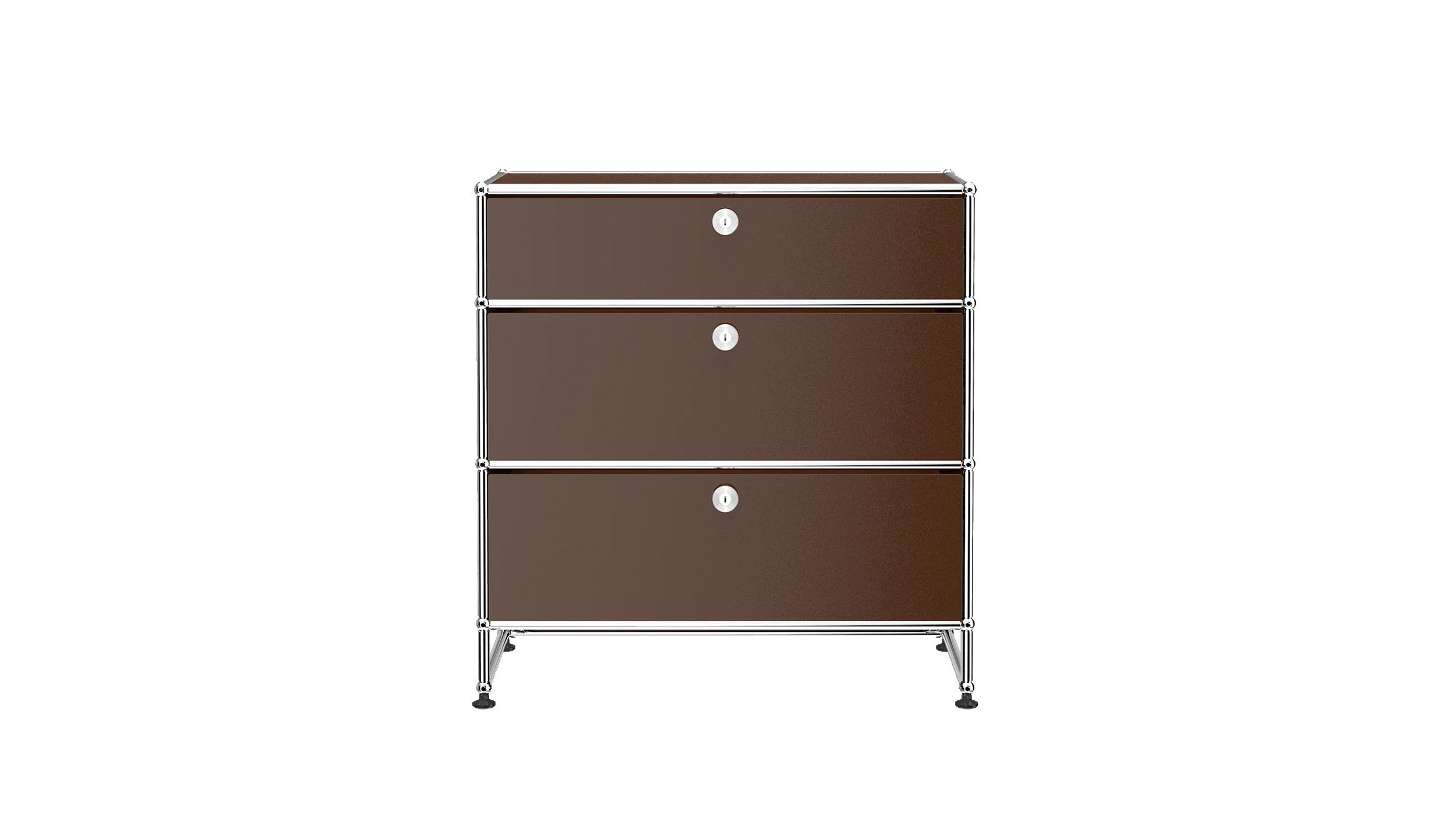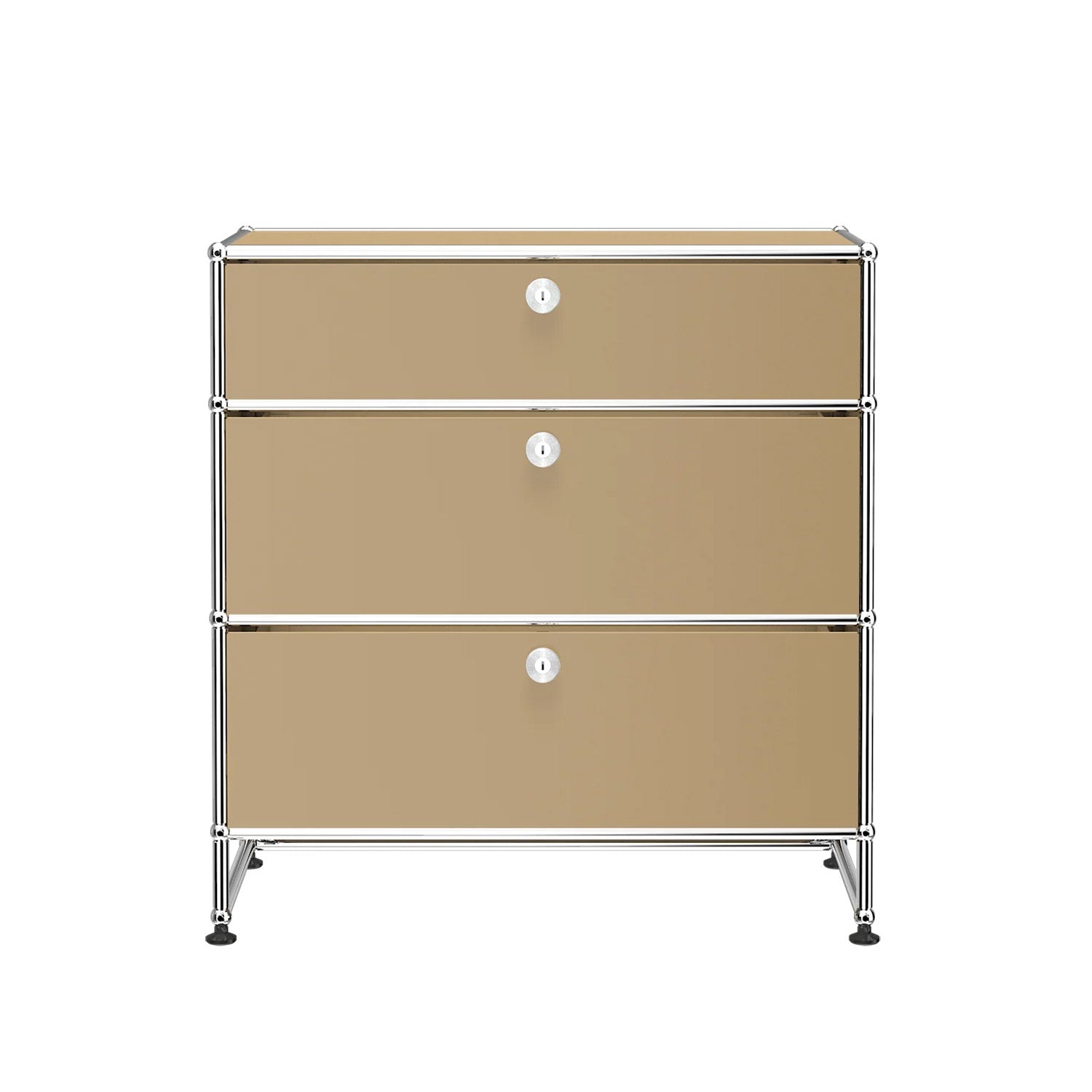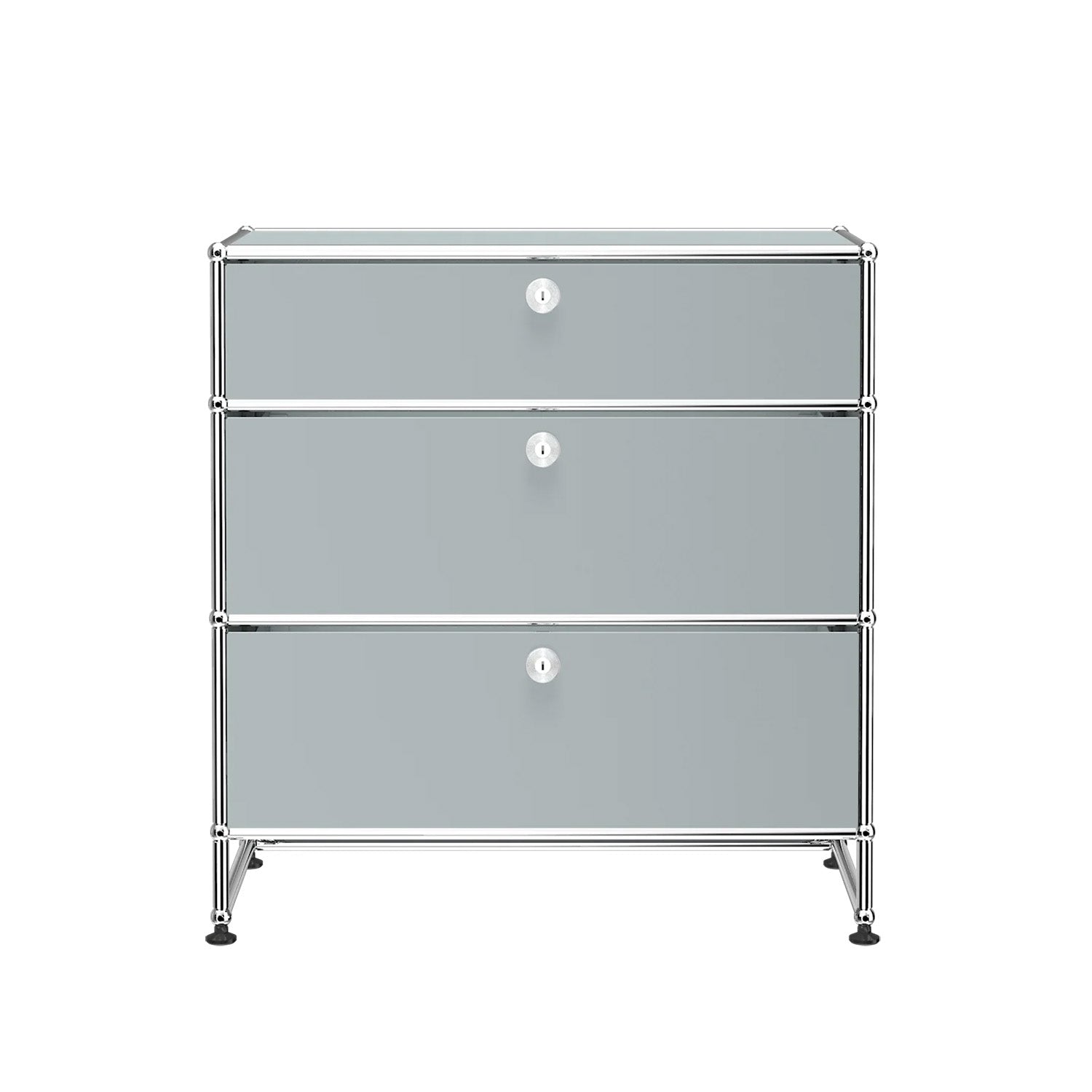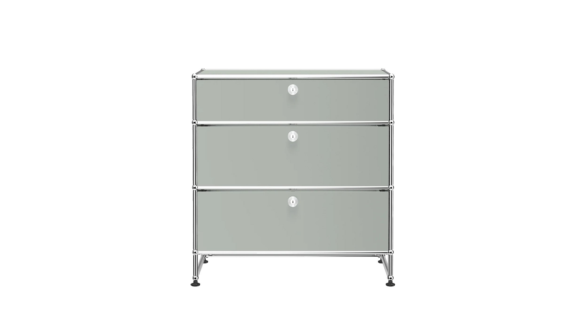 3 Drawer Storage (Y) is a refined storage credenza featuring one 6-inch drawer and two 10-inch drawers set on an elevated 4-inch base frame. This configuration creates a more substantial storage piece while preserving a light, architectural feel. Available in 7 standard surface colors, it can be specified to complement a wide range of bedroom, living room, or office interiors.