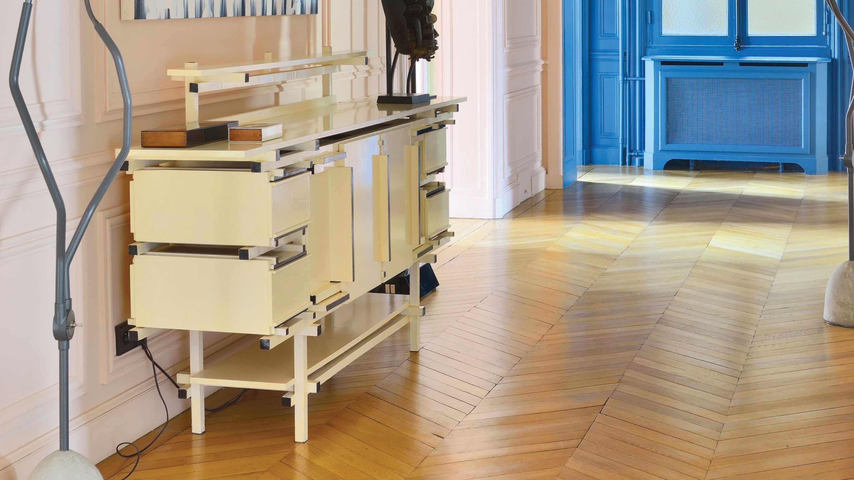 Hoy, Cassina produce este icónico mueble de almacenaje por primera vez en su histórica carpintería de Meda, en colaboración con los herederos del diseñador. La estructura del mueble presenta líneas puras que crean una cuadrícula basada en un núcleo estructural, con superficies, cajones y módulos de almacenaje añadidos para completar el diseño.