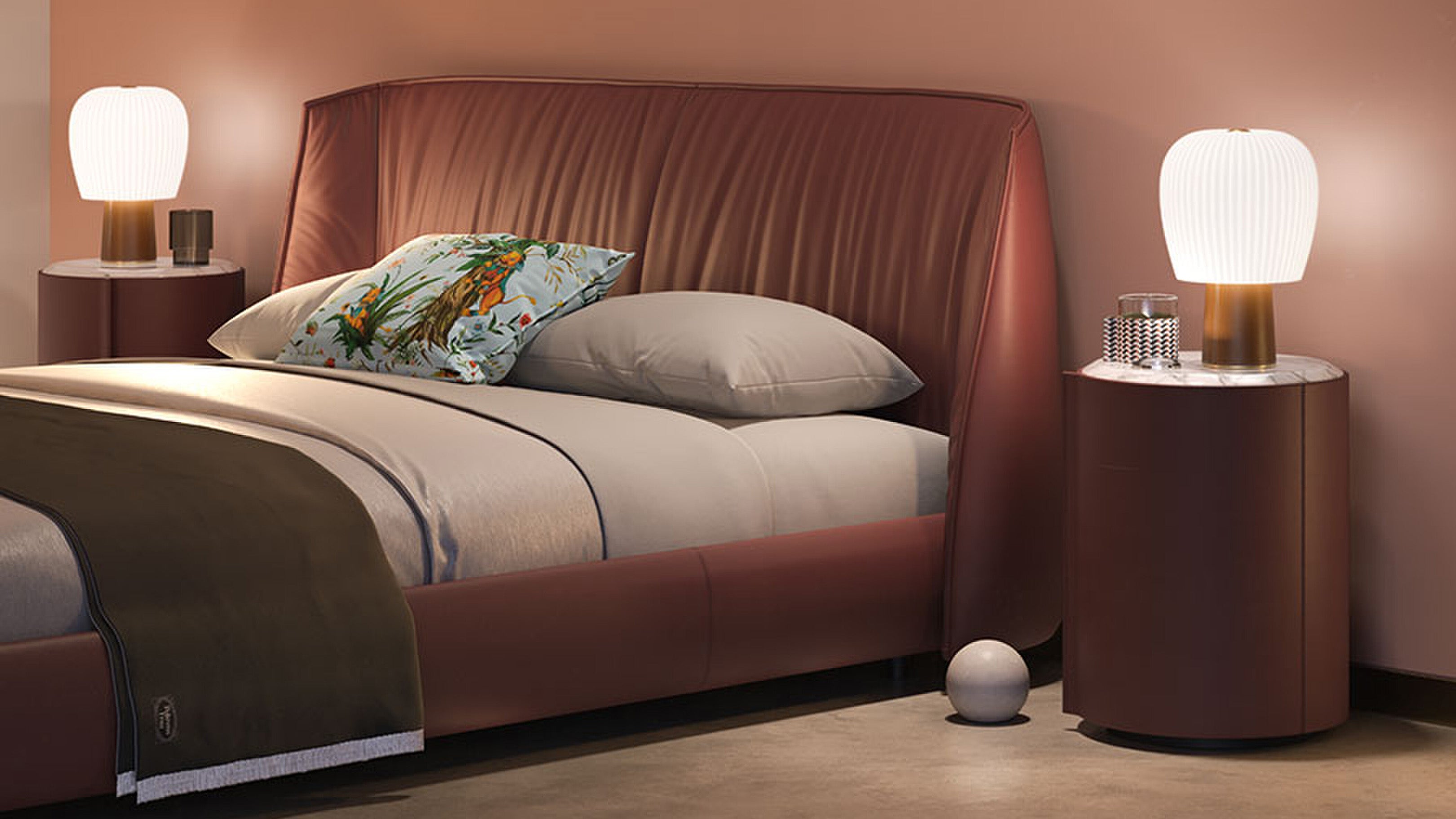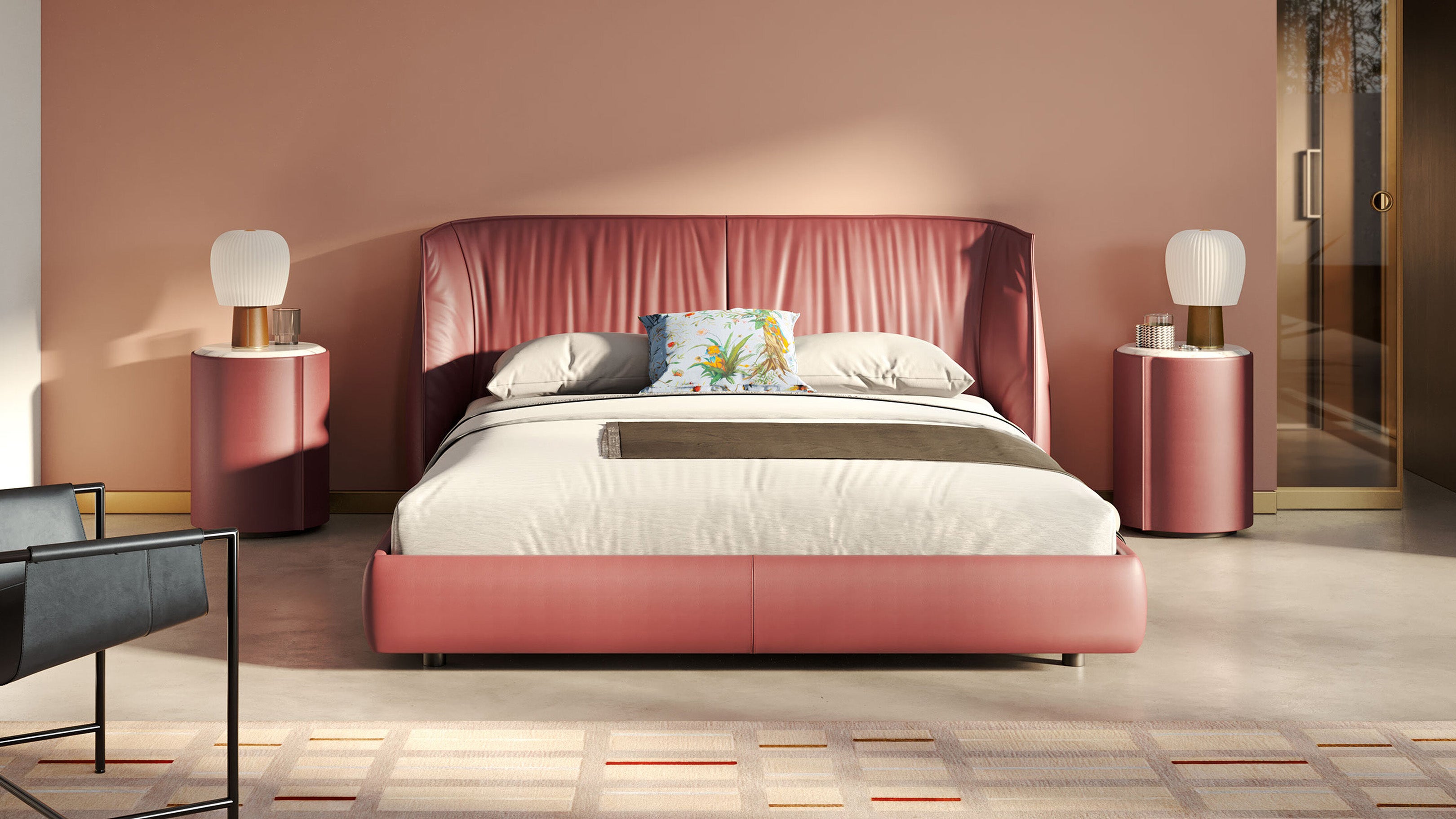 La cama Archibald ofrece la combinación perfecta de comodidad y estilo. Disponible en varios tamaños, con patas personalizables de diferentes alturas, pintadas de negro o tapizadas en cuero. Completamente tapizada en el lujoso cuero Pelle Frau®, el respaldo también puede revestirse con lona Jacquard Poltrona Frau, lo que la hace ideal para colocarla en la pared. Diseñada para adaptarse a una amplia gama de bases de cama —fijas, manuales o eléctricas— y colchones de diferentes tamaños, esta versátil cama ofrece elegancia y practicidad para cualquier dormitorio.