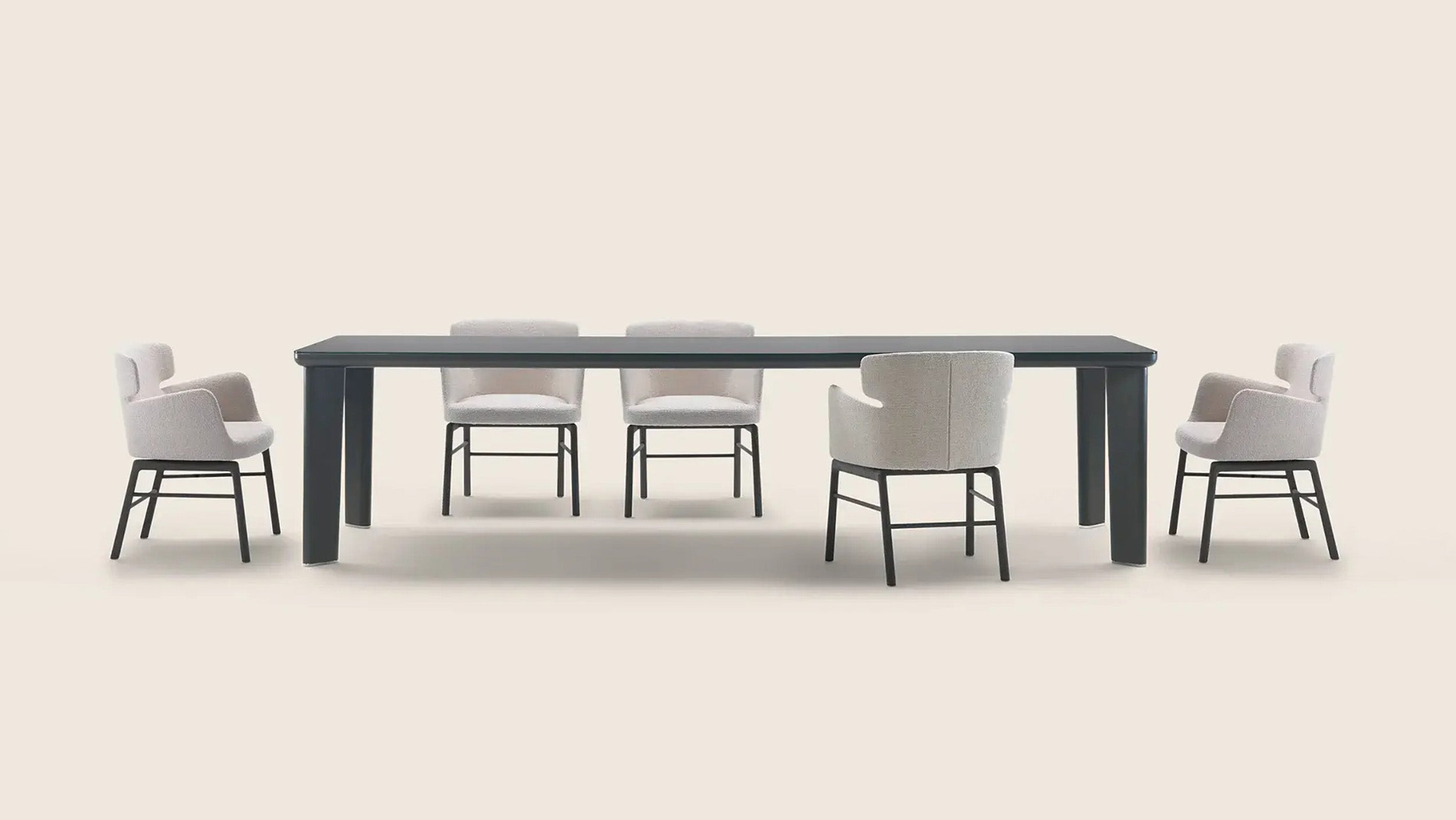 La mesa Arnold, diseñada por Antonio Citterio para Flexform, es una sofisticada expresión de diseño moderno con raíces en materiales tradicionales. Su elegante tablero reposa con gracia sobre una base metálica arquitectónica, creando un equilibrio entre forma y estructura. Elaborada con una meticulosa atención al detalle, la mesa está disponible en una gama de lujosos acabados en madera y mármol, lo que le permite adaptarse a la perfección a diversos interiores. Con su sobria elegancia y claridad estructural, la mesa Arnold es una pieza central refinada para comedores o salas de reuniones.