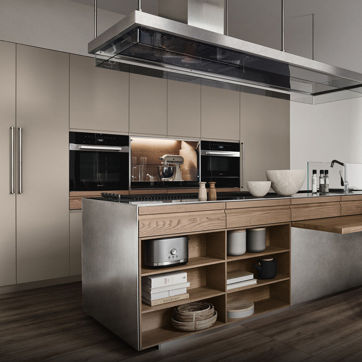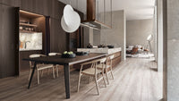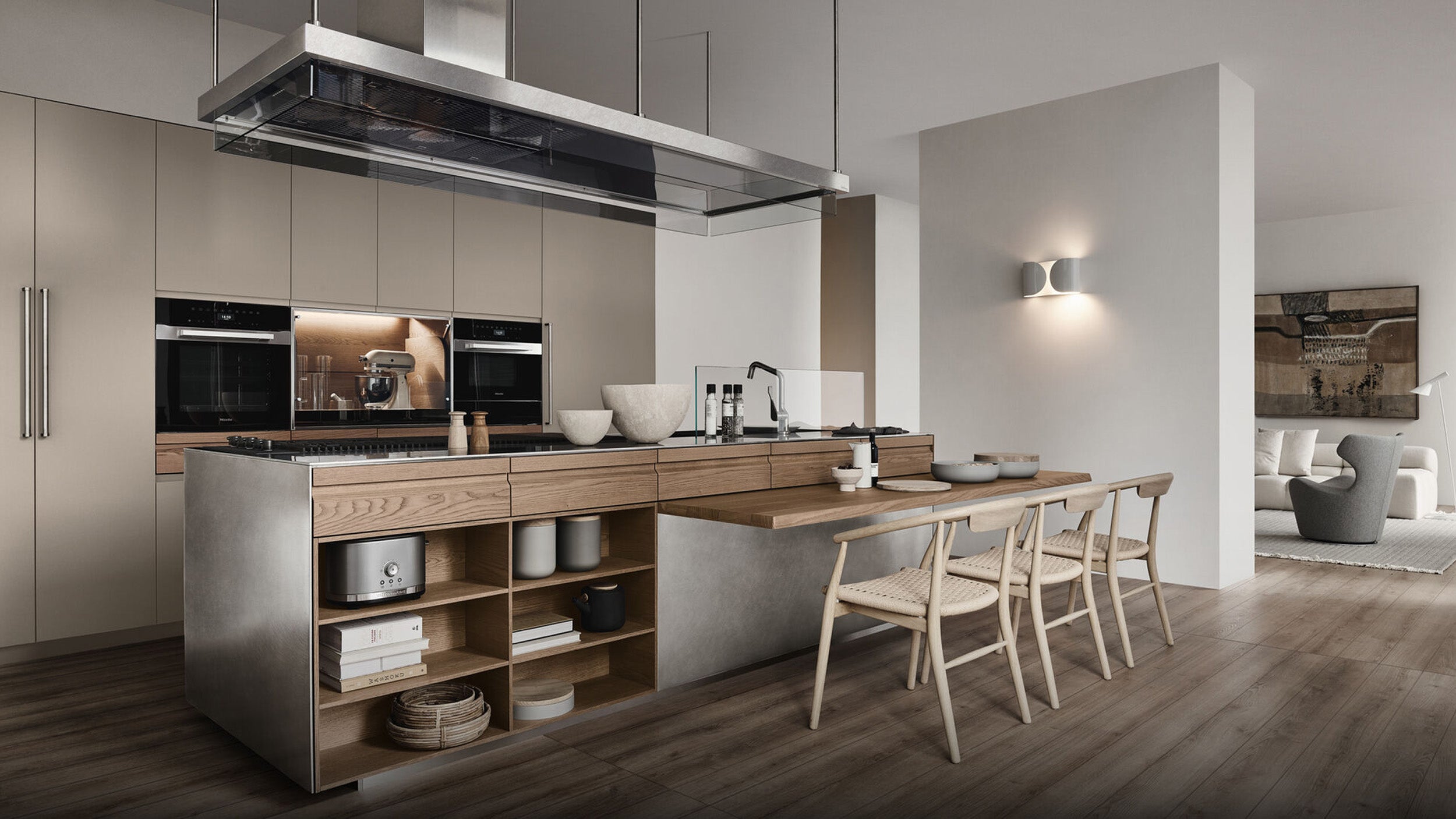 Convivium redefines the kitchen as an intentional gathering place where everyday routines evolve into cherished shared experiences. This elegantly conceived system prioritizes human connection through a commanding central island and refined canopy shelving positioned at picture rail height. Every component, from intelligent storage to thoughtfully designed work surfaces, harmonizes practicality with warmth and visual refinement. The kitchen becomes a narrative space where culinary traditions honor the past while embracing contemporary creativity, where aromatic moments signal presence and togetherness. Beyond furnishings and fixtures, Convivium establishes a sanctuary where cooking transcends necessity and becomes a deliberate expression of community, transforming walls into the backdrop for meaningful connection around the shared table.