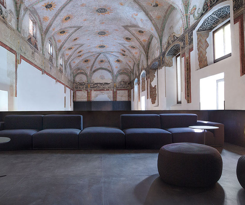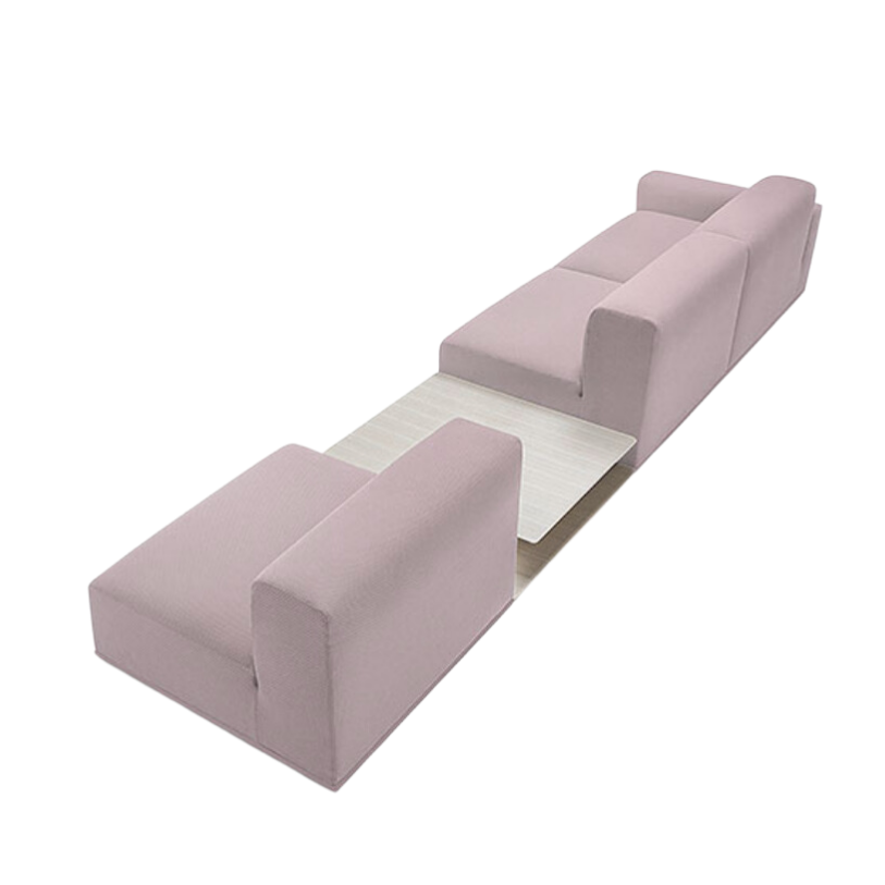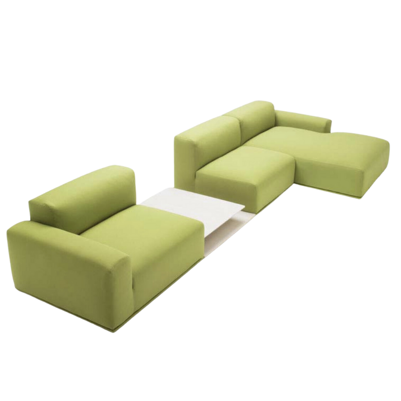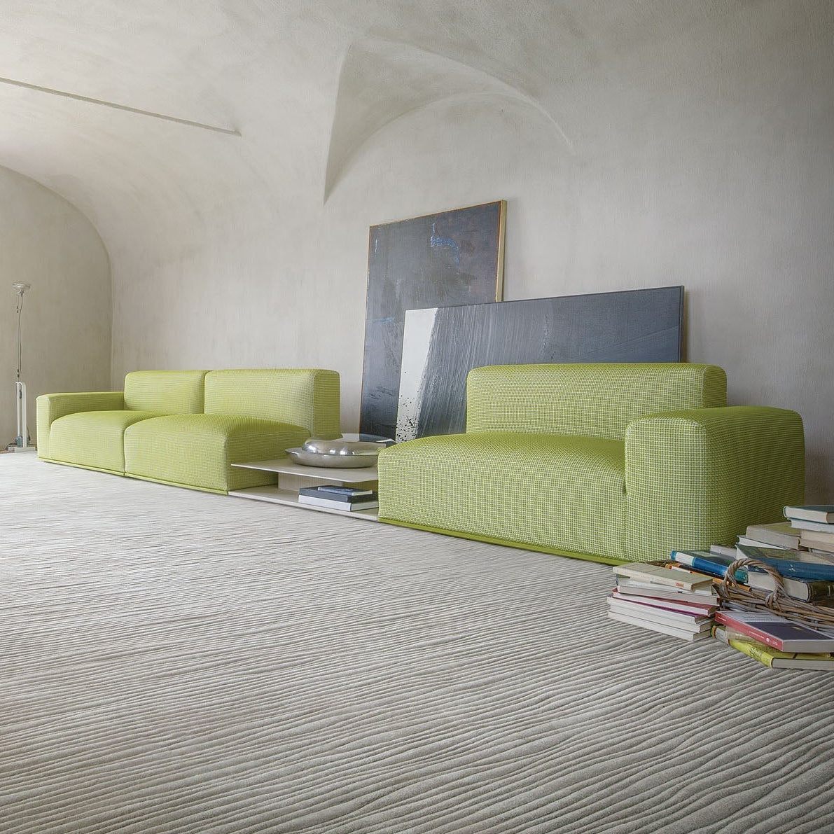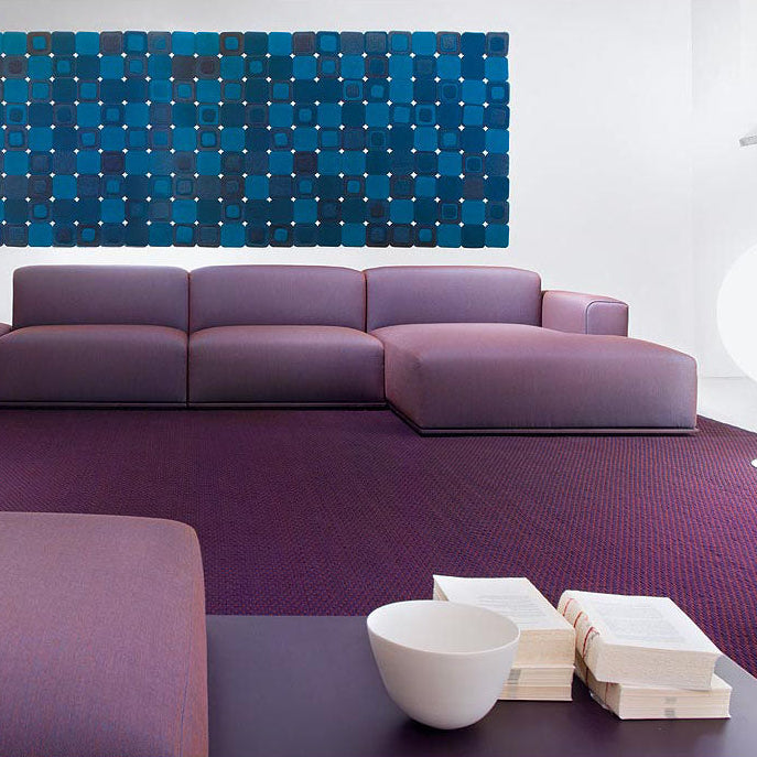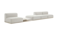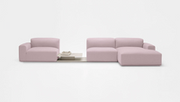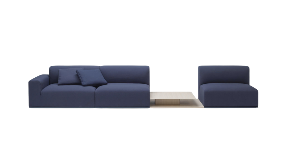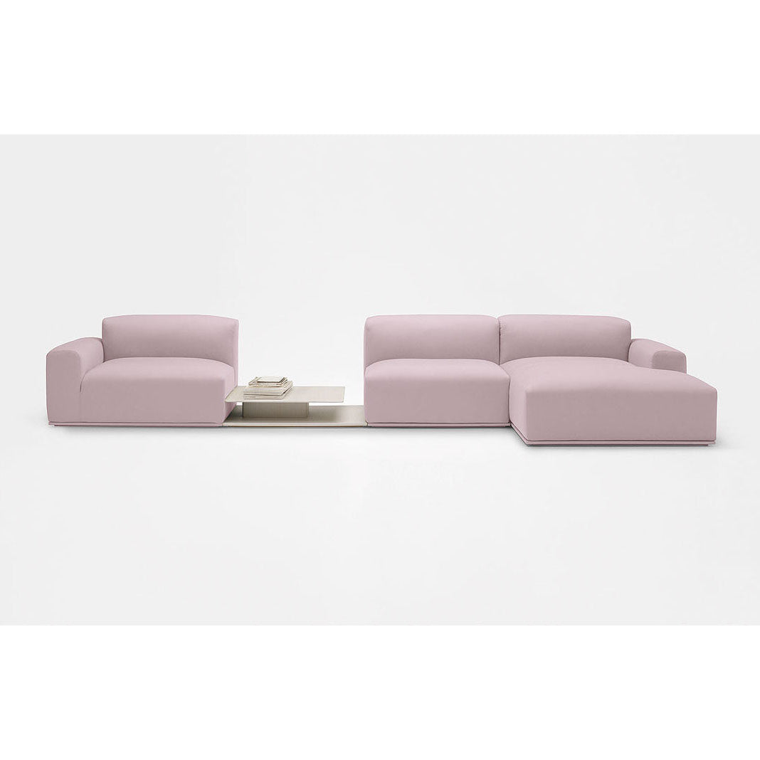 The Cover Sofa, designed by Victor Carrasco for Paola Lenti, is a refined modular seating system offering diverse arrangements including left, right, central, and corner units, plus a chaise longue and pouf. Its wooden frame features elastic belts, complemented by a multilayer wooden base lacquered in matte tones that harmonize with the upholstery. The padding combines stress-resistant polyurethane foam with polyester fiber and polyamide covers. Upholstery is removable and selectable from an exclusive fabric collection. The steel coupling system ensures flexibility, while an optional side table crafted in lacquered or veneered fibreboard adds elegance. Loose cushions are suggested to enhance comfort.