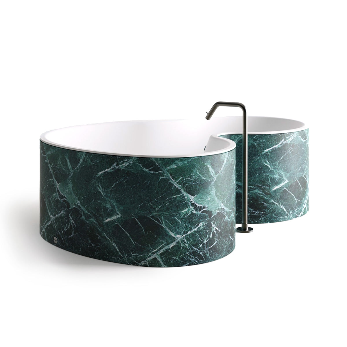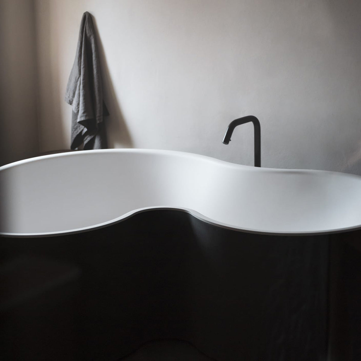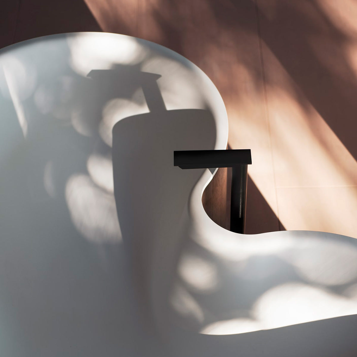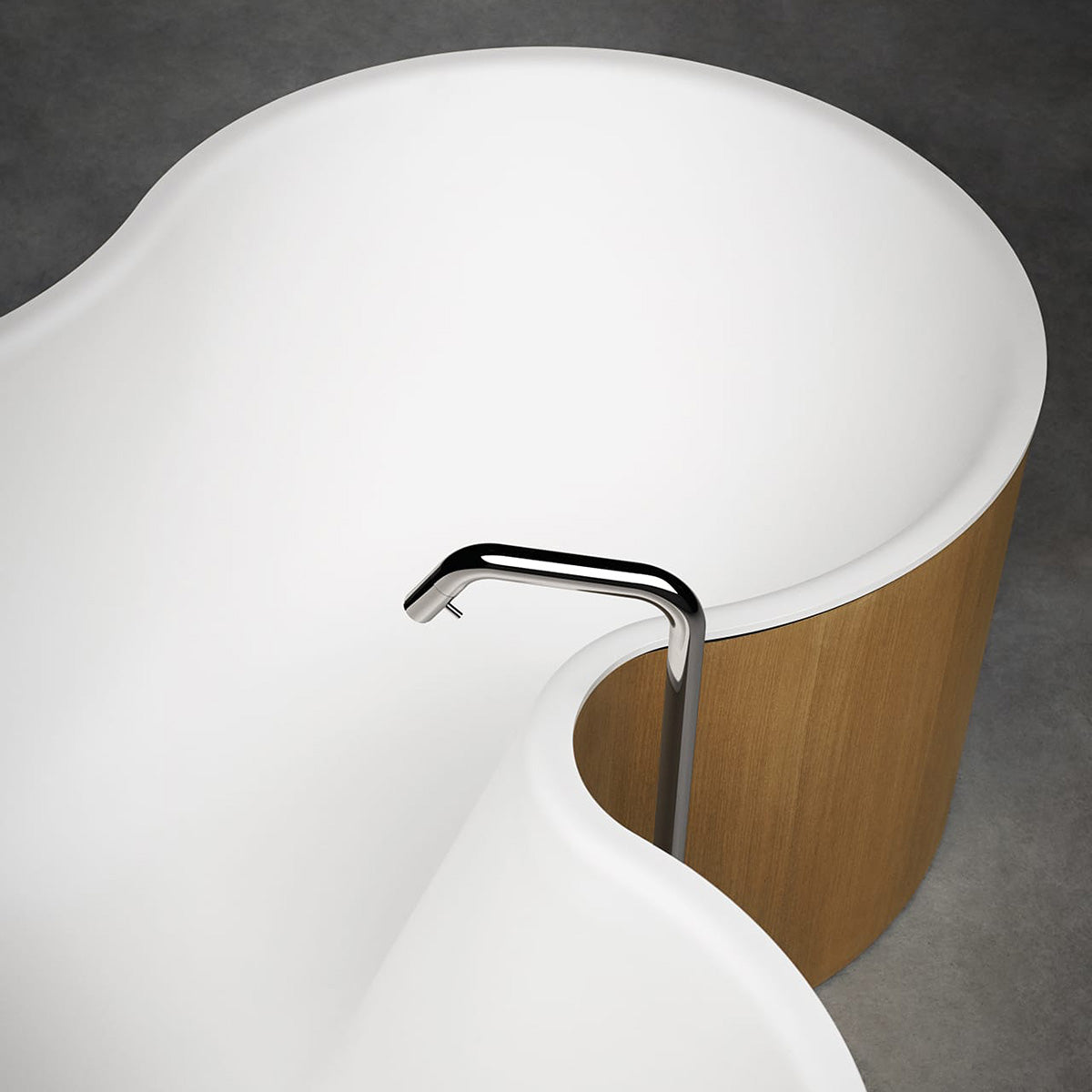 La bañera DR es fruto de la colaboración con el diseñador brasileño Marcio Kogan y Studio MK27. En palabras de los diseñadores: «La intención es crear un objeto acogedor, sensual y carismático. Las líneas suaves y fluidas de DR ofrecen una gran versatilidad».