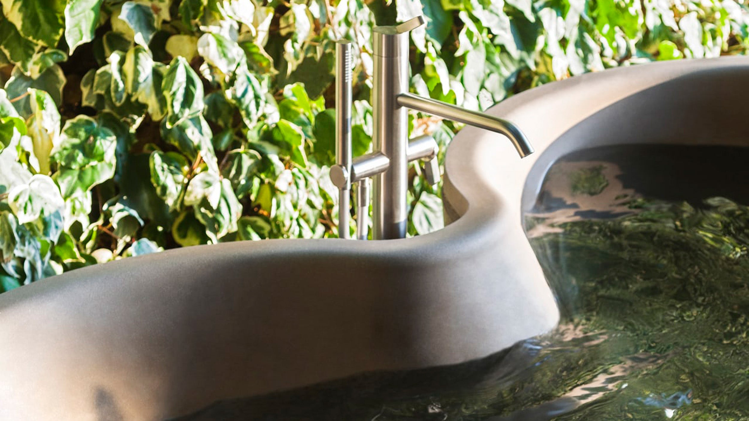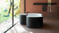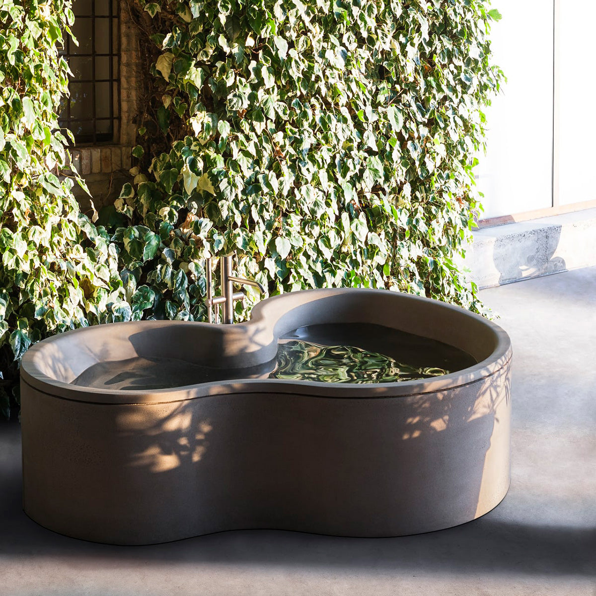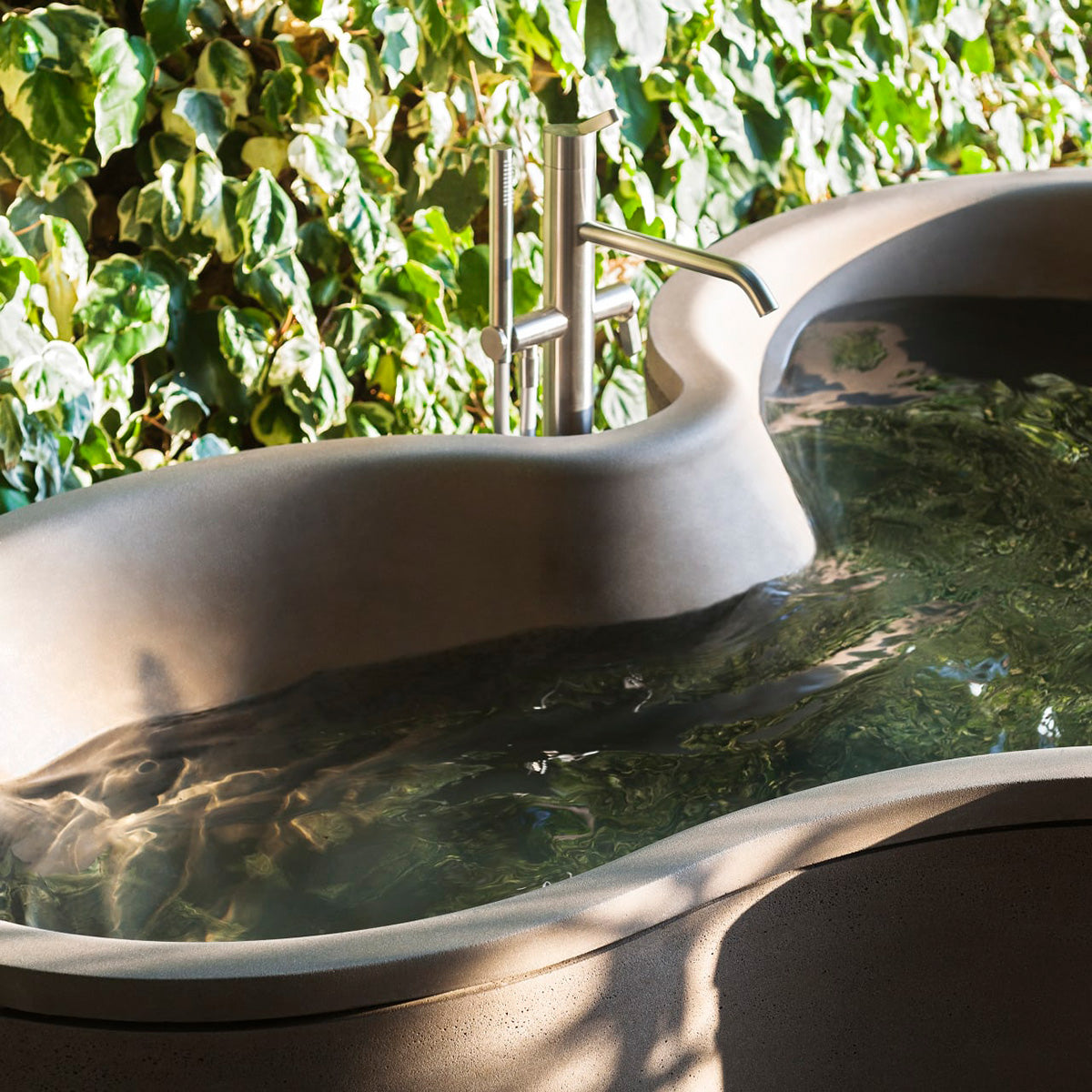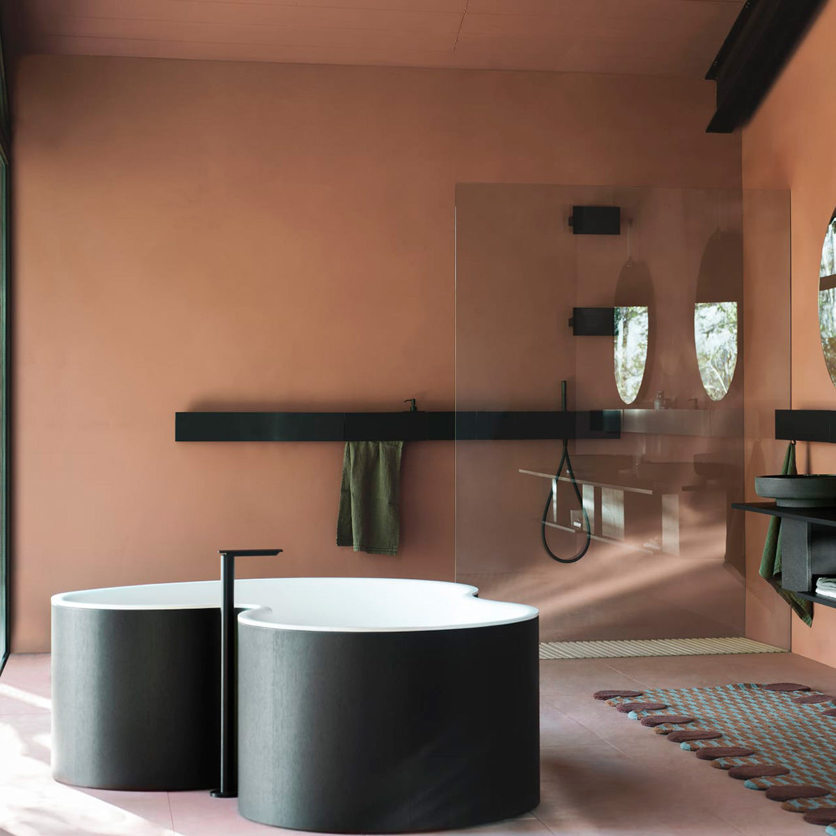 La bañera DR es fruto de la colaboración con el diseñador brasileño Marcio Kogan y Studio MK27. En palabras de los diseñadores: «La intención es crear un objeto acogedor, sensual y carismático. Las líneas suaves y fluidas de DR ofrecen una gran versatilidad».