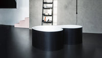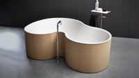 ¡Toma tu lugar y bienvenido! Fabricada en madera curvada por fuera y superficie sólida por dentro, con grifería de pared o suelo. También se puede suministrar agua desde el interior de la bañera.