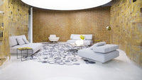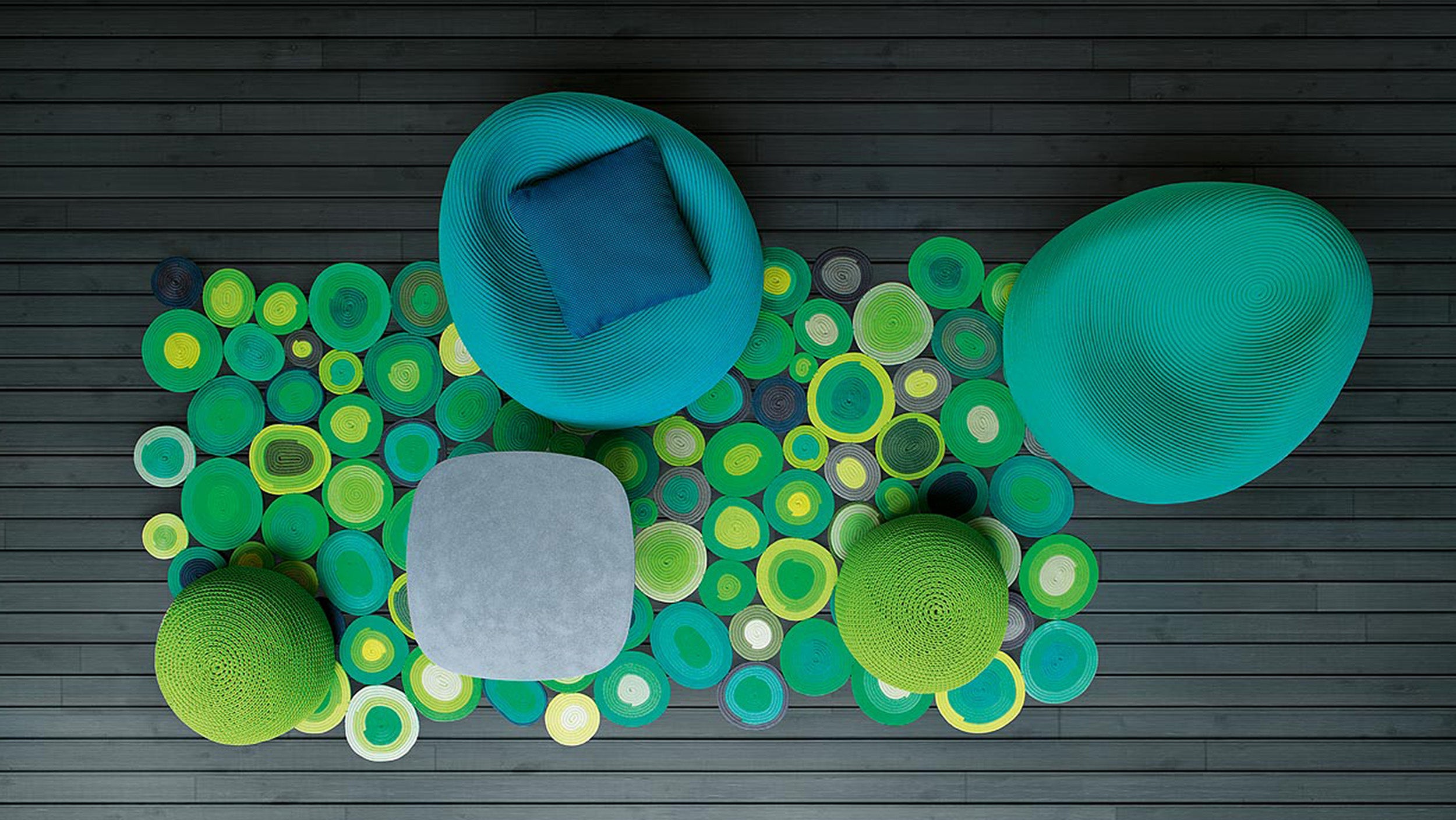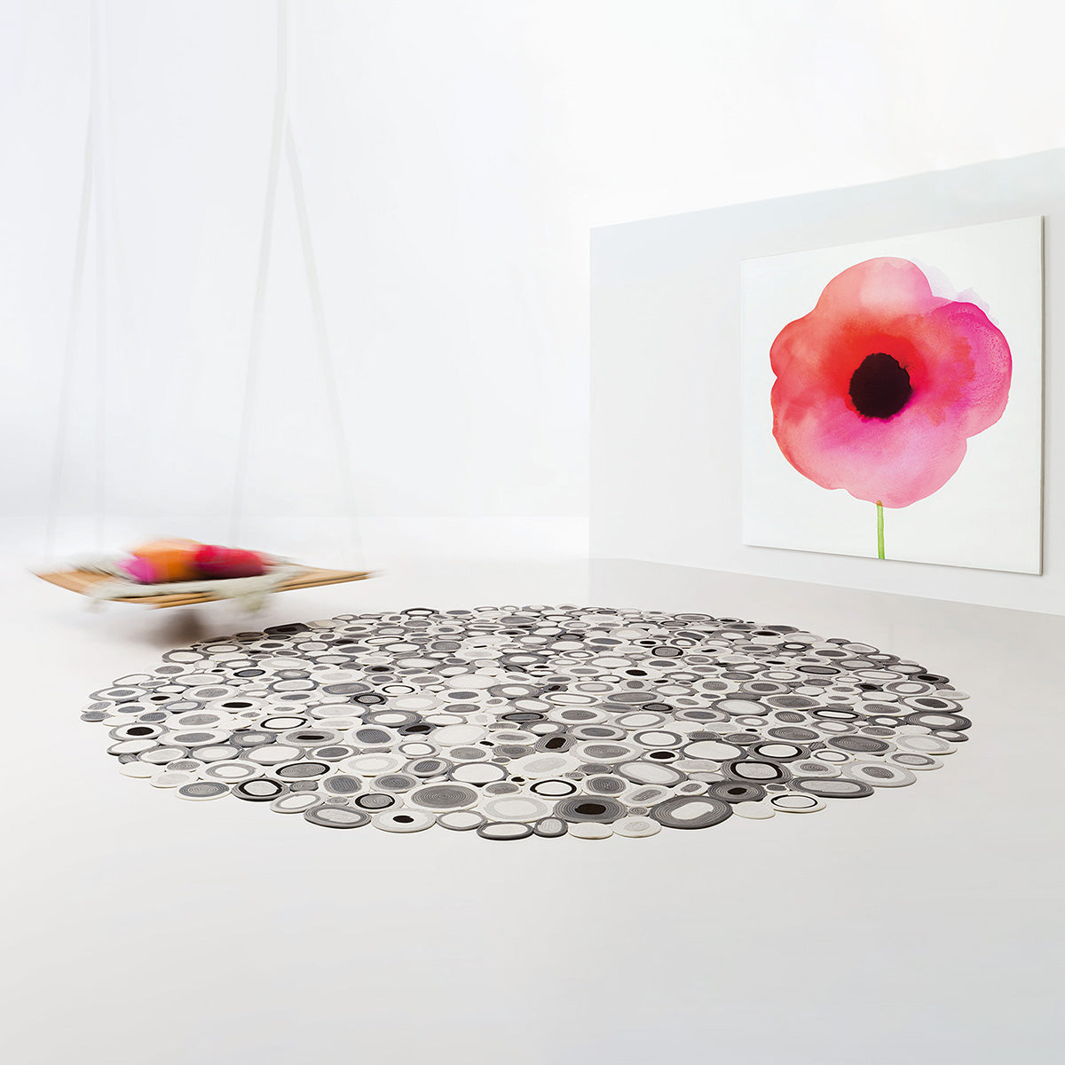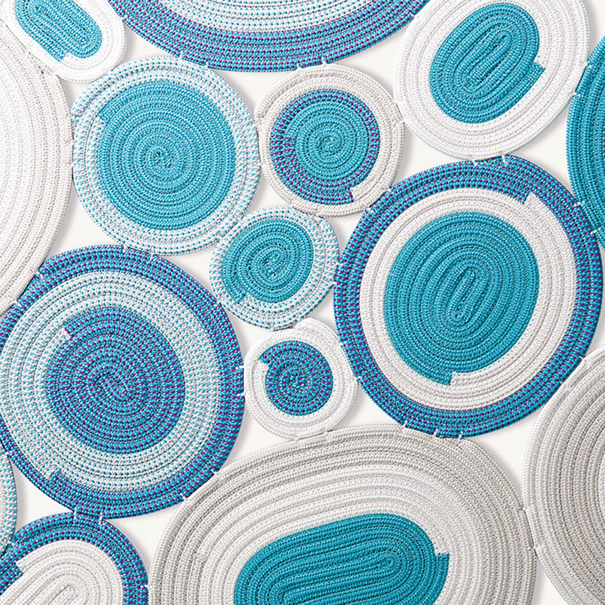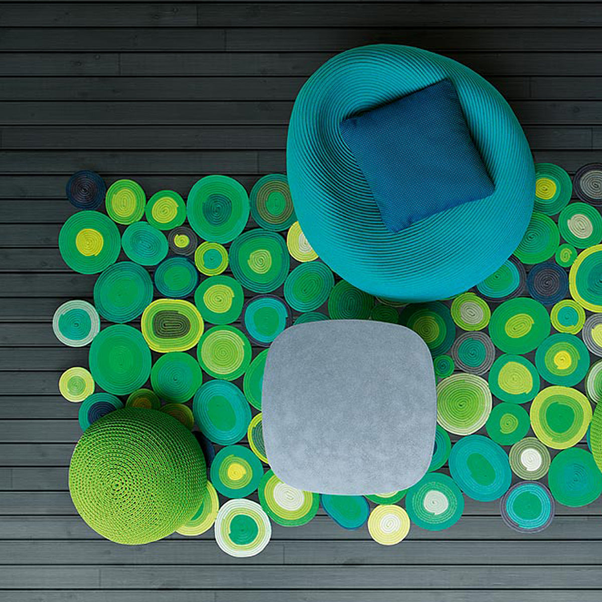 The Ellissi Rug, crafted by CRS Paola Lenti, is a versatile rug designed for both outdoor and indoor spaces. It features hand-shaped and sewn cords in one or two colors, assembled into round and oval decorative modules. These modules connect freely, allowing glimpses of the floor through the open spaces. You may select up to four colors for a personalized palette. Made from 100% polyolefin rope cord, this rug is easy to maintain with a simple vacuuming using a brush-free attachment.
