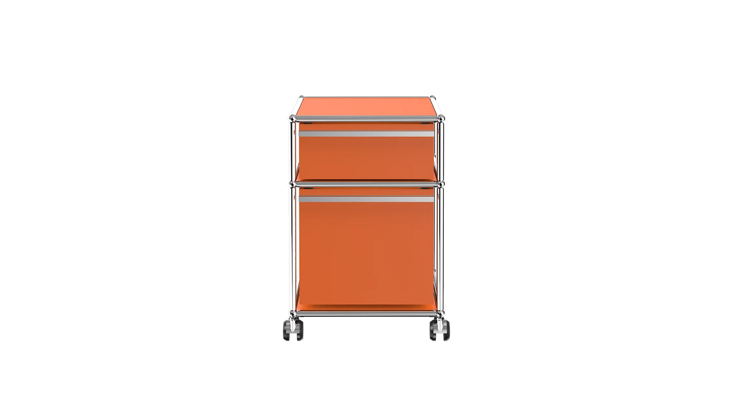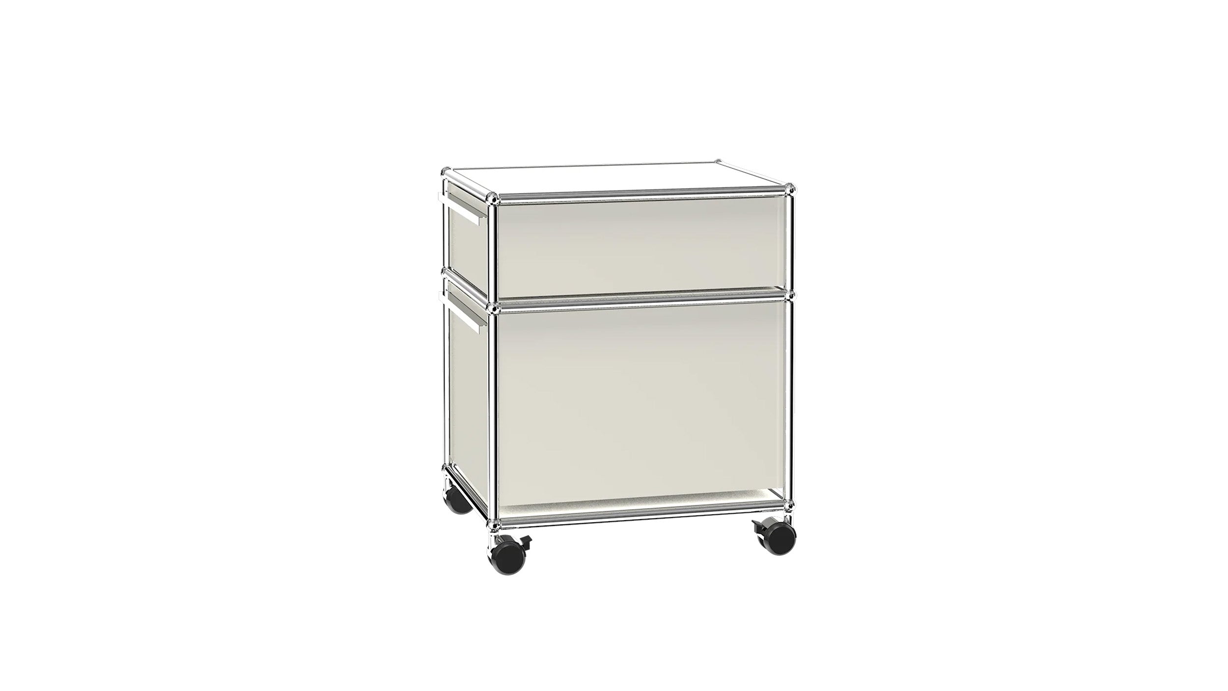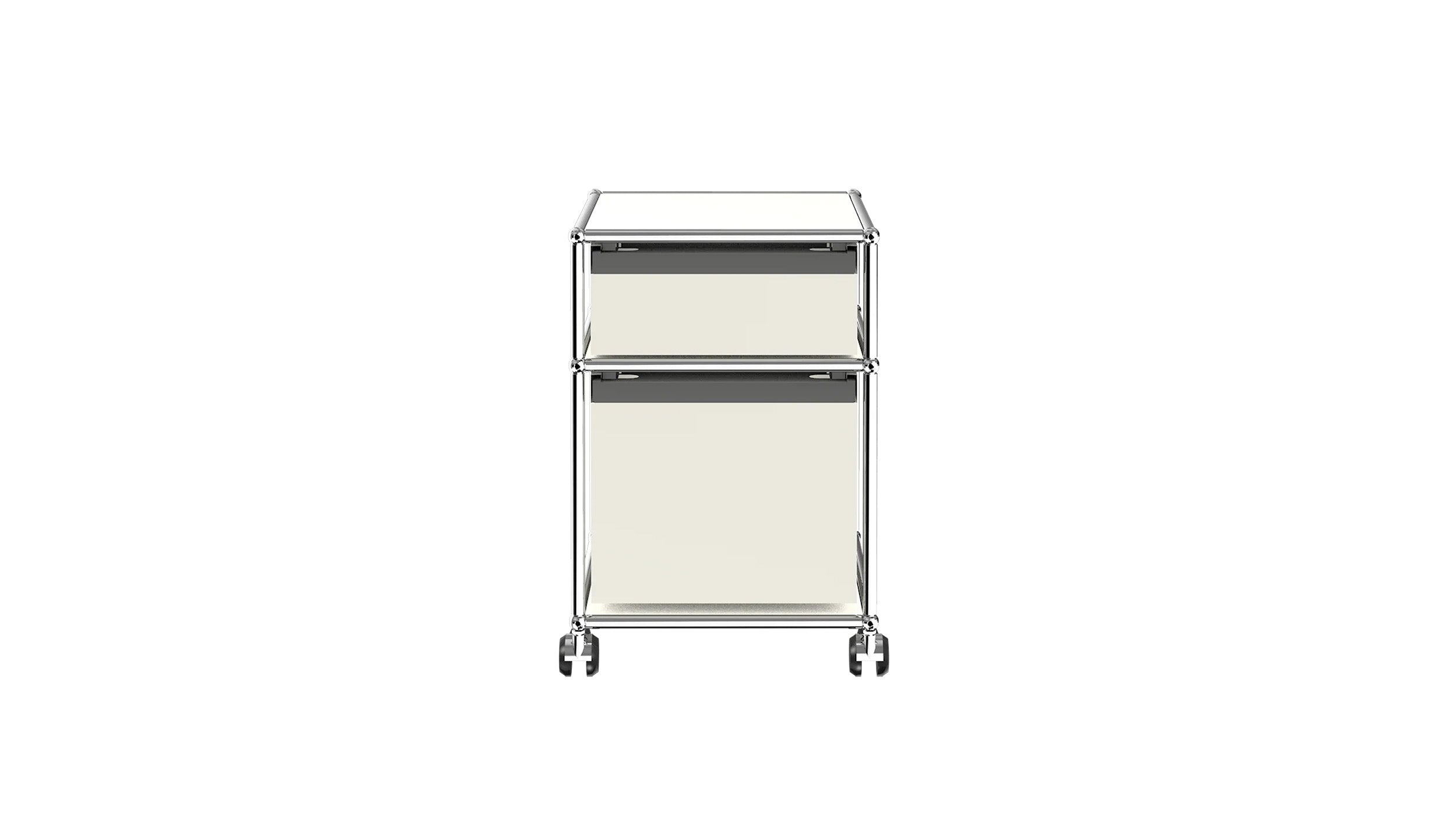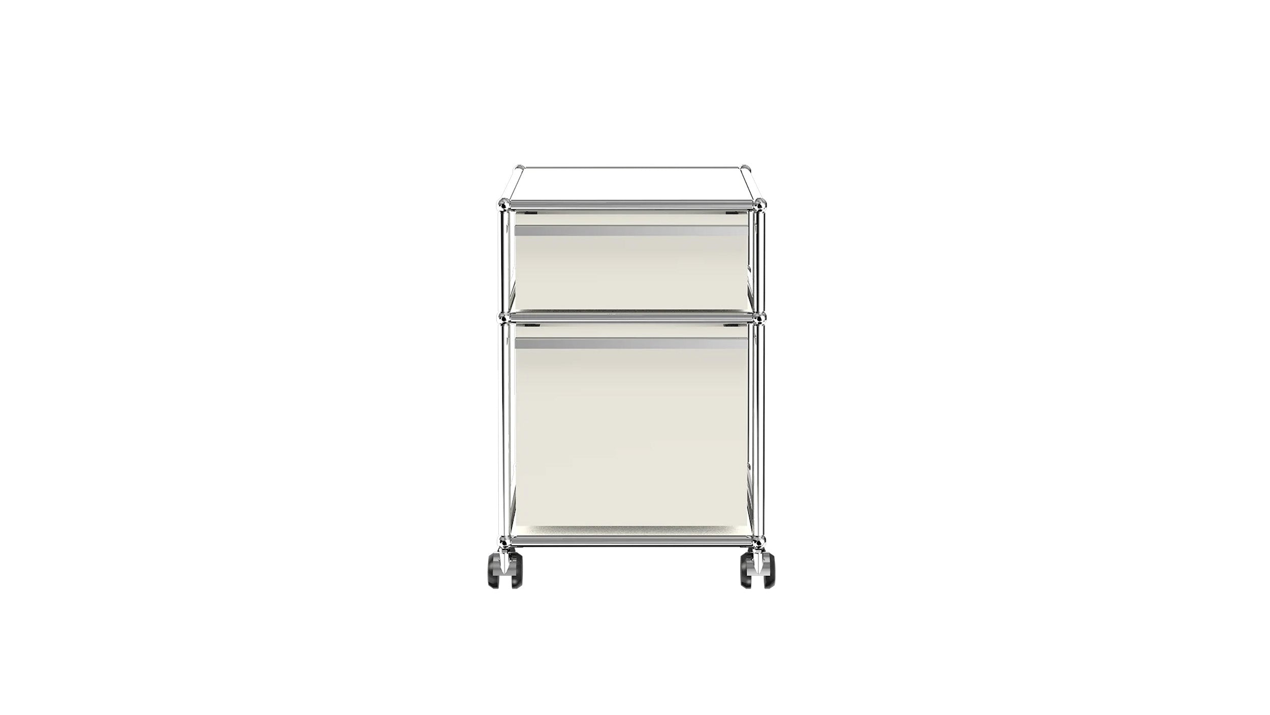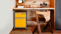File Pedestal (M) is a mobile office storage piece designed for efficient organization in a compact footprint. A shallow 6-inch drawer and a deeper 14-inch letter filing drawer keep documents close at hand, while concealed casters allow it to slide neatly beneath a desk. Available in 7 standard surface colors, it adds a more personal and adaptable finish to the workspace.