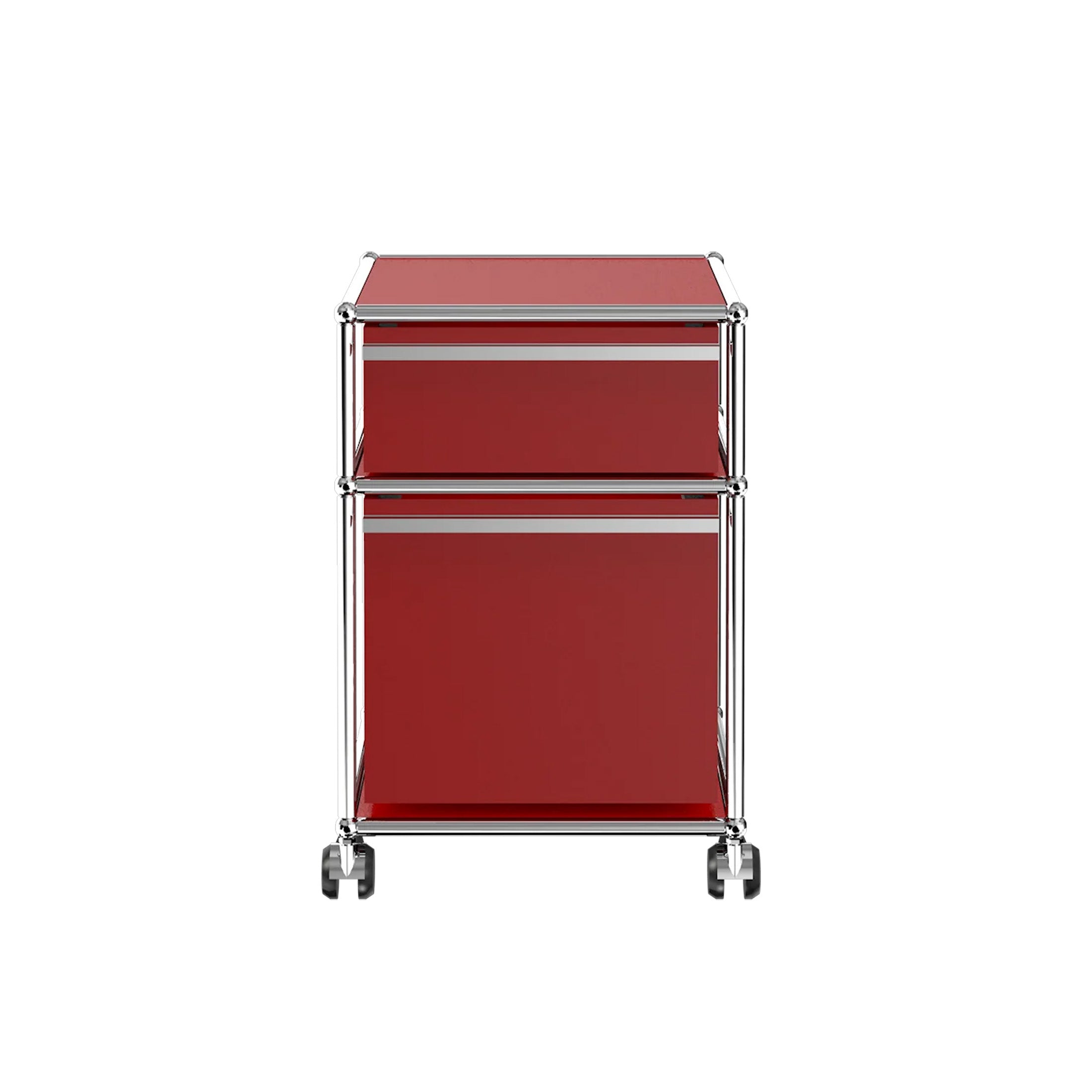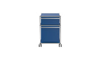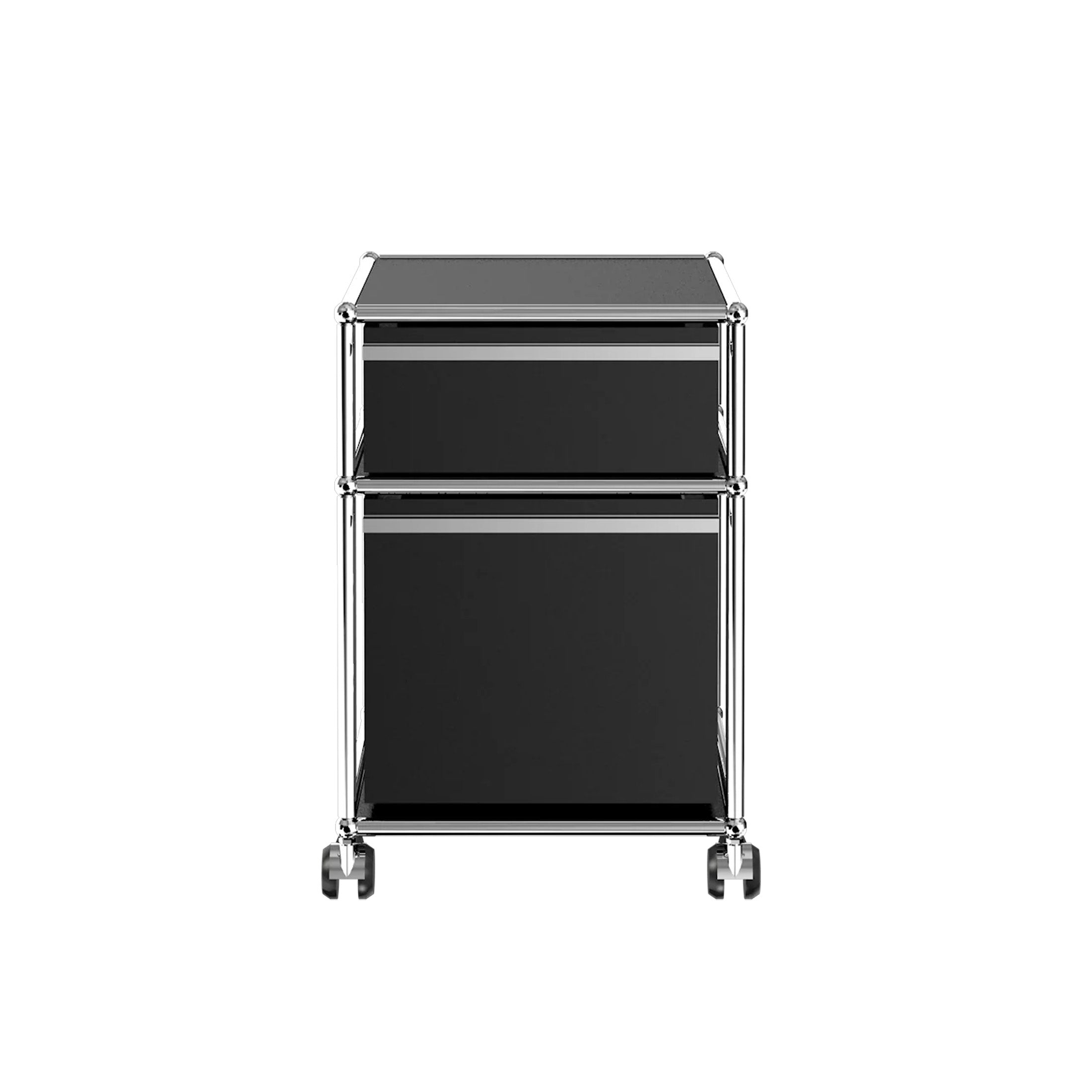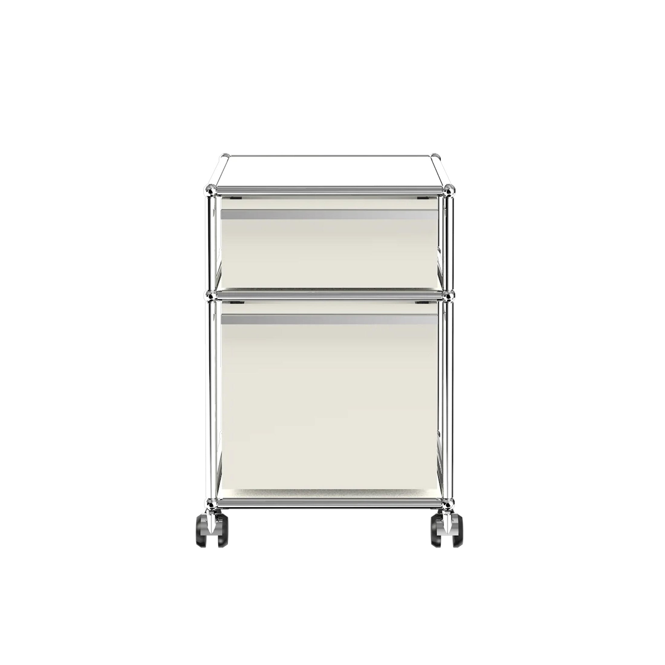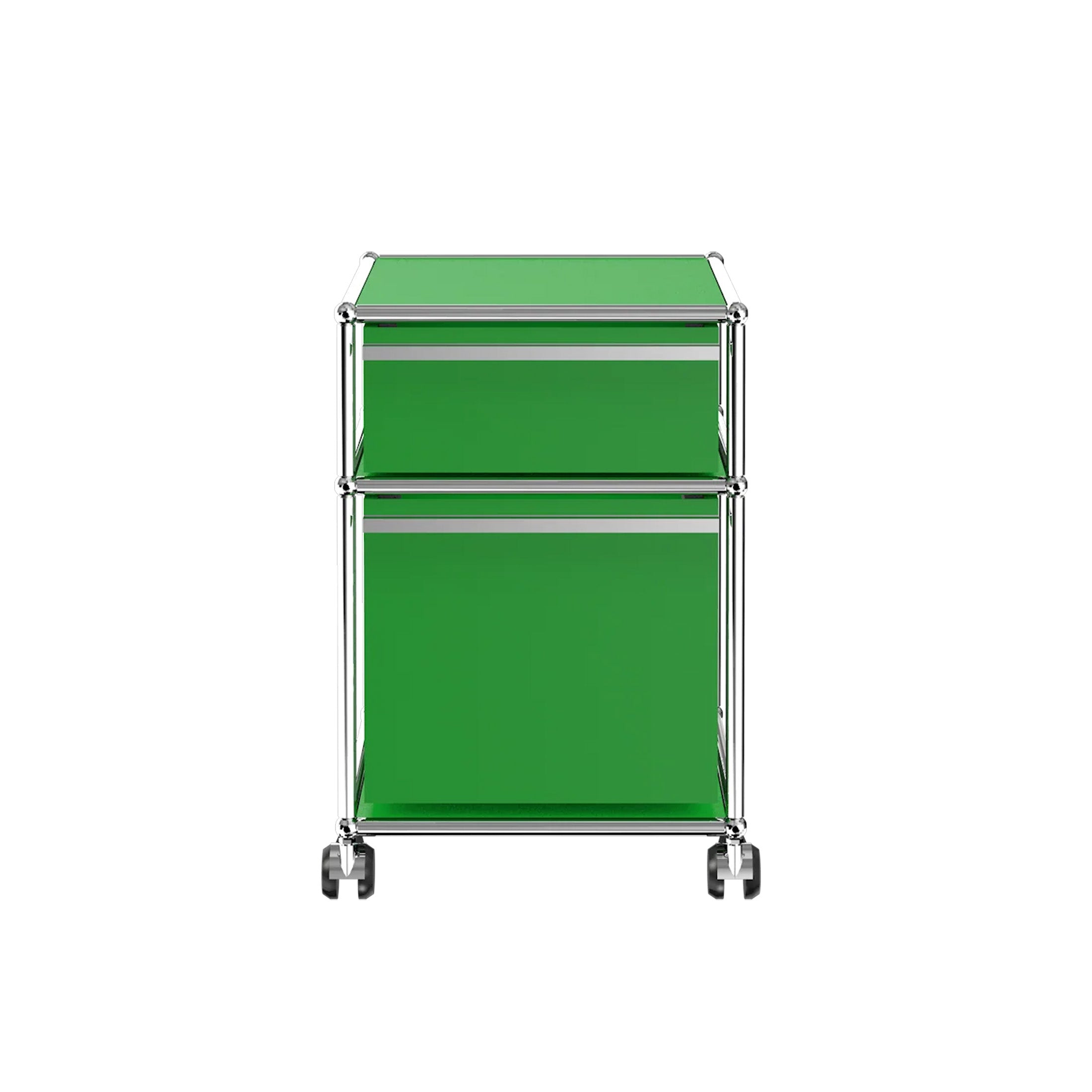 File Pedestal (M) is a mobile office storage piece designed for efficient organization in a compact footprint. A shallow 6-inch drawer and a deeper 14-inch letter filing drawer keep documents close at hand, while concealed casters allow it to slide neatly beneath a desk. Available in 7 standard surface colors, it adds a more personal and adaptable finish to the workspace.