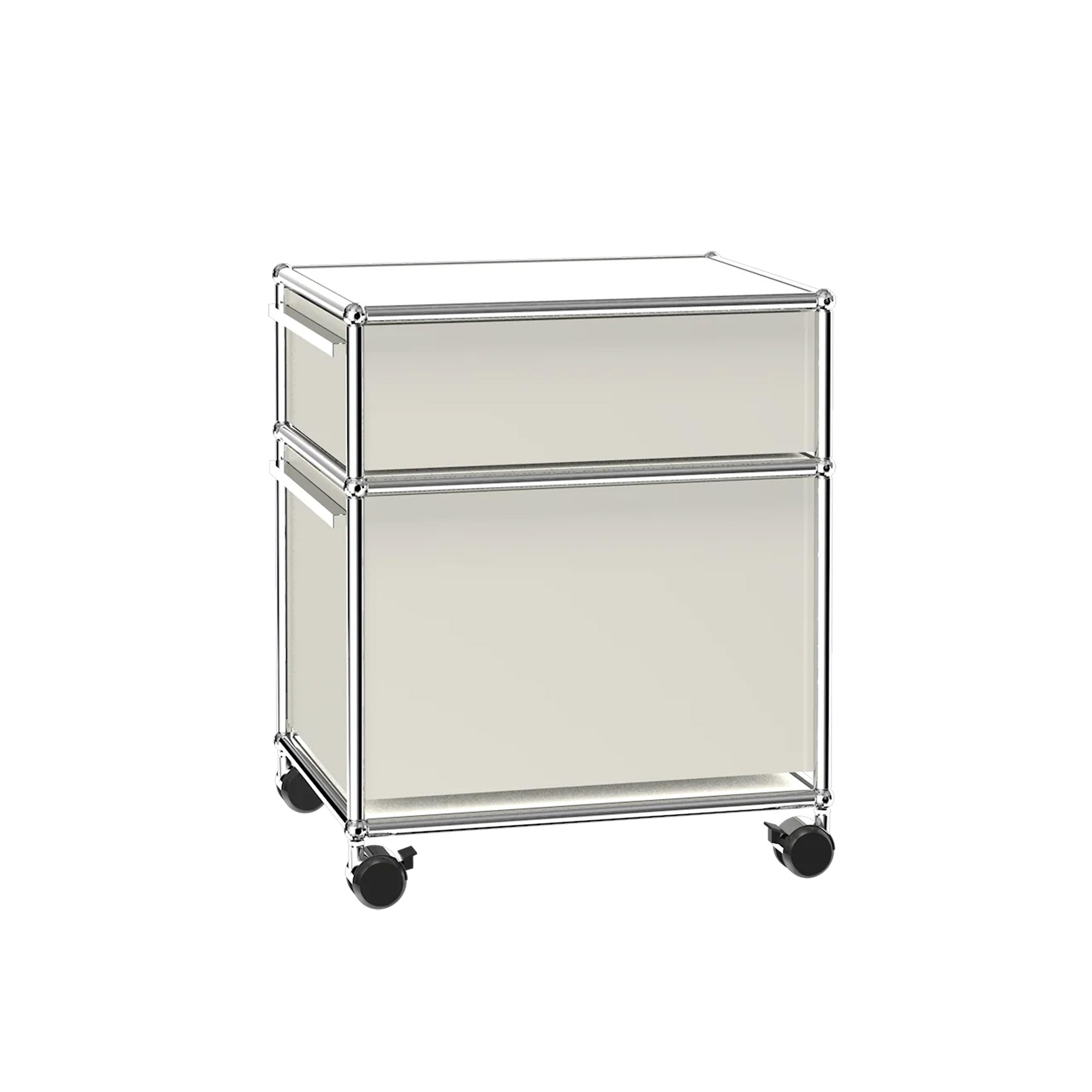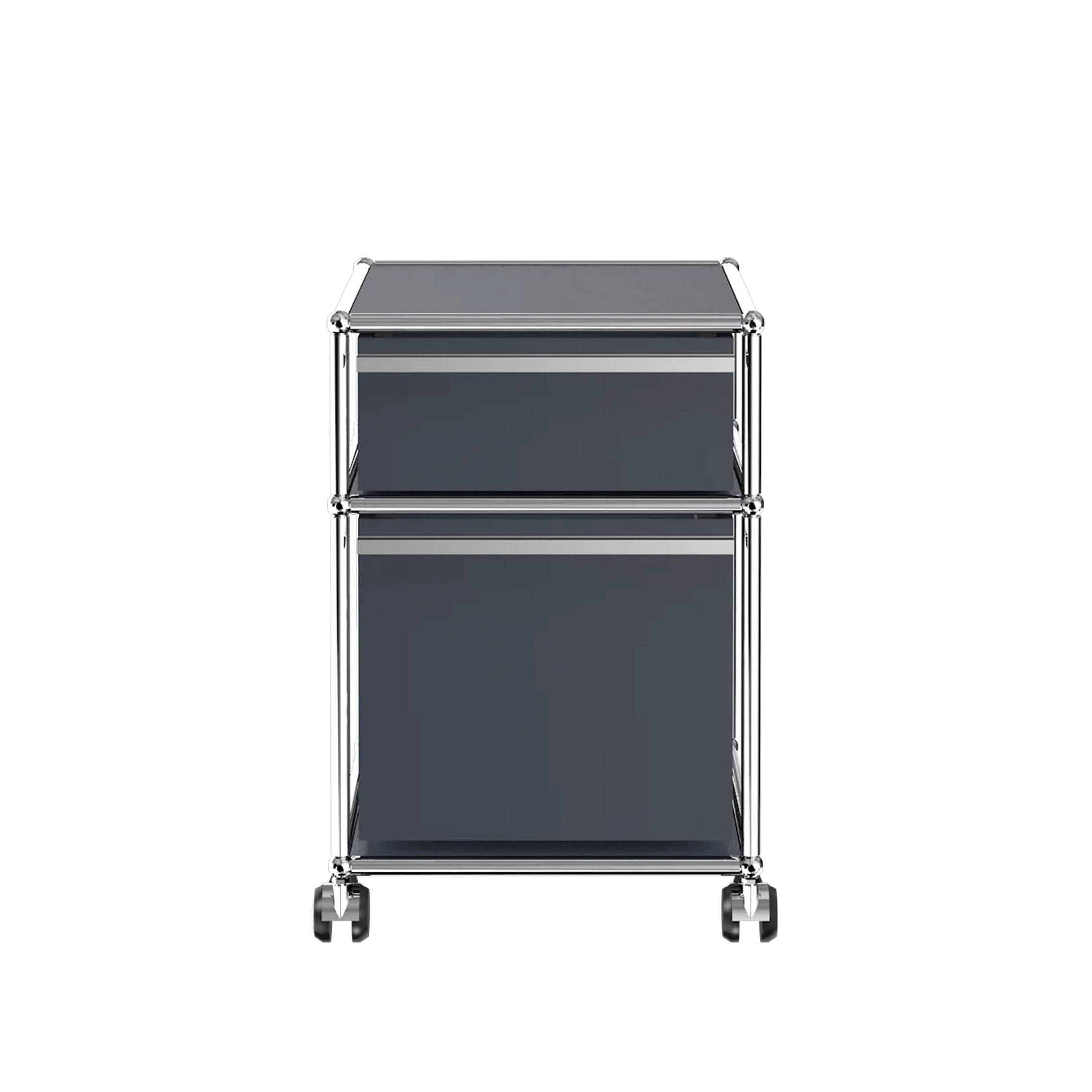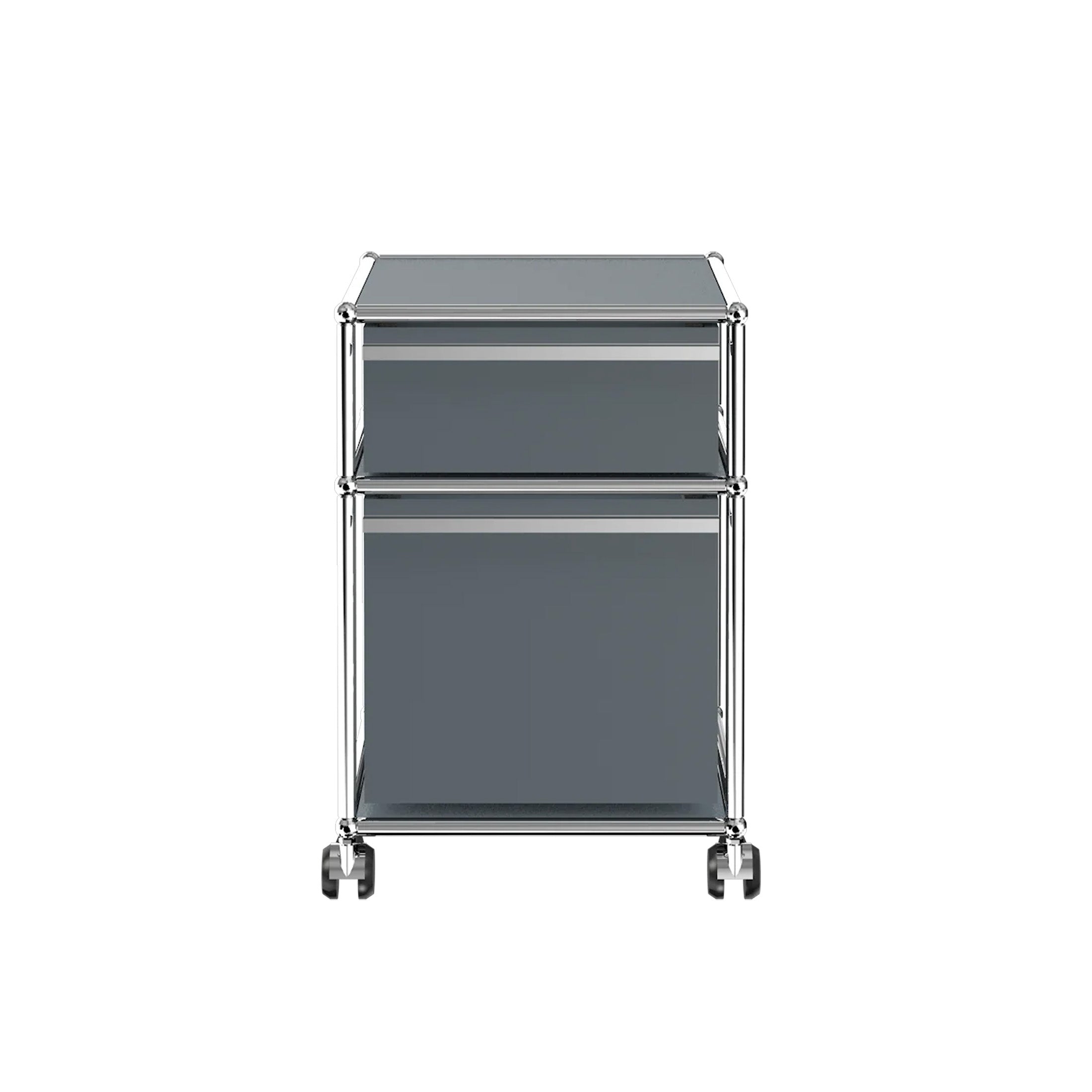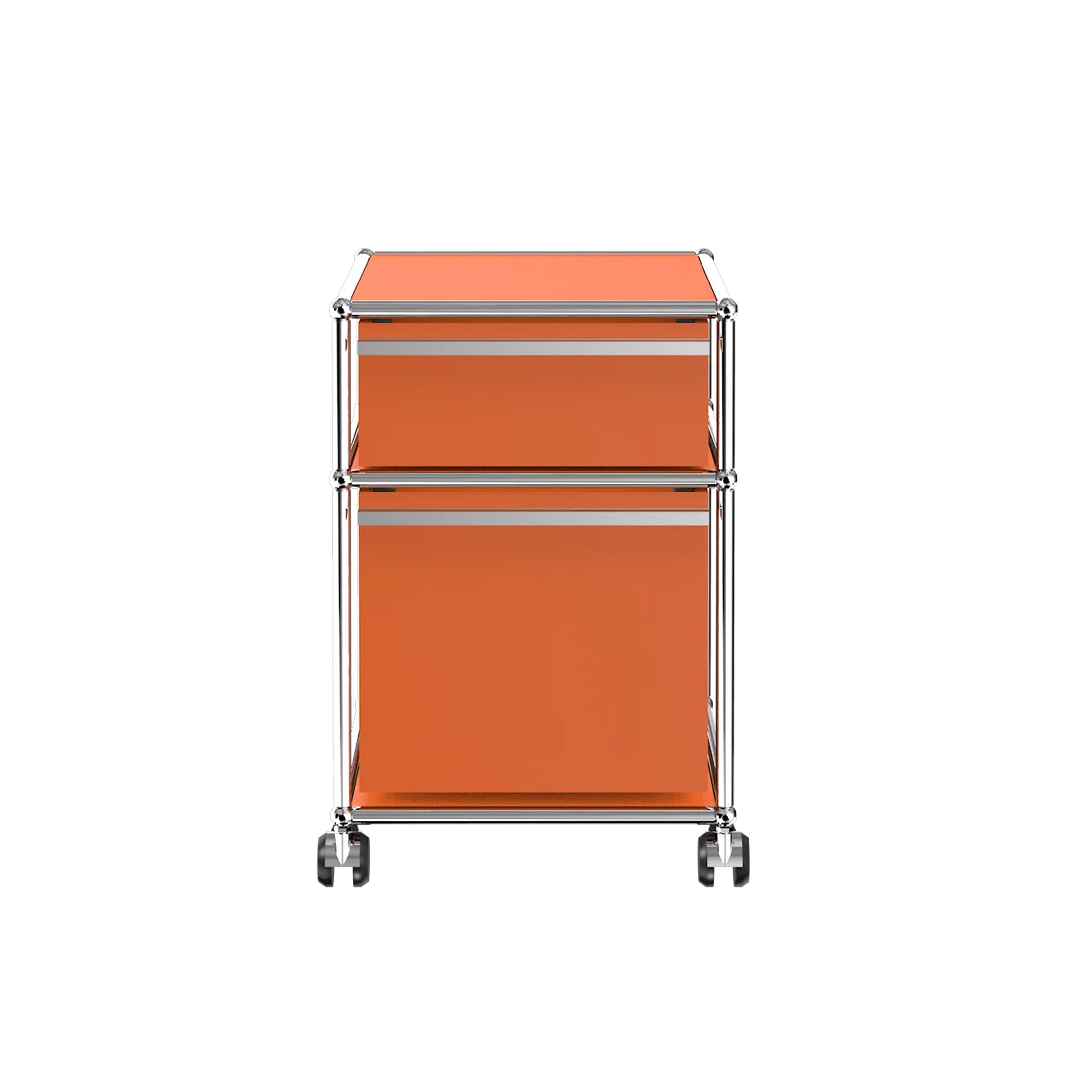 File Pedestal (M) is a mobile office storage piece designed for efficient organization in a compact footprint. A shallow 6-inch drawer and a deeper 14-inch letter filing drawer keep documents close at hand, while concealed casters allow it to slide neatly beneath a desk. Available in 7 standard surface colors, it adds a more personal and adaptable finish to the workspace.