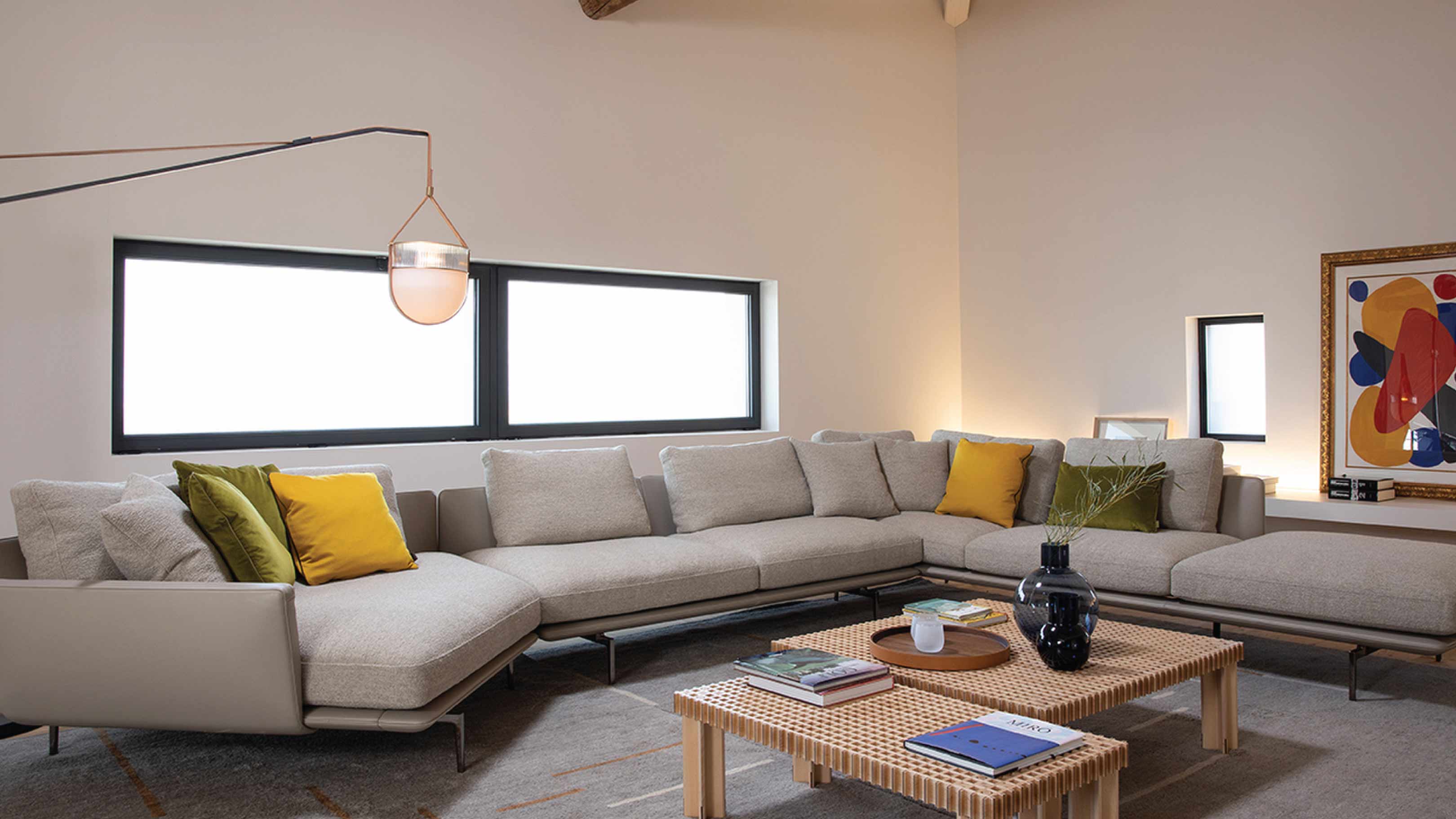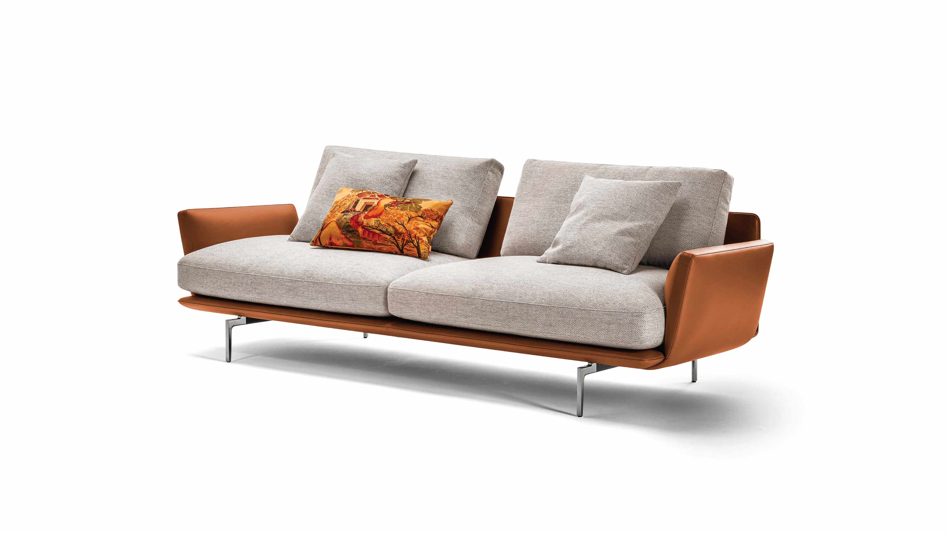 El sofá Get Back es el resultado de una profunda investigación sobre la comodidad. Su diseño presume de líneas generosas y abiertas, respaldos reclinables que invitan a la relajación, dos tipos de reposabrazos y numerosos elementos modulares que se pueden combinar libremente en diversas composiciones. La estructura suspendida, sostenida por sencillas patas de aluminio, crea un efecto general ligero. Los suaves cojines y las chaise longues, con una profundidad inesperada, invitan a "volver a casa" y a disfrutar del ambiente tranquilo y acogedor de su sala de estar.