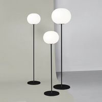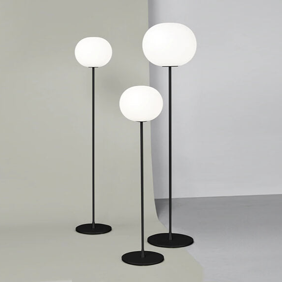 The Flos Glo-Ball floor lamp has a slender stem which provides a stable foundation for the hand-blown, acid-etched Opaline glass sphere