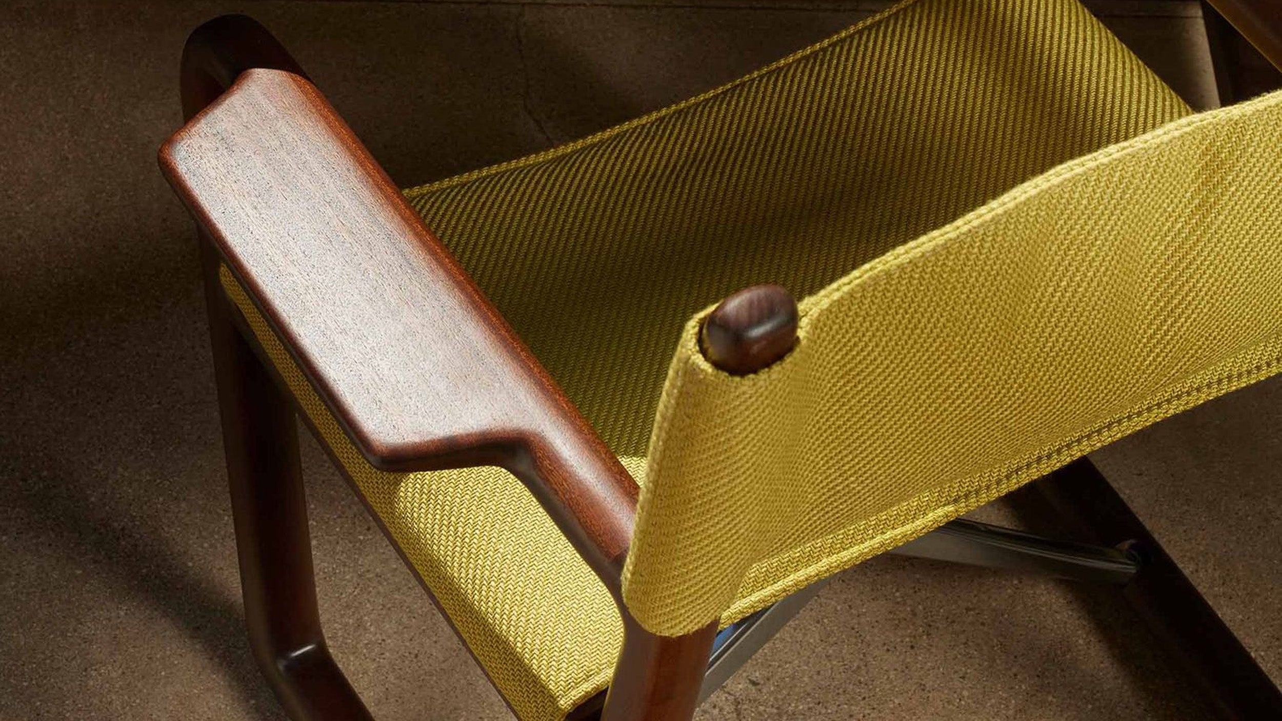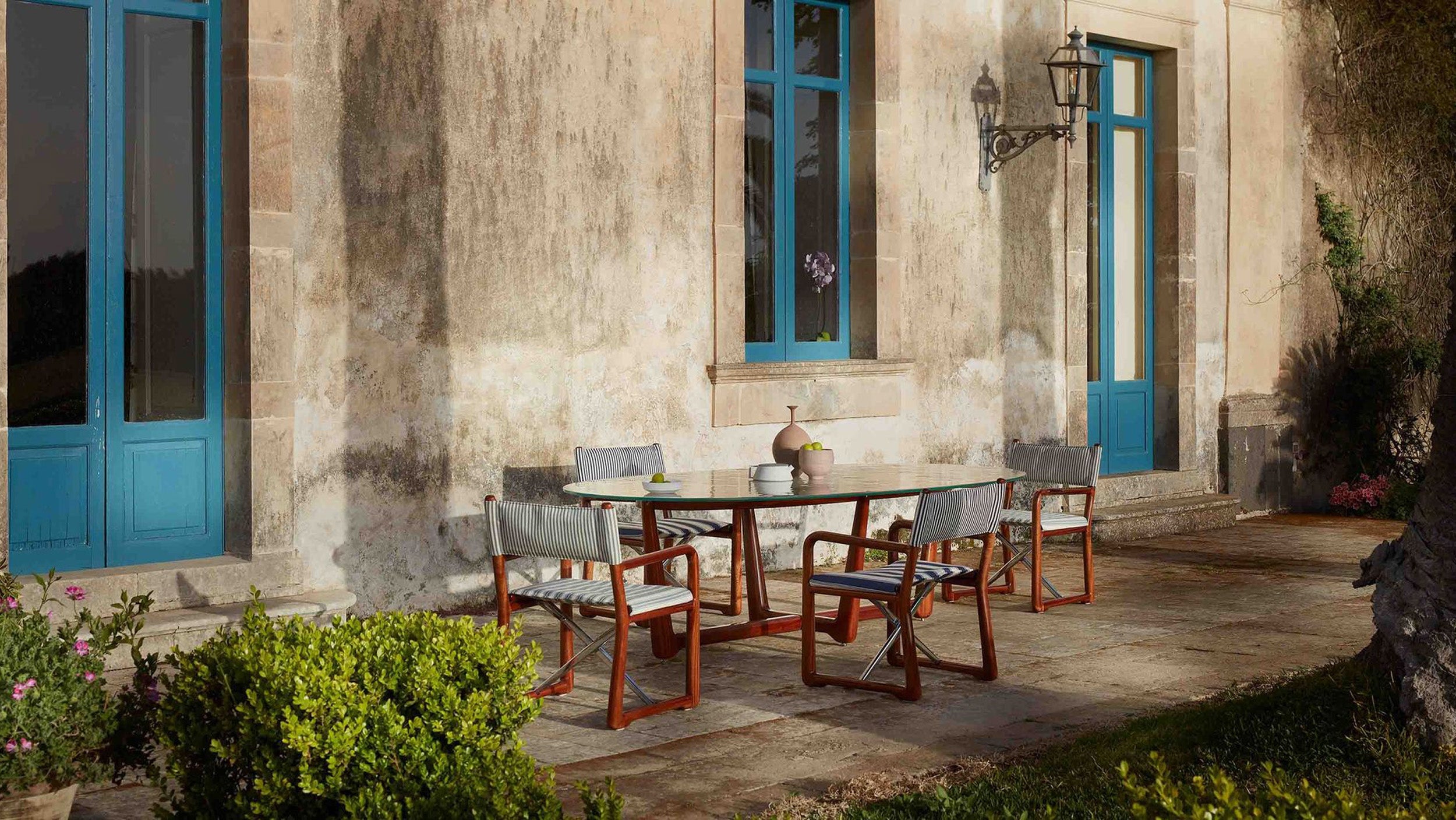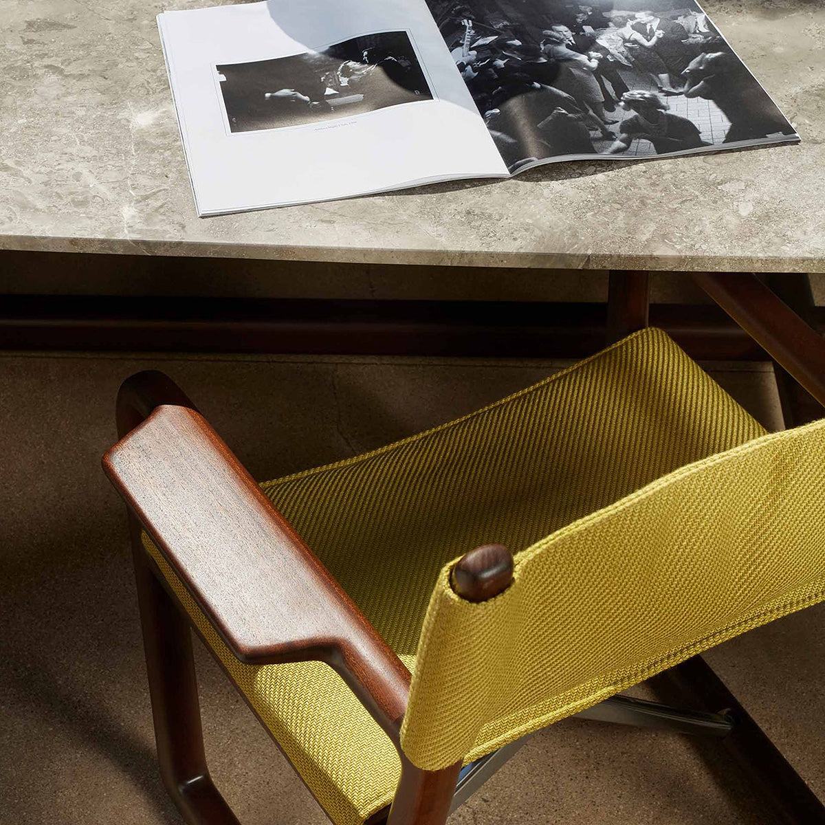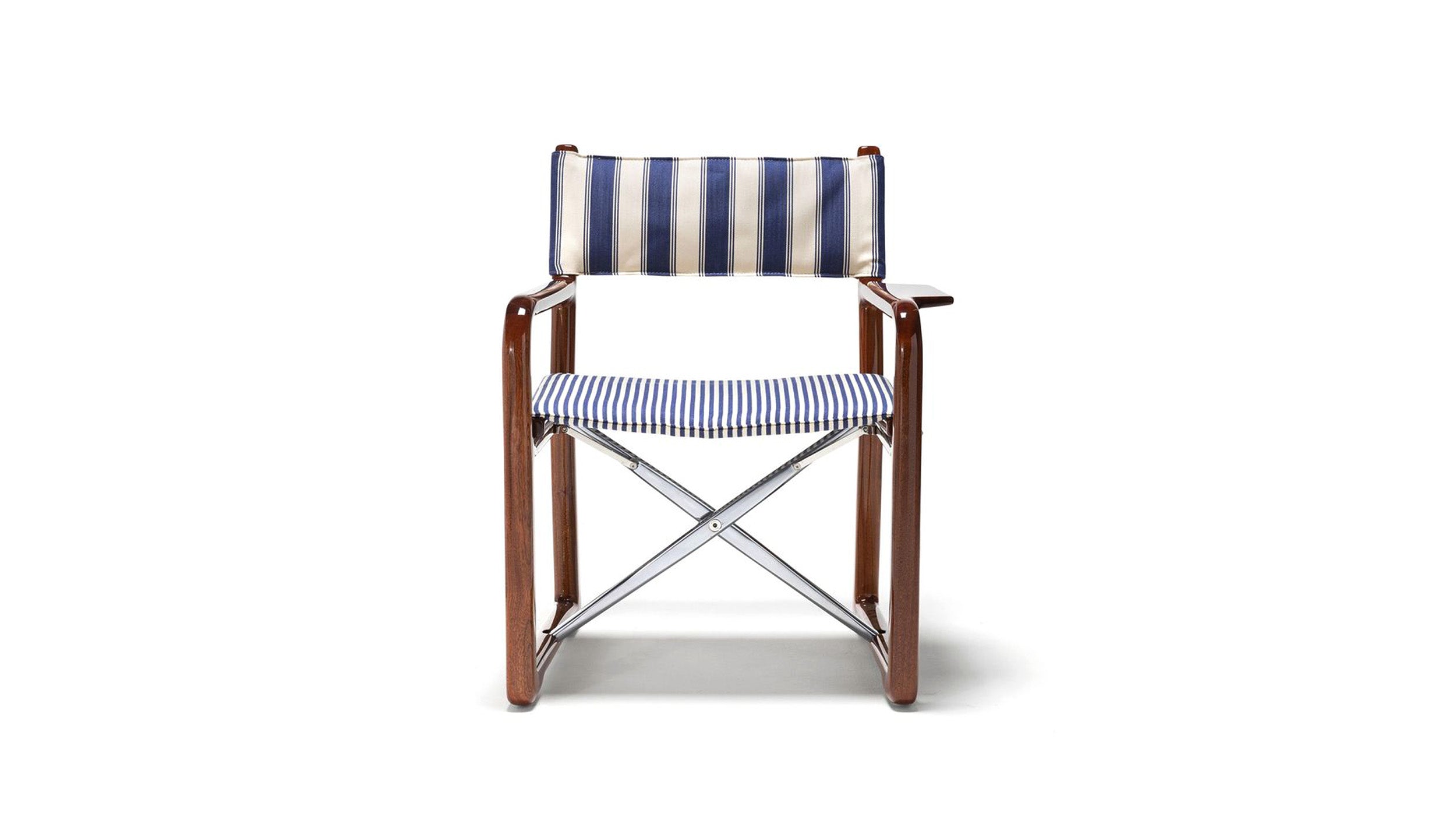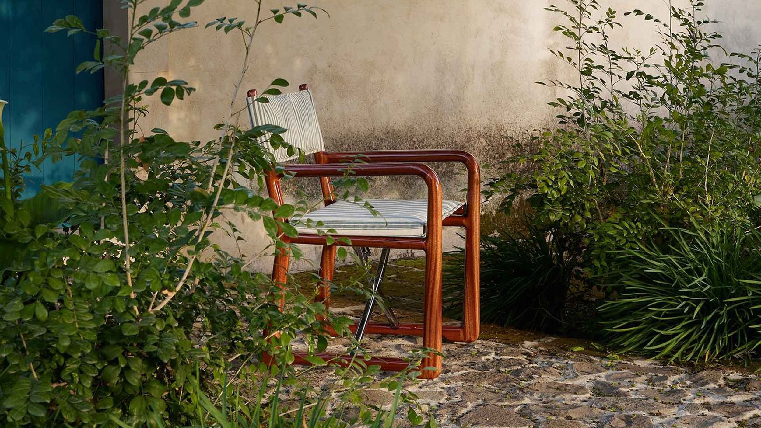 The LPIDC01 Folding Director's Chair, designed by Paola Navone for Exteta with Loro Piana Interiors, reimagines a timeless icon of leisure. Its foldable mahogany frame and Loro Piana fabrics make it as practical as it is refined, perfect for terraces, yachts, or garden settings. This chair travels lightly yet carries a weight of sophistication.