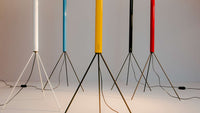 El La lámpara de pie Luminator, diseñada por Achille y Pier Giacomo Castiglioni en 1954, es un auténtico ejemplo de elegancia minimalista. Con un esbelto cuerpo de hierro pintado, proporciona una hermosa luz indirecta, sostenida por patas de trípode de metal galvanizado que le otorgan estabilidad y mantienen un perfil elegante. Fiel a la filosofía de simplicidad funcional de los hermanos Castiglioni, la Luminator está disponible en su color original antracita, así como en vibrantes opciones de colores como amarillo, rojo, blanco y azul claro. Esta icónica lámpara de pie incluye un interruptor integrado y es totalmente compatible con bombillas LED, lo que la convierte en una solución de iluminación atemporal y moderna.
