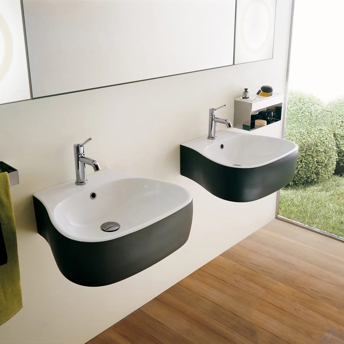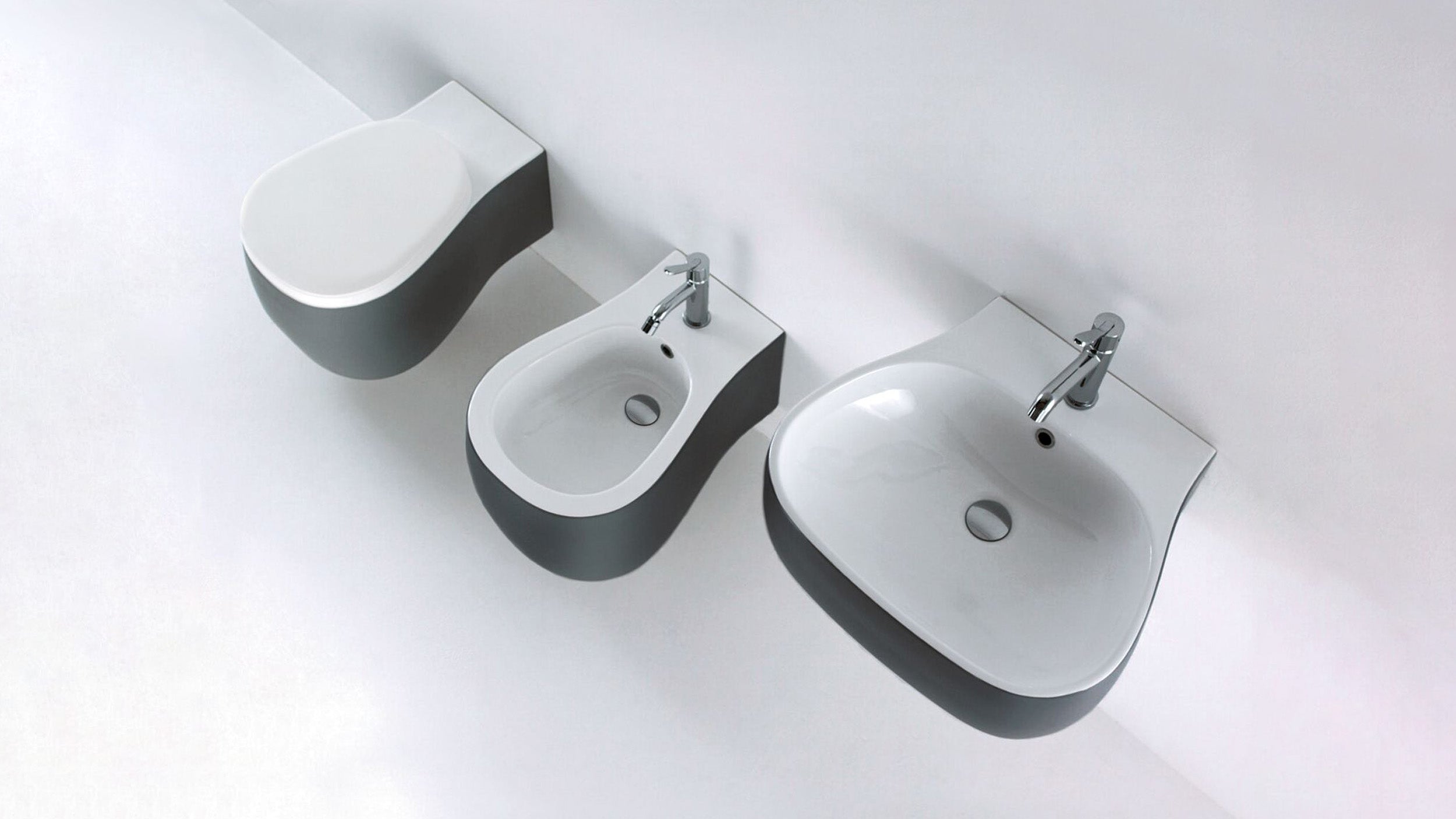 De una sutil escultural forma, la nueva colección de baño Pear de Patricia Urquiola para Agape añade una dimensión más suave a los sanitarios modernos. La bañera, con una forma sorprendentemente moderna, es muy accesible. Sus superficies táctiles transmiten serenidad y armonía. Está disponible en blanco, piedra gris y una versión bicolor con una superficie exterior gris satinada.