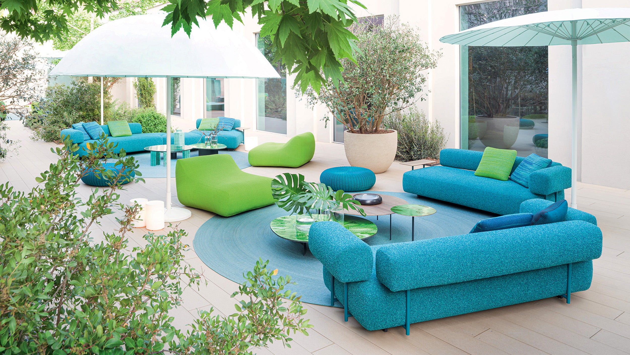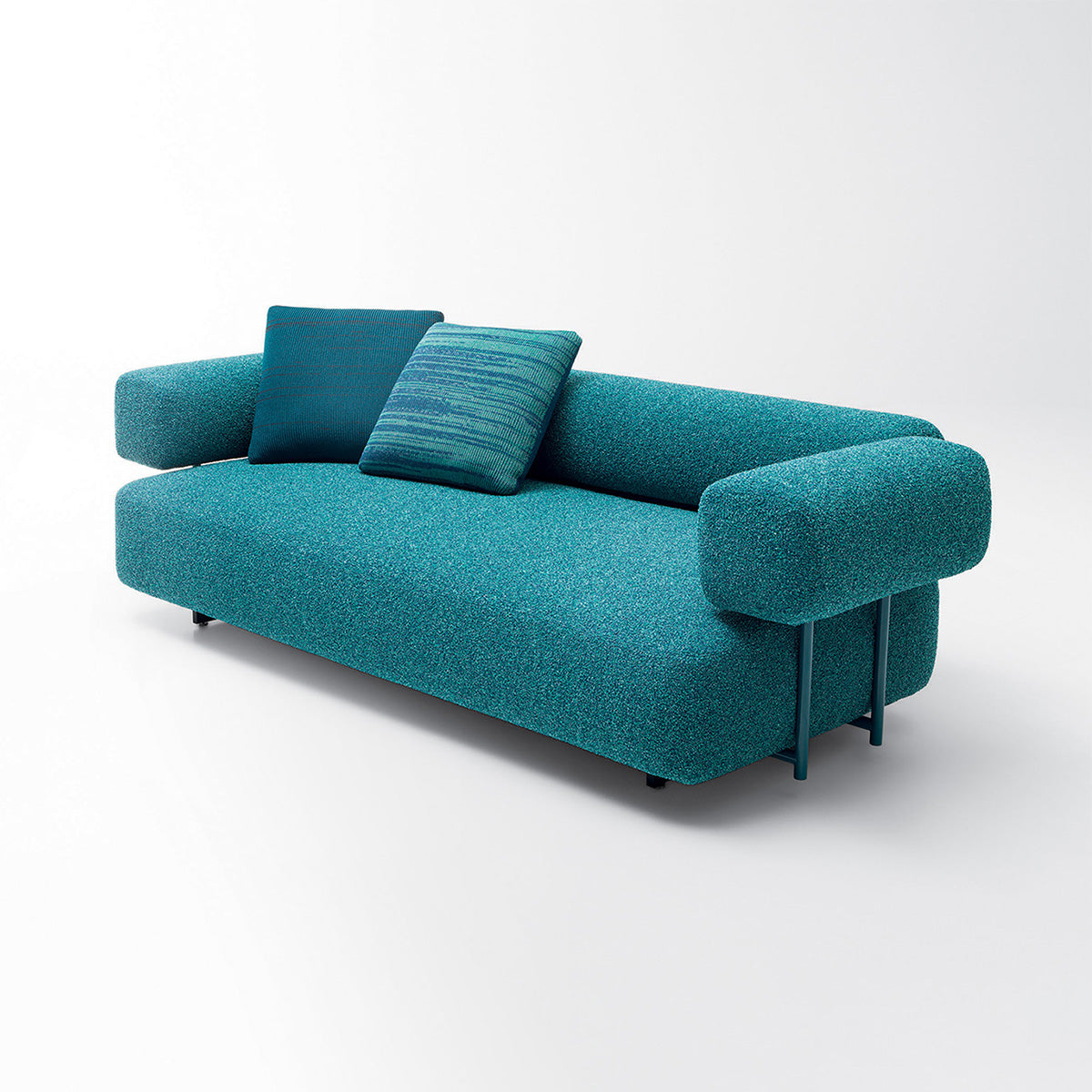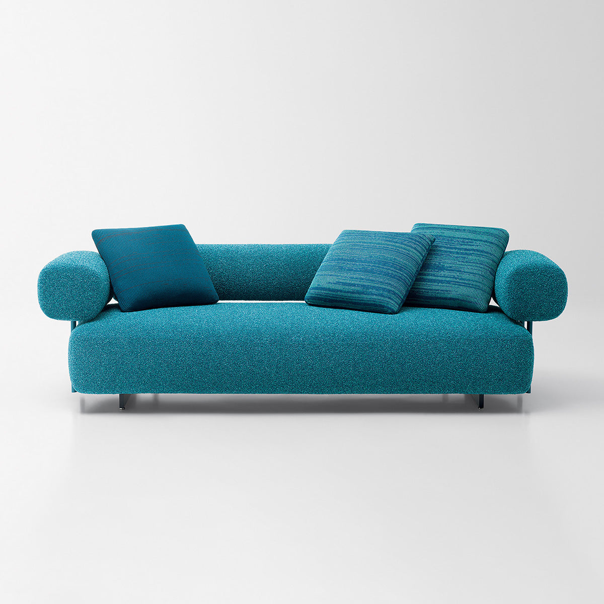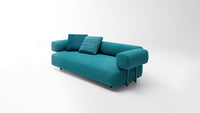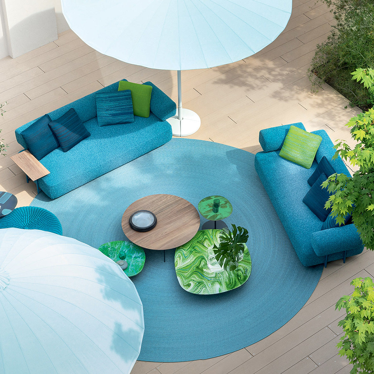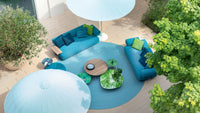 The Santorini Outdoor Sofa, designed by Francesco Rota for Paola Lenti, features a series of modular elements available as two- or three-seaters, along with a shaped platform and pouf. These components combine flexibly to form dynamic arrangements with varying angles, easily adapted to your space. The unshaped seating unit B236E can be enhanced with backrests, armrests, and side tables to create either a three-seater sofa or an expansive chaise longue. Crafted with cataphoresis-treated steel structure and stainless steel sled bases in refined avorio or grafite finishes, it offers durable comfort with biodegradable, waterproof upholstery options. Suitable for both outdoor and indoor settings.