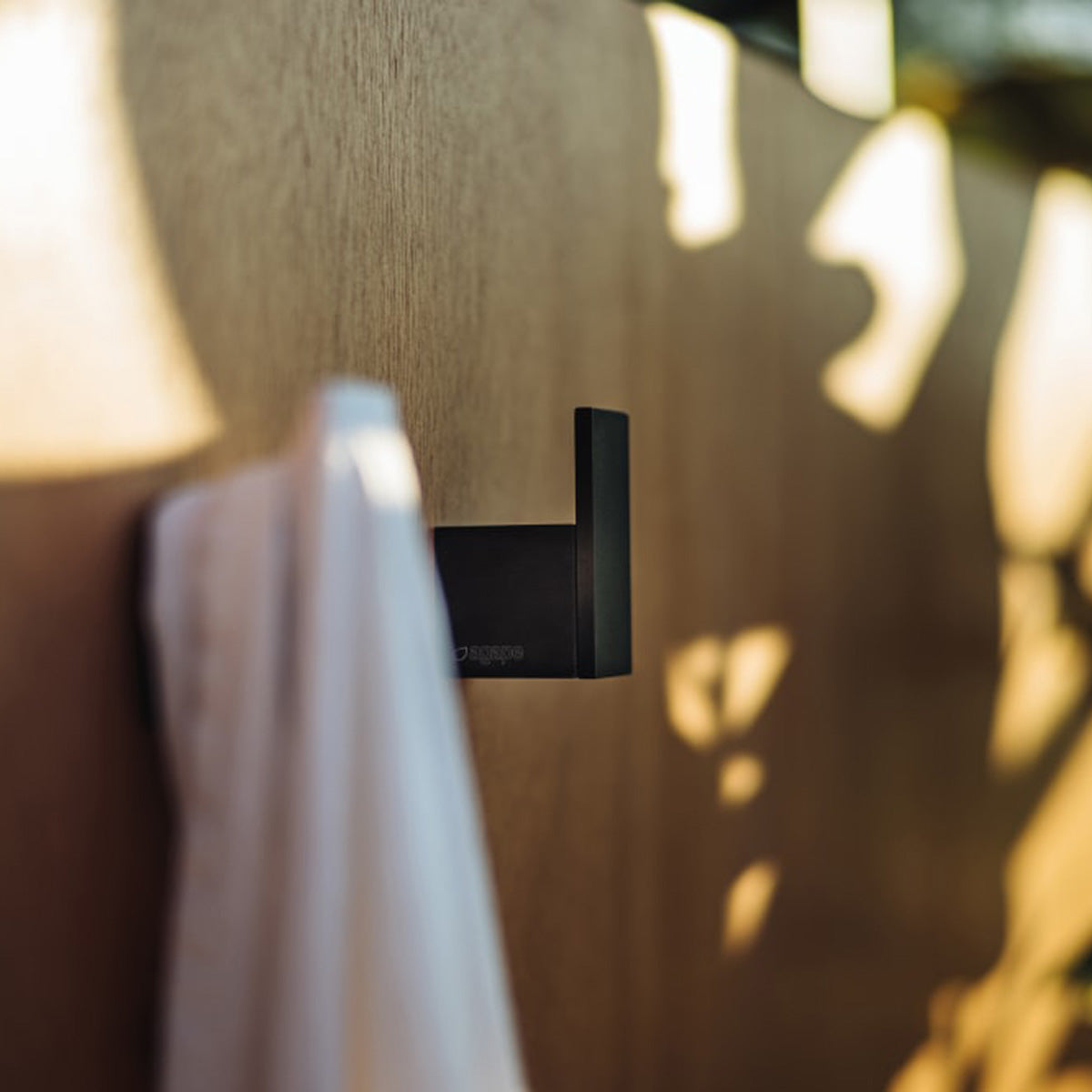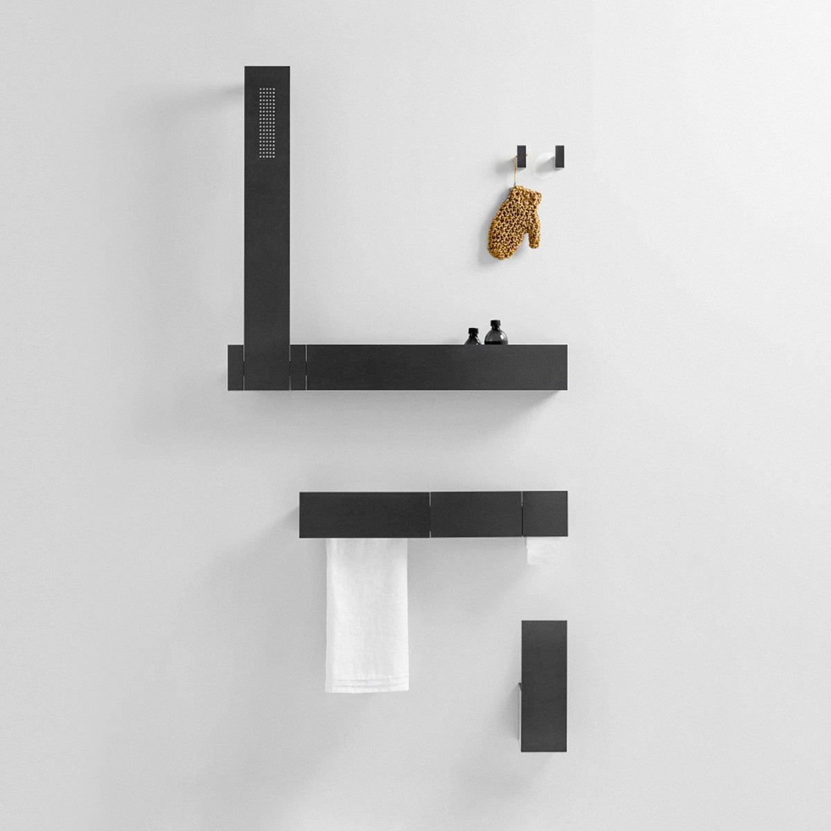 Los accesorios incluyen soportes para objetos pequeños de varios tamaños, un dispensador de jabón y un toallero. Ideal para bañeras, lavabos o sanitarios, Sen deja huella en cualquier espacio donde se instale.