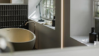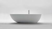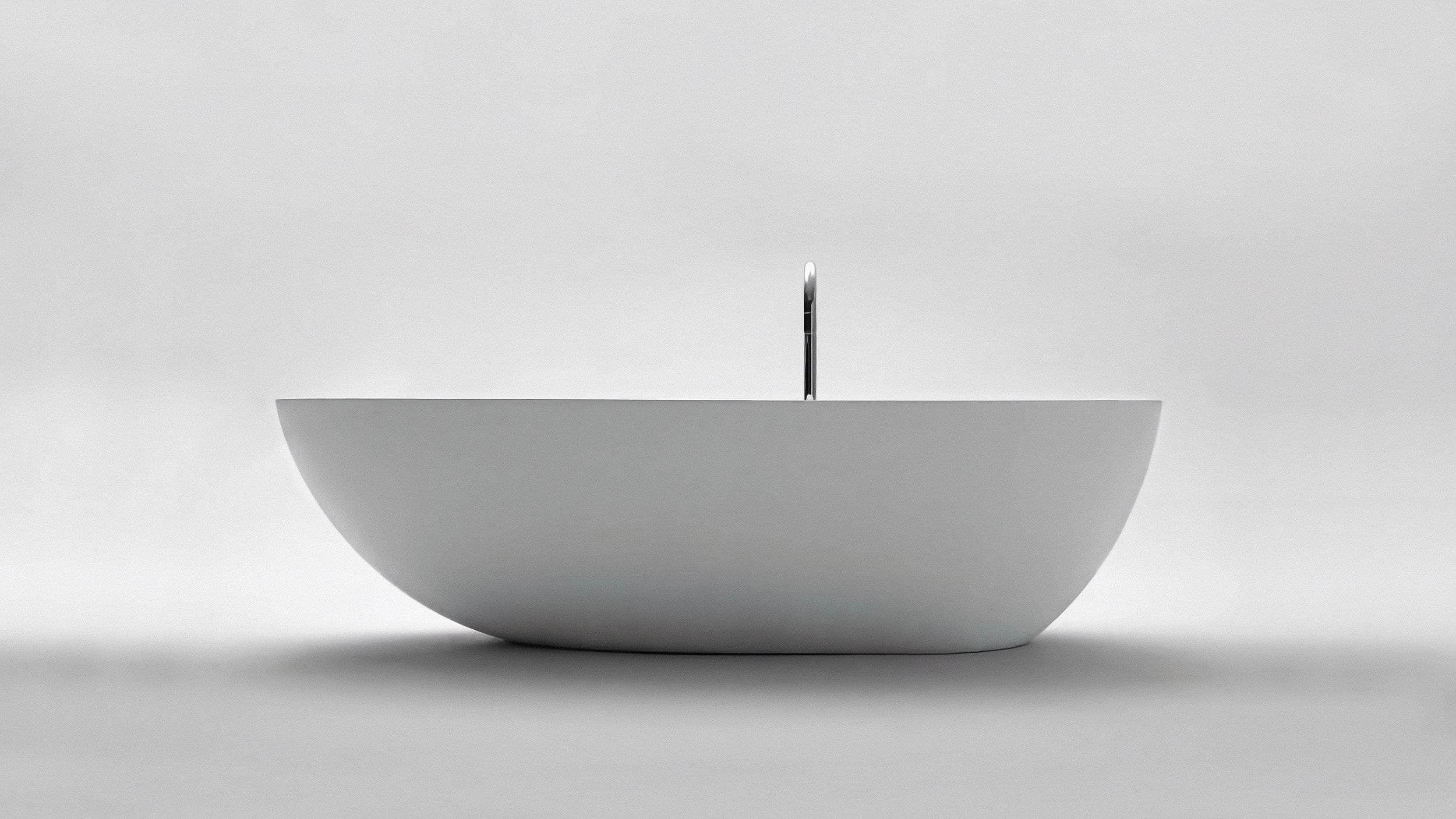 El baño reparador. Un buen baño relaja la mente y revitaliza el espíritu. ¿Qué mejor manera de hacerlo que en una bañera elegante y tranquila? Su perfil ergonómico y adaptable promueve un uso eficiente y lógico del agua. Moldeado en polvo de mármol aglomerado con resina.