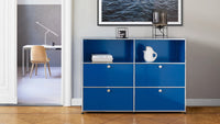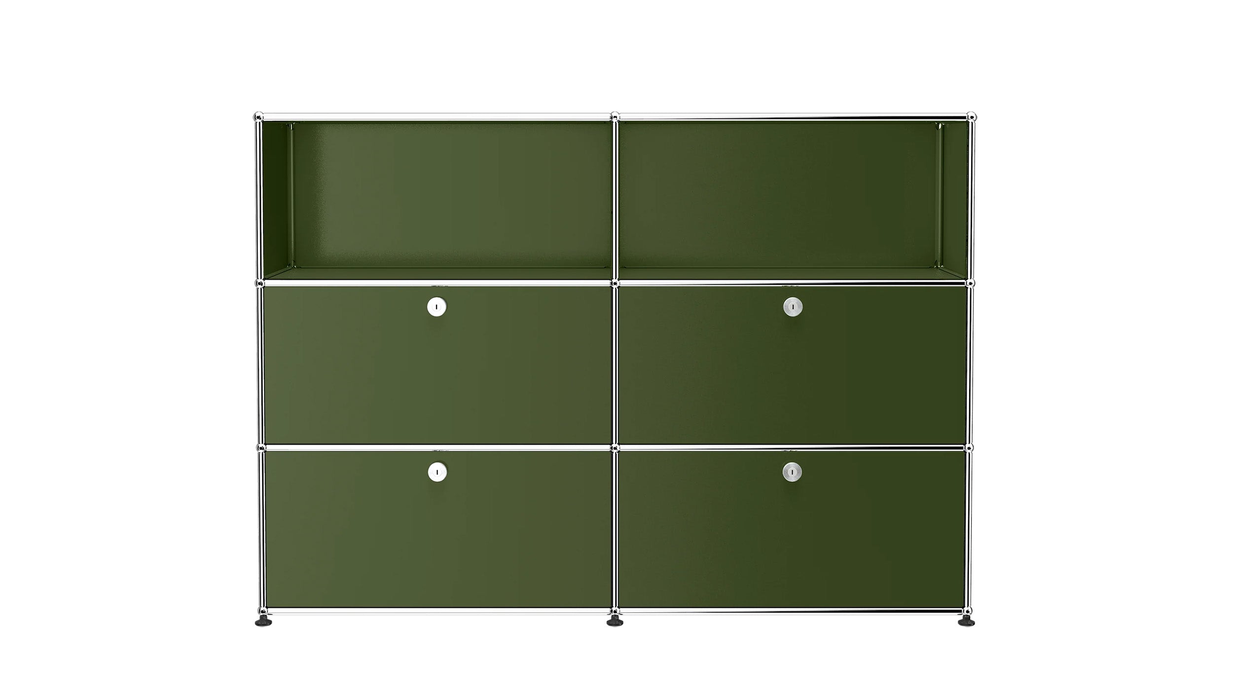 Storage (G2A) is a versatile multi-purpose storage unit with four 14-inch lockable drop-down doors arranged within a bold modular grid. Available in 7 standard surface colors, it offers a high degree of personalization while preserving the system's clean geometry.