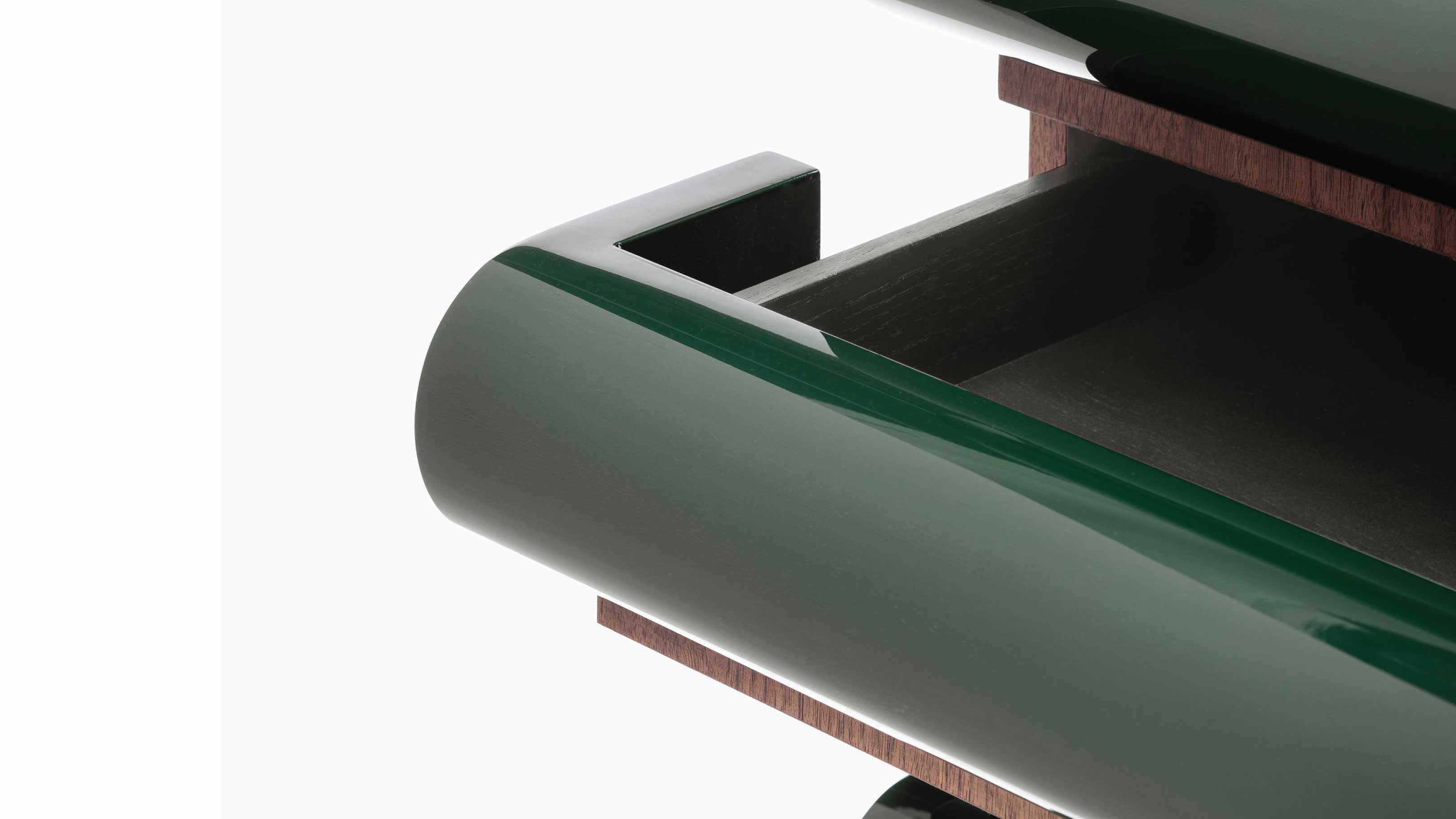El armario Storet, creación de la visionaria diseñadora Nanda Vigo, es una columna de cajones llena de vida y dinamismo. Está disponible en una versión vertical alargada, así como en una versión de mesita de noche, que se produce por primera vez. El Storet demuestra la moderna experiencia de Acerbis en el uso de amplias superficies de madera, con la veta visible del nogal que resalta los avances en las técnicas de producción.