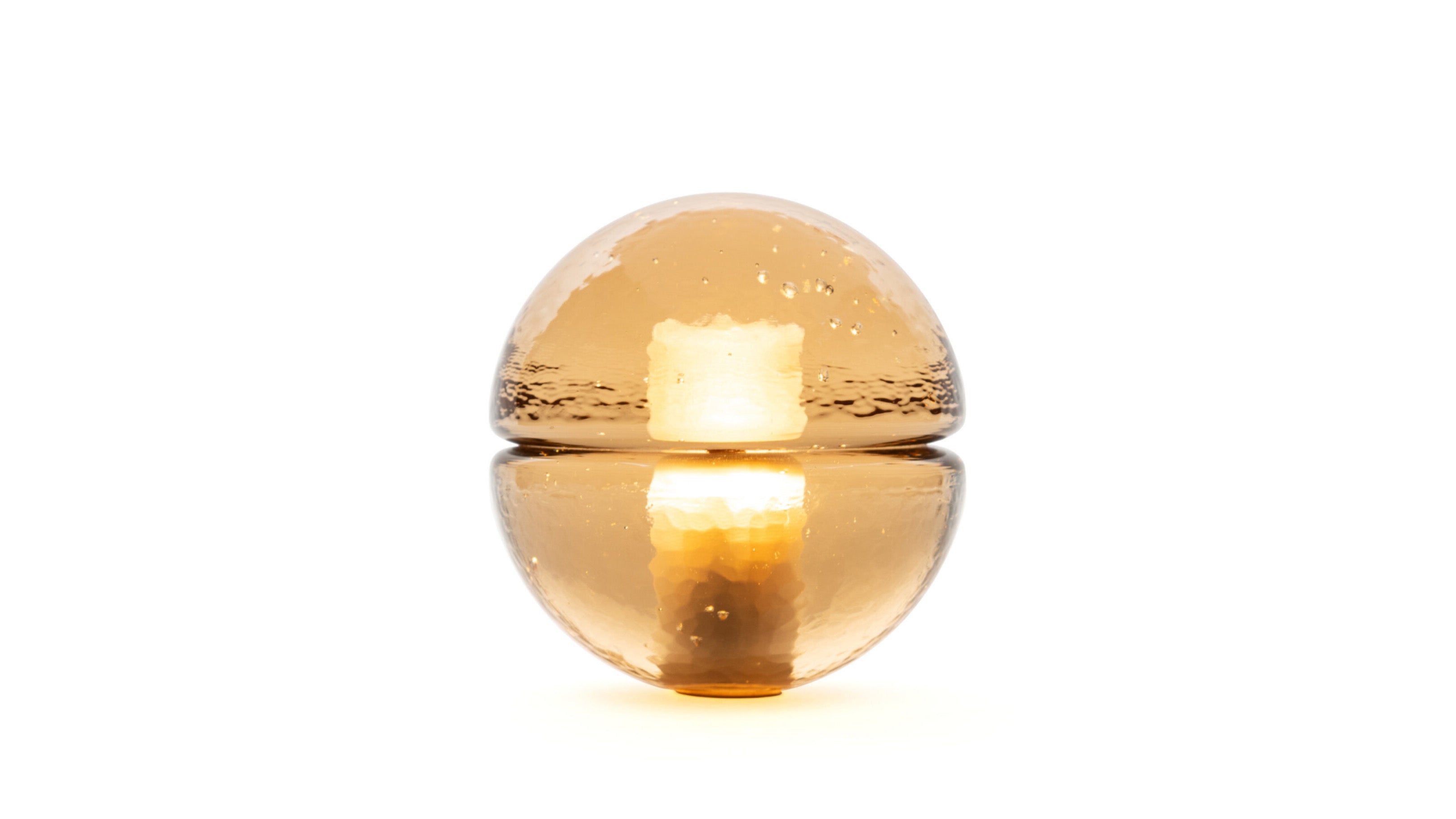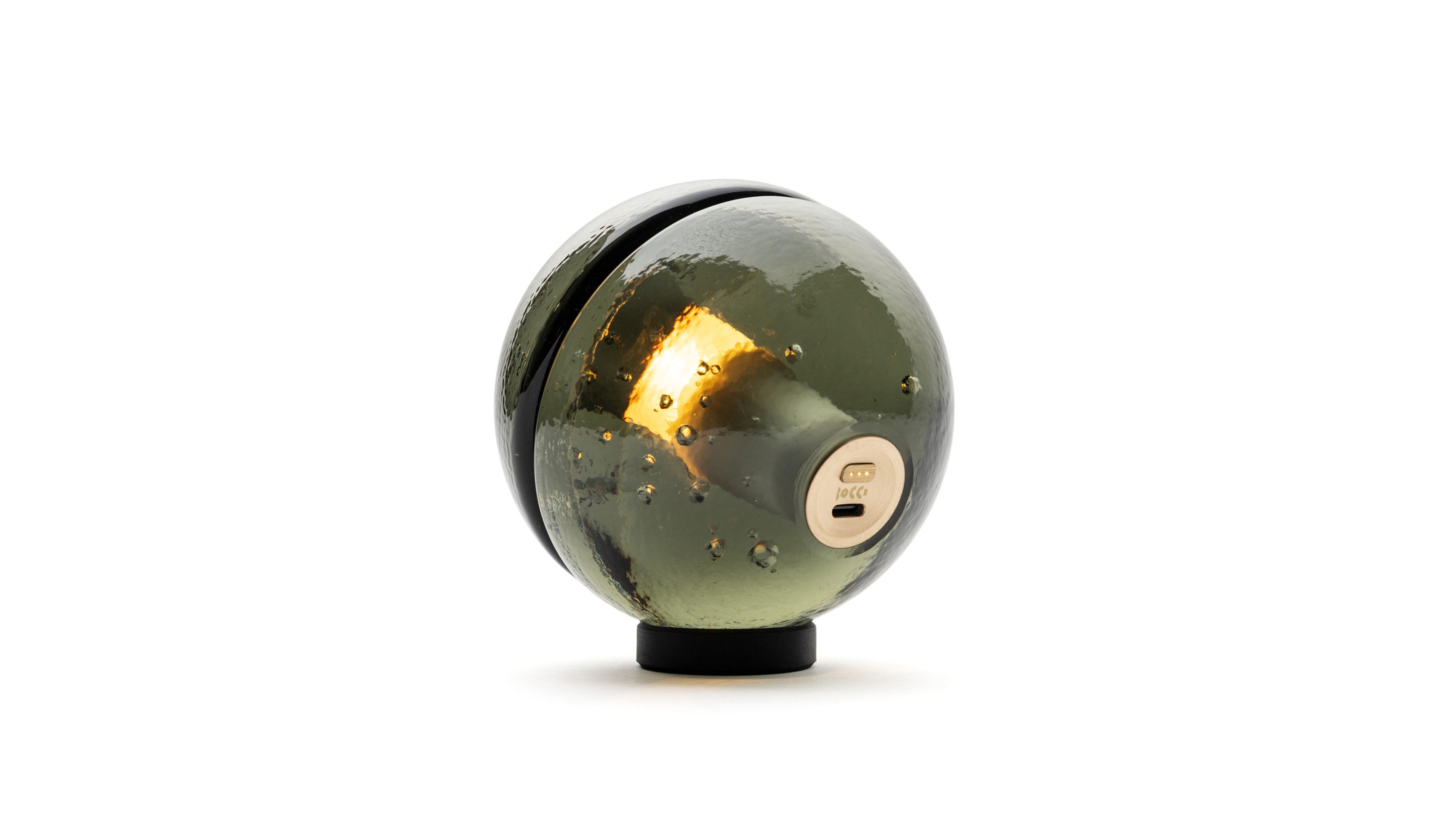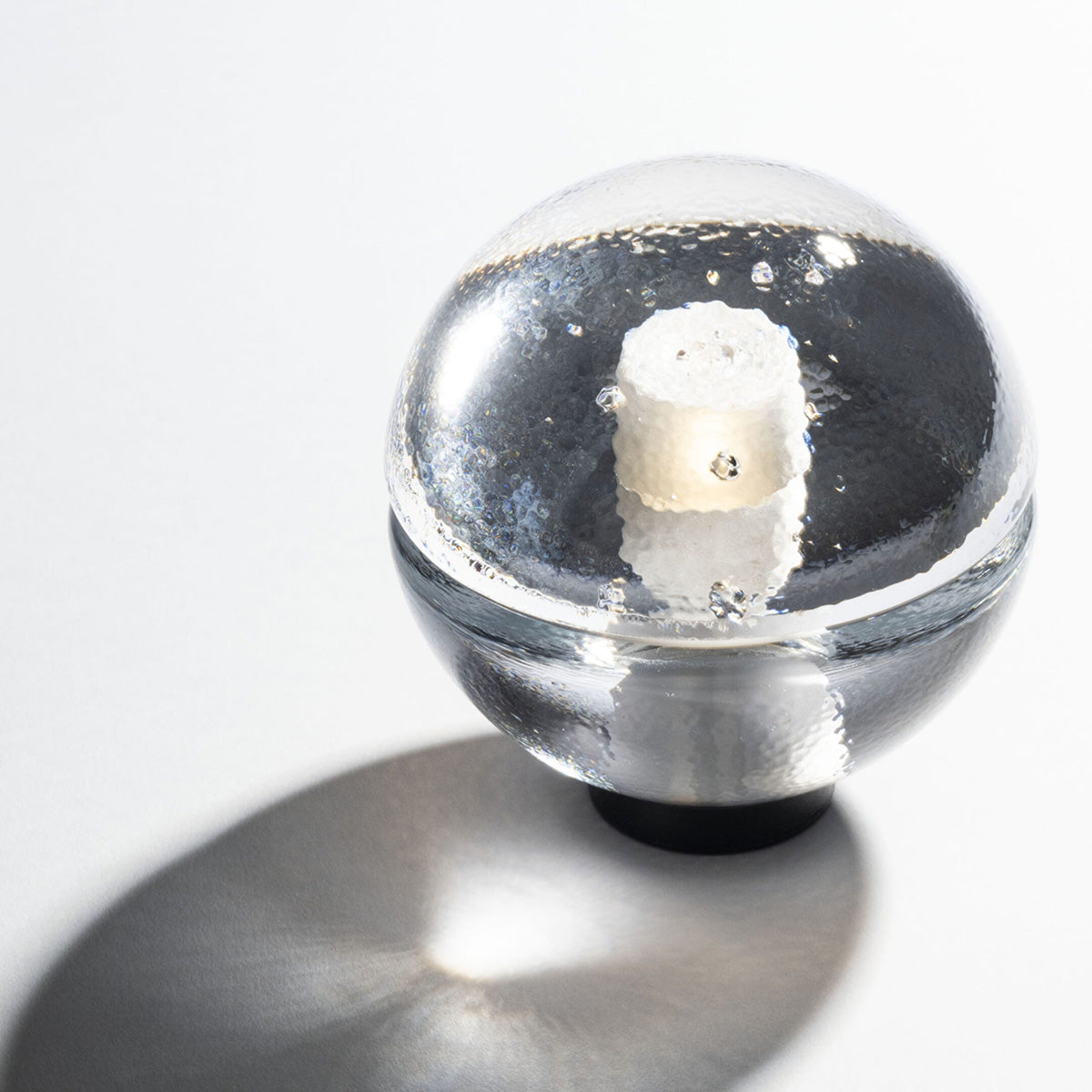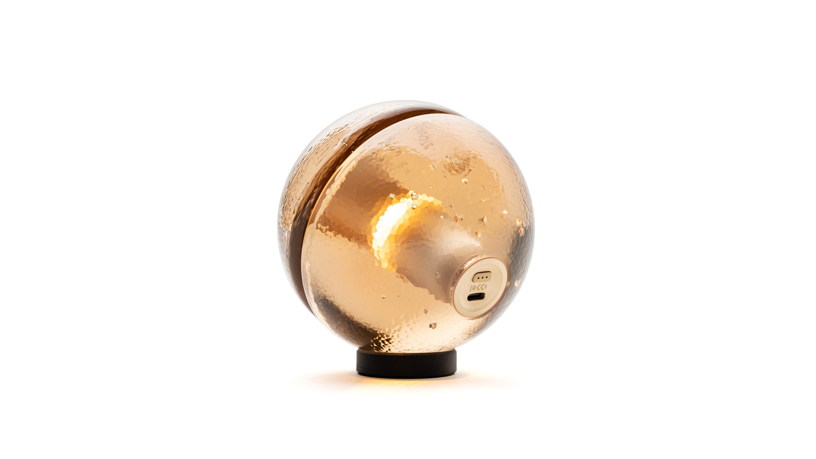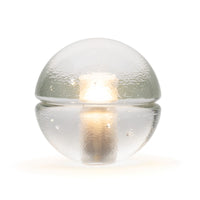 The 14p Portable Lamp, designed by Omer Arbel for Bocci, reimagines the brand's iconic 14 Series into a compact, wireless table light. Crafted from two cast-glass hemispheres, it emits a soft, rippling glow reminiscent of candlelight. With three touch-controlled brightness levels, the 14p offers customizable ambiance. Its rechargeable battery provides up to 80 hours of illumination on the lowest setting and fully charges via USB-C in just 45 minutes.