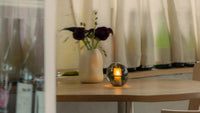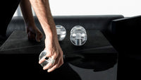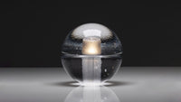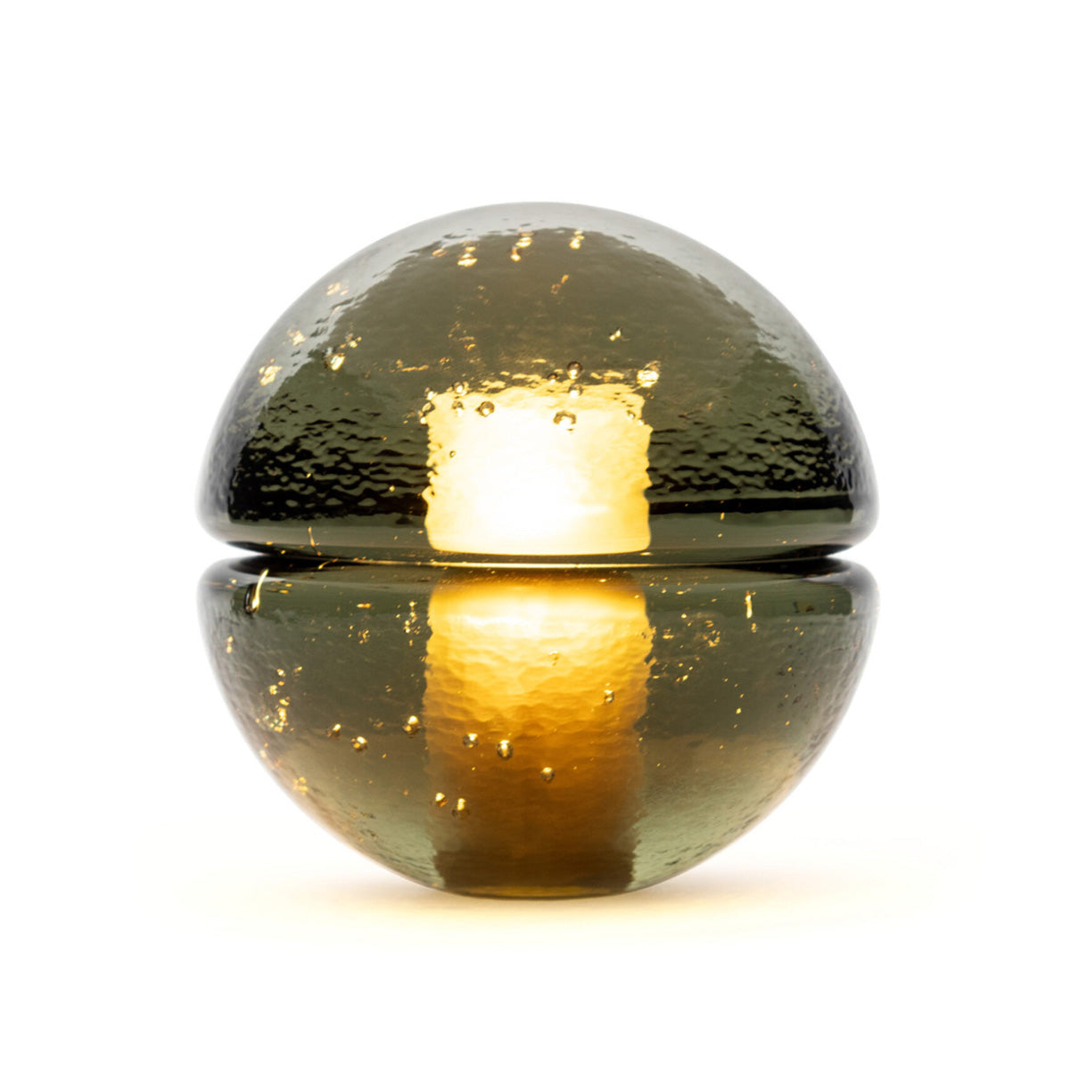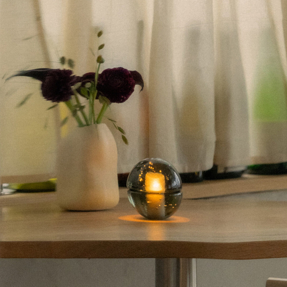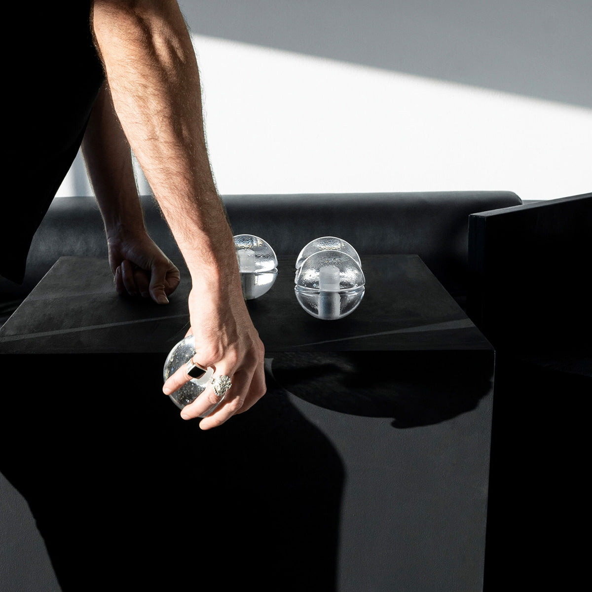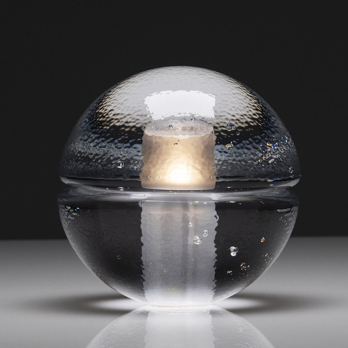 The 14p Portable Lamp, designed by Omer Arbel for Bocci, reimagines the brand's iconic 14 Series into a compact, wireless table light. Crafted from two cast-glass hemispheres, it emits a soft, rippling glow reminiscent of candlelight. With three touch-controlled brightness levels, the 14p offers customizable ambiance. Its rechargeable battery provides up to 80 hours of illumination on the lowest setting and fully charges via USB-C in just 45 minutes.