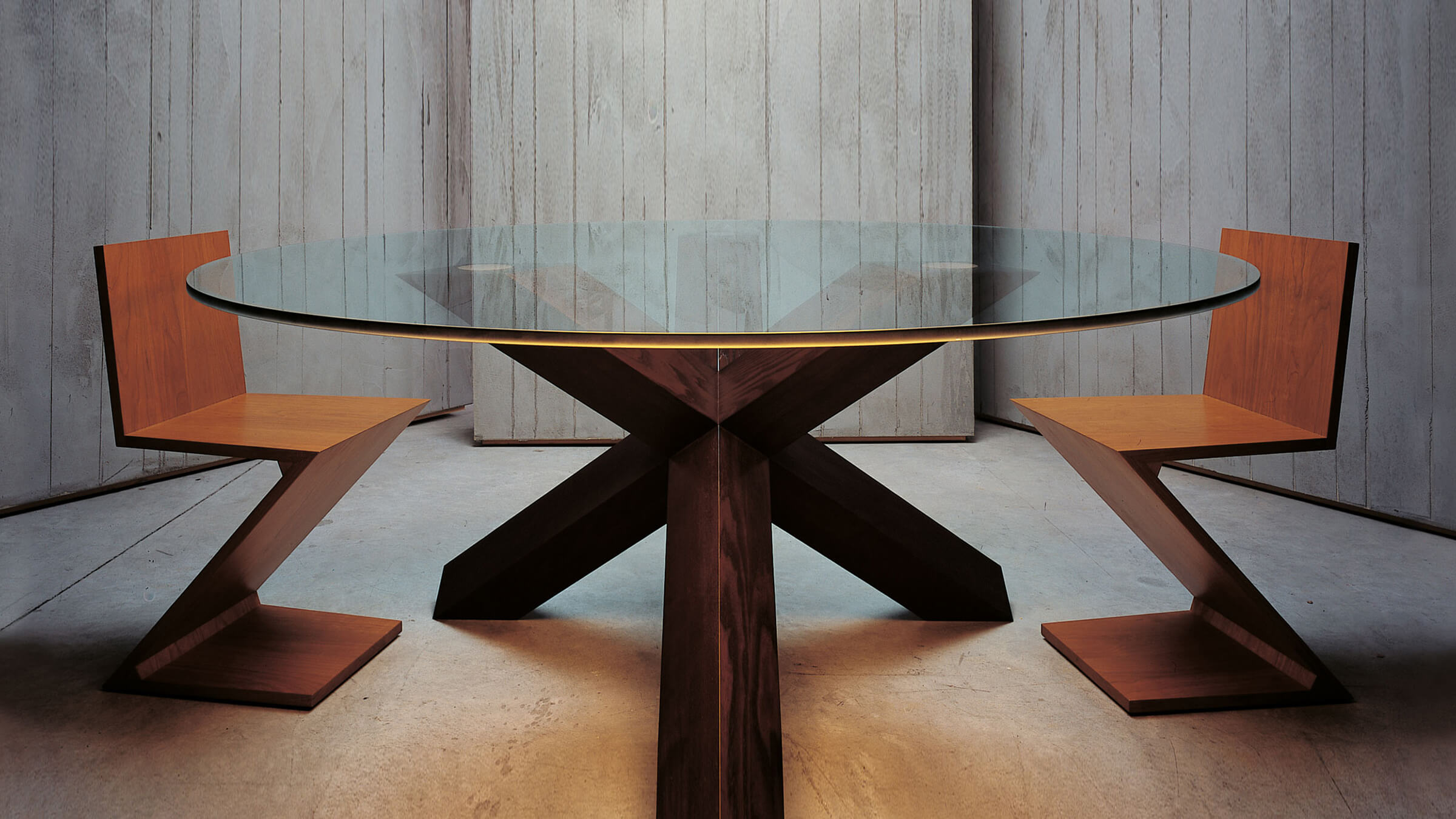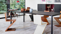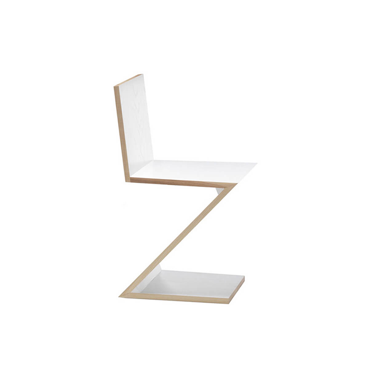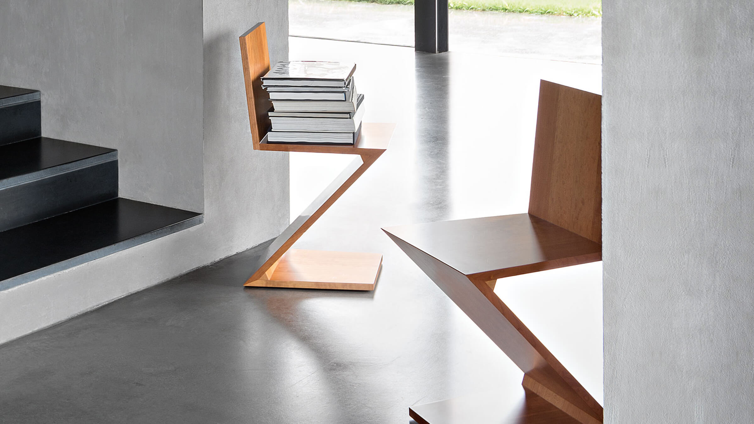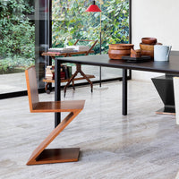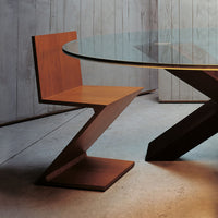 Designed by Gerrit Rietveld in 1934, the Zig Zag Chair by Cassina reduces the archetypal silhouette of the chair to a single sheet of wood in an overturned Z shape. It was also one of the first examples of a cantilevered seat.