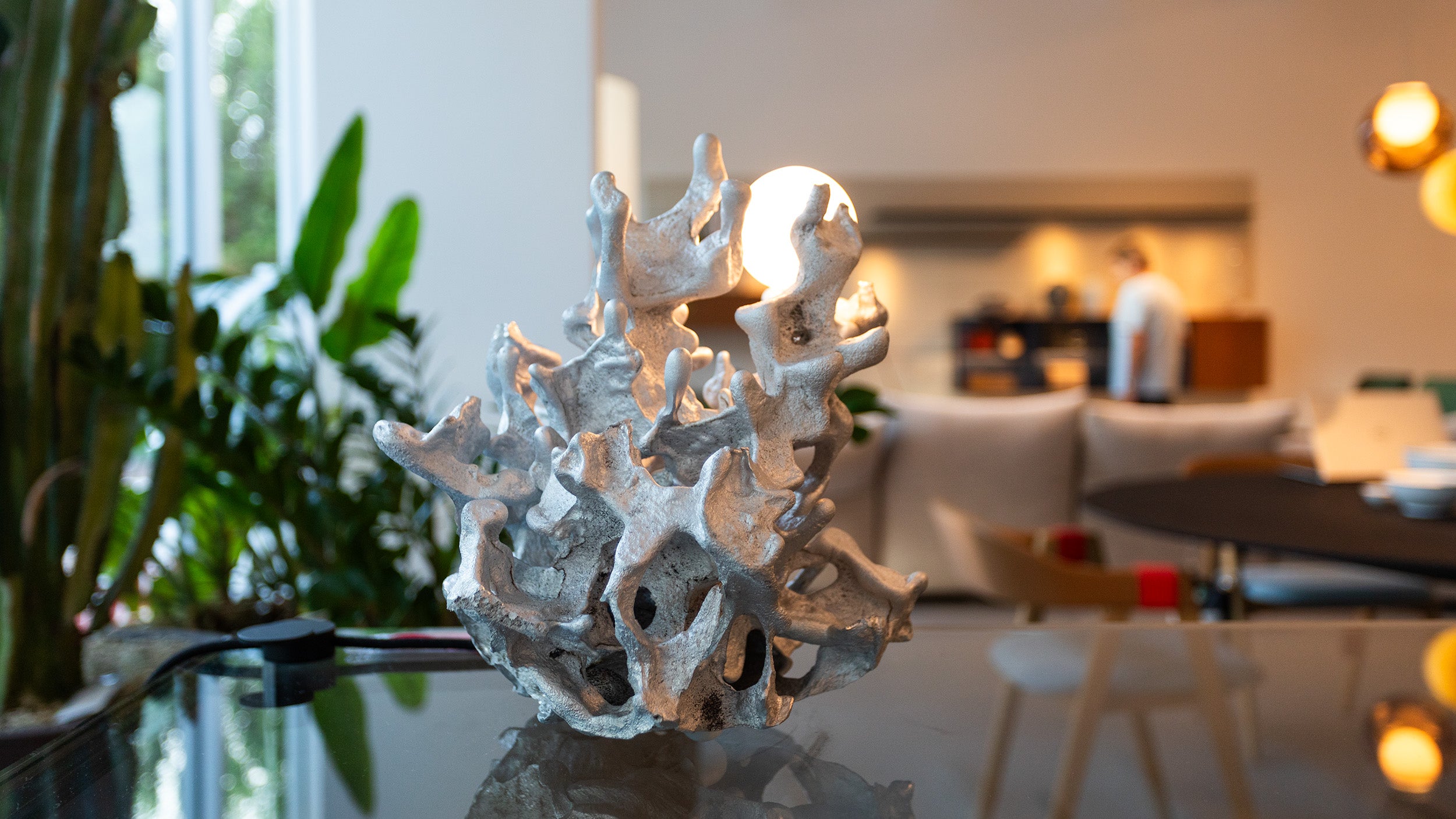 - Designed to function as both a light source and a sculptural centerpiece