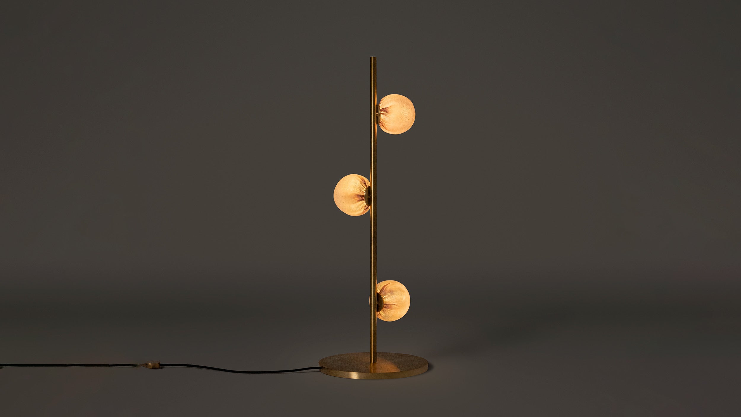 The 84.3 Stem Floor Lamp Short designed by Omer Arbel for Bocci is a striking floor luminaire that fuses sculptural precision with glass-based warmth. Three hand-blown pendants rest atop a short steel stem, each glowing softly within textured form while the base anchors the composition with quiet elegance. Available in black powder-coat or brass finish, the lamp becomes both architectural element and glowing object of contemplation. Its subtle presence invites steady light and meditative calm at floor level.
