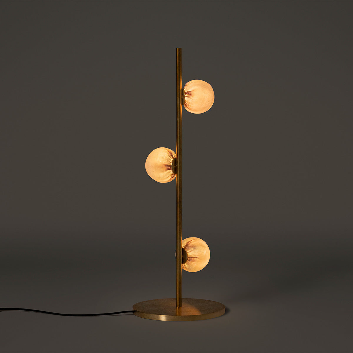 - Comprises three hand-blown glass pendants mounted on a stem (short version)