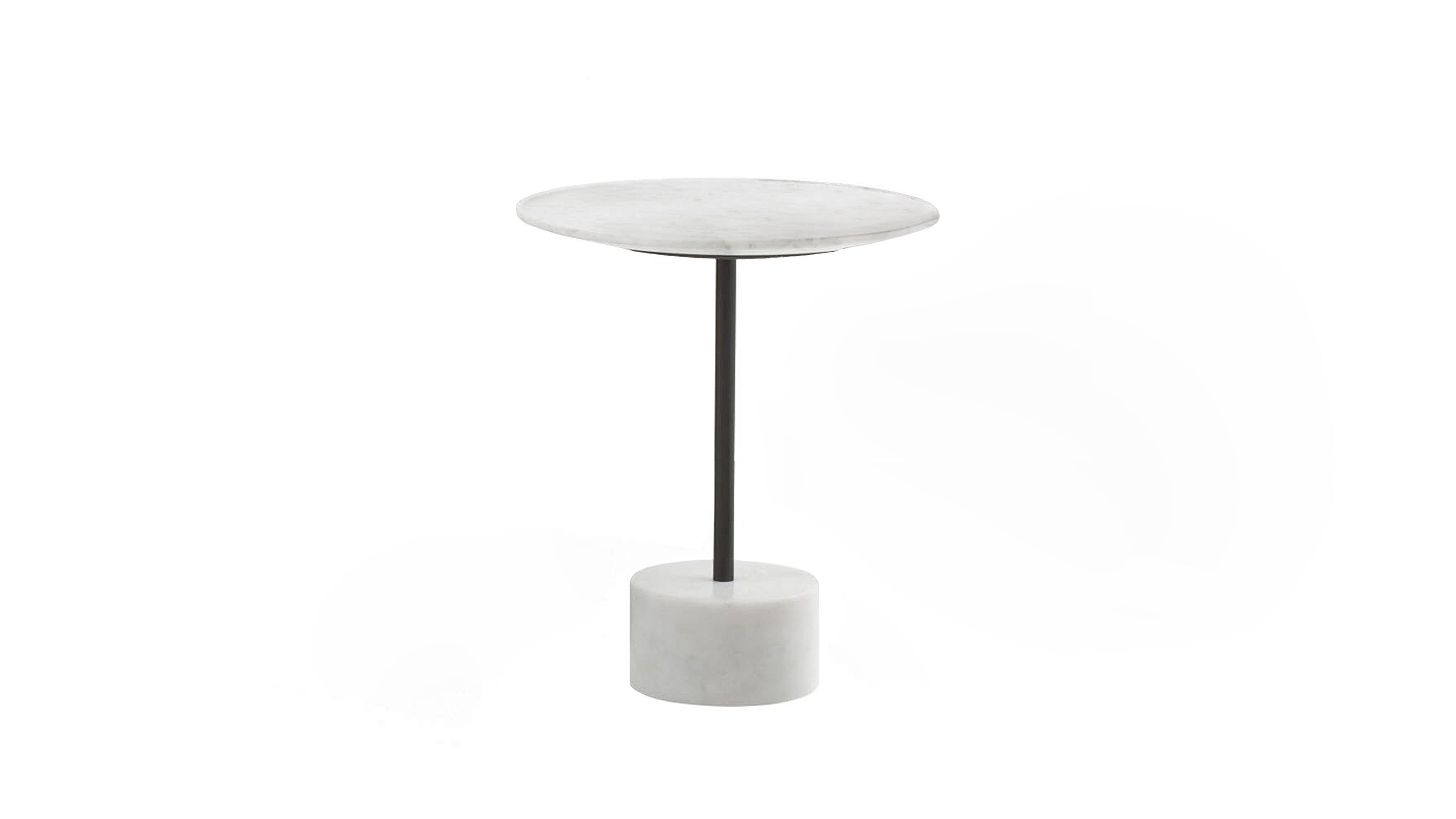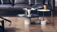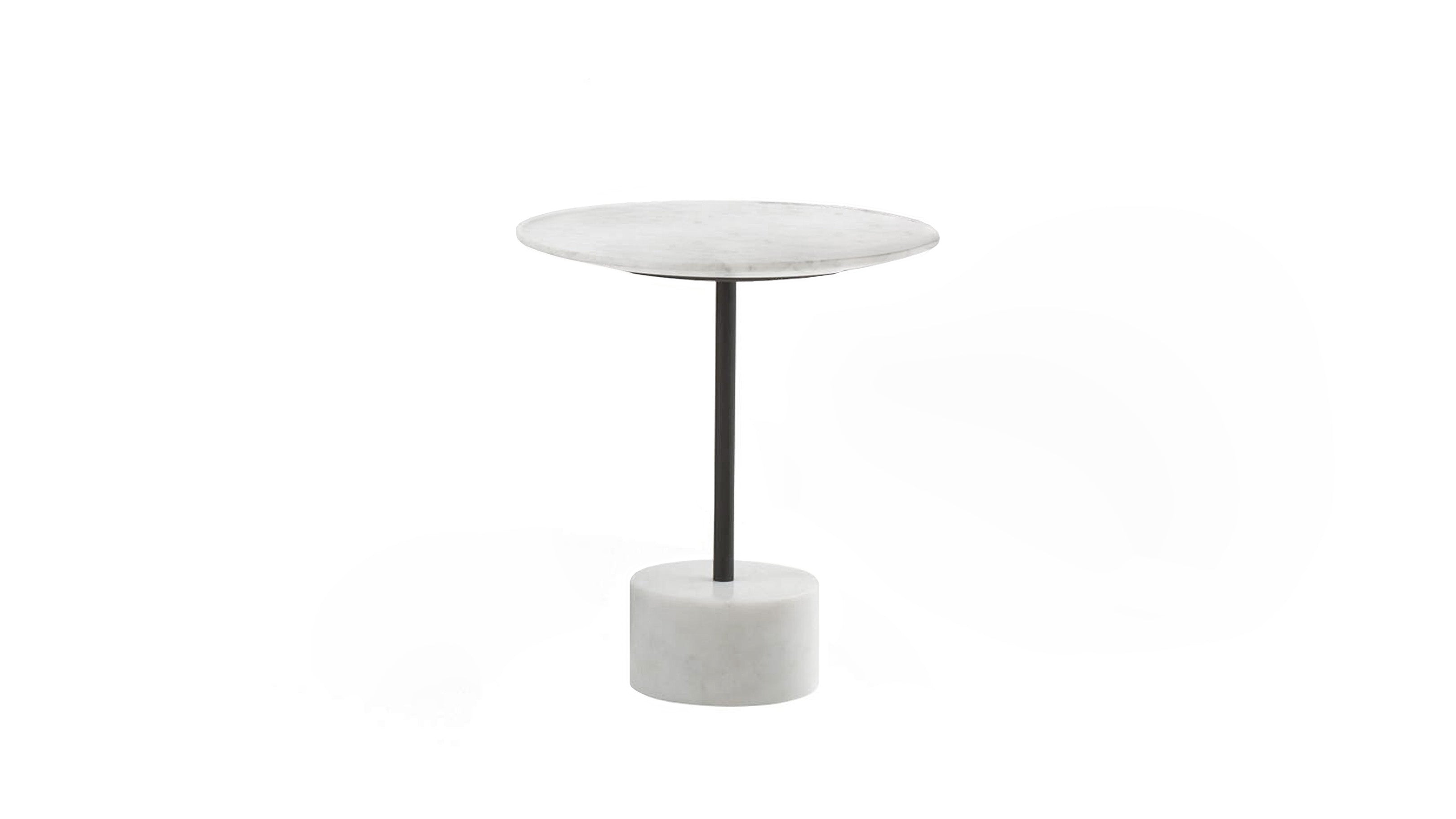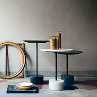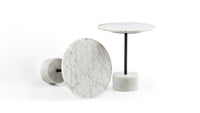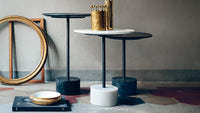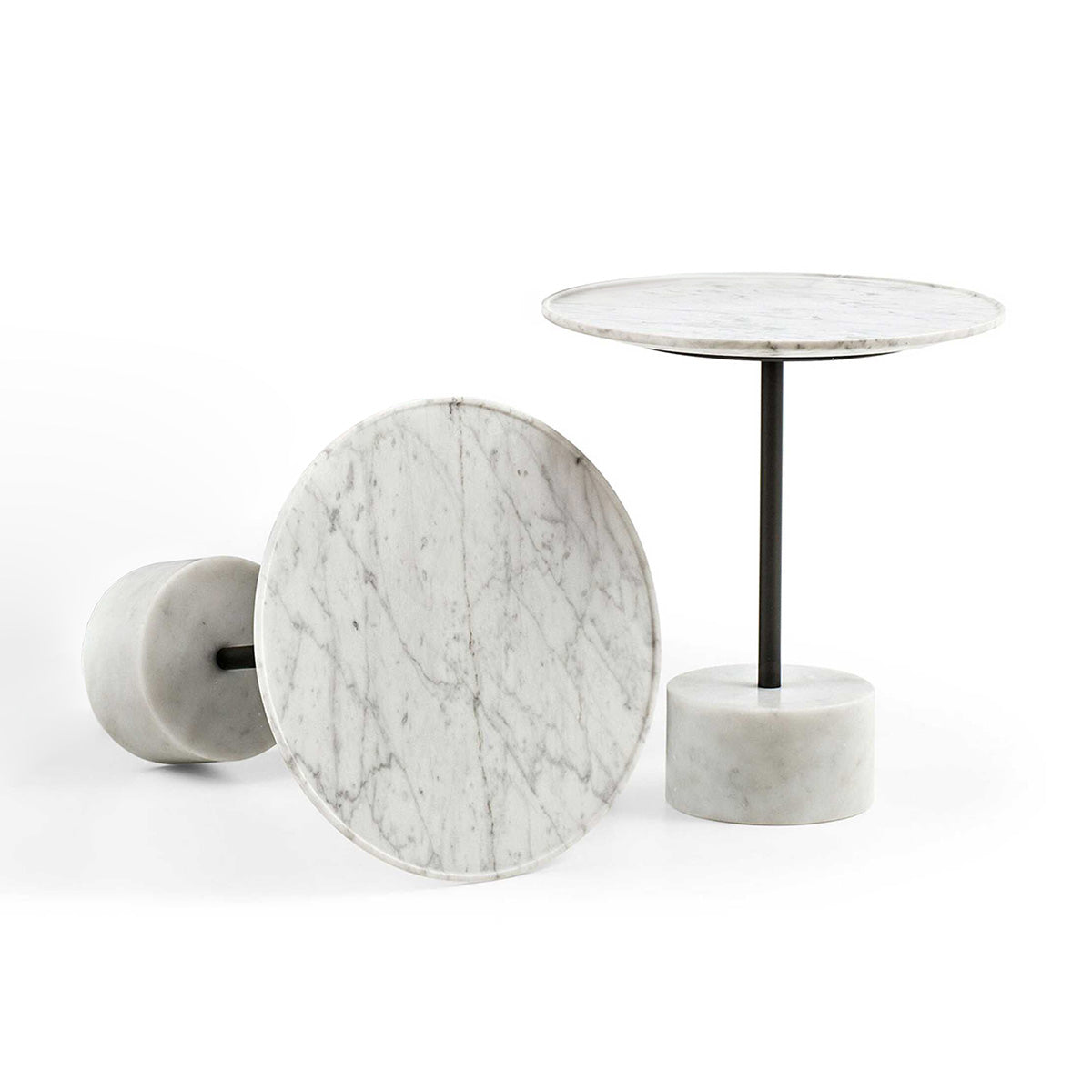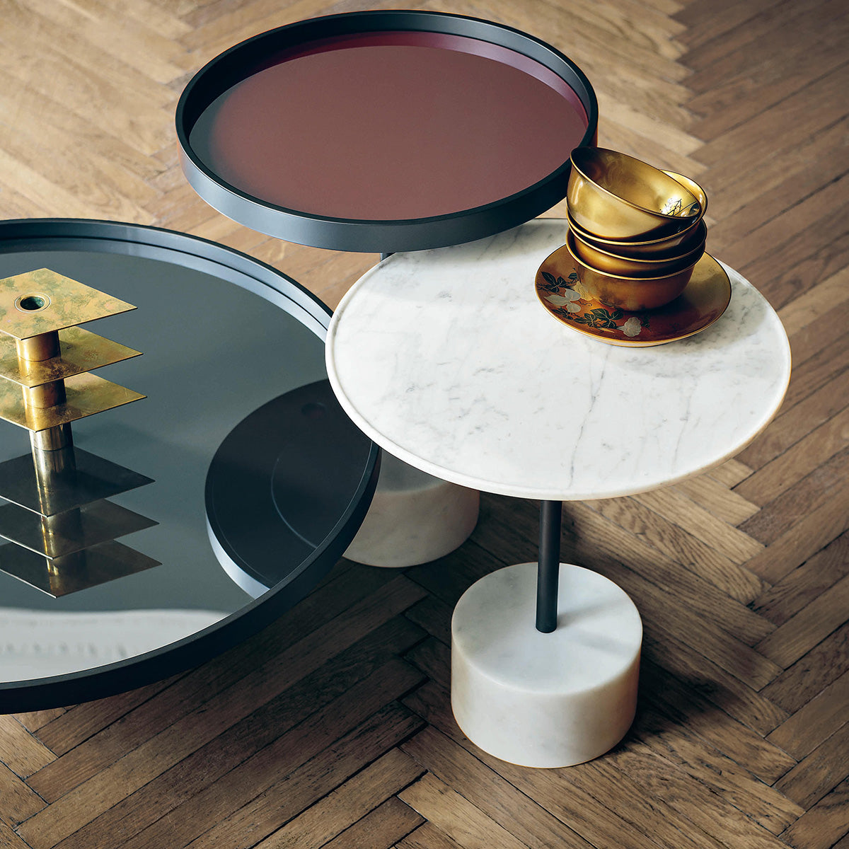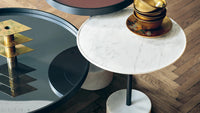 In the 9 Round Side Table made by Cassina, Italian designer Piero Lissoni showcases his mastery of proportion and form and his sophisticated understanding of materiality. The circular tables, anchored by a cylindrical base in marble, feature a slender metal pole that supports a Carrara marble top. The 9 Round Side Table transforms the noble material into a thoroughly modern object that effortlessly adapts to various interior styles.