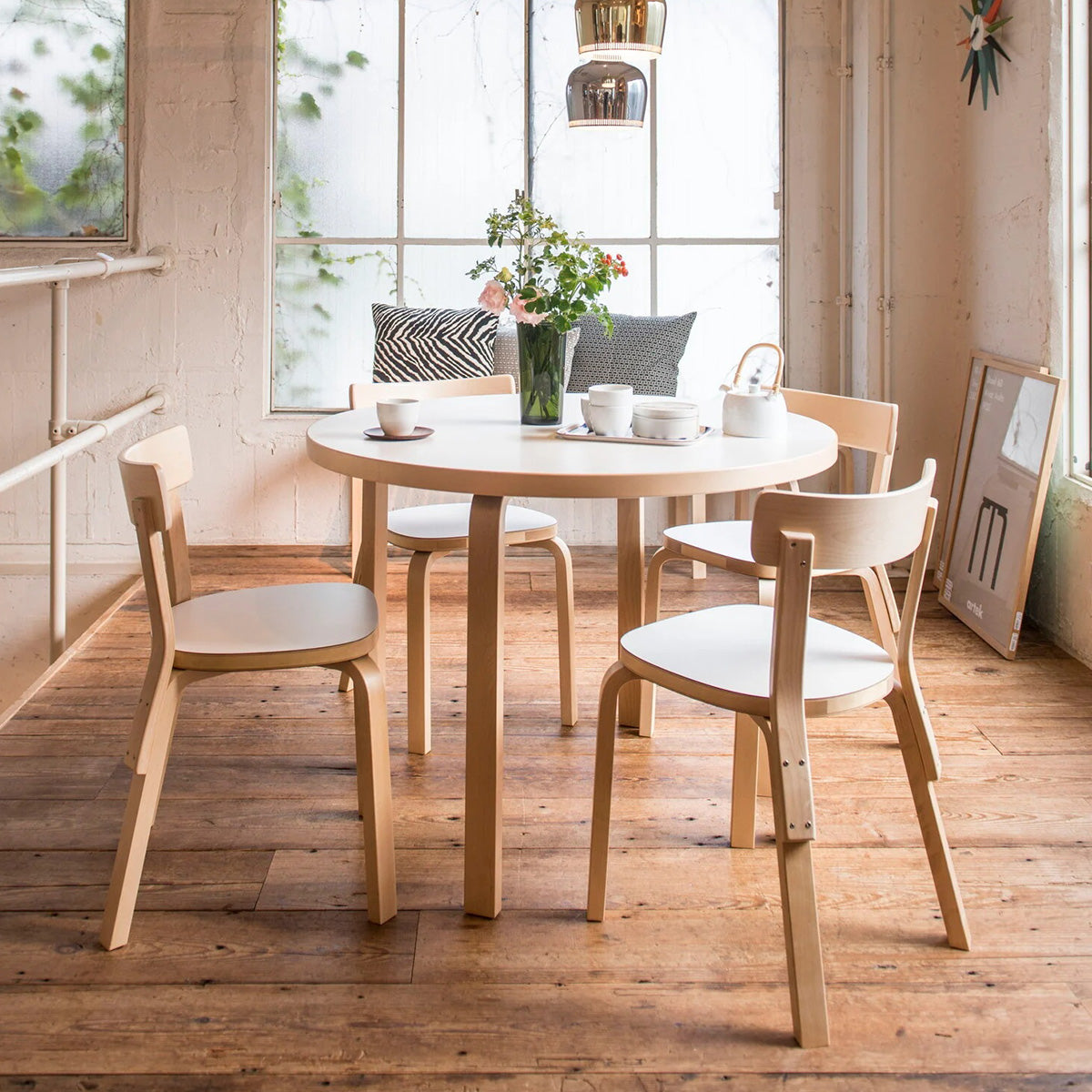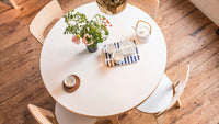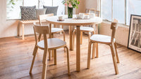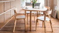 The Aalto Table 90A is a graceful expression of form and function, featuring Alvar Aalto’s iconic bent L-leg construction that balances elegance with structural integrity. Crafted from warm Finnish birch, its round top invites conversation and creativity around its gently organic presence. Offered with surfaces in natural veneer, robust linoleum, or easy-care laminate, it adapts beautifully to both everyday meals and design-focused spaces. A timeless fusion of minimalist poise and architectural ingenuity, it honors Aalto’s vision for accessible modernism.