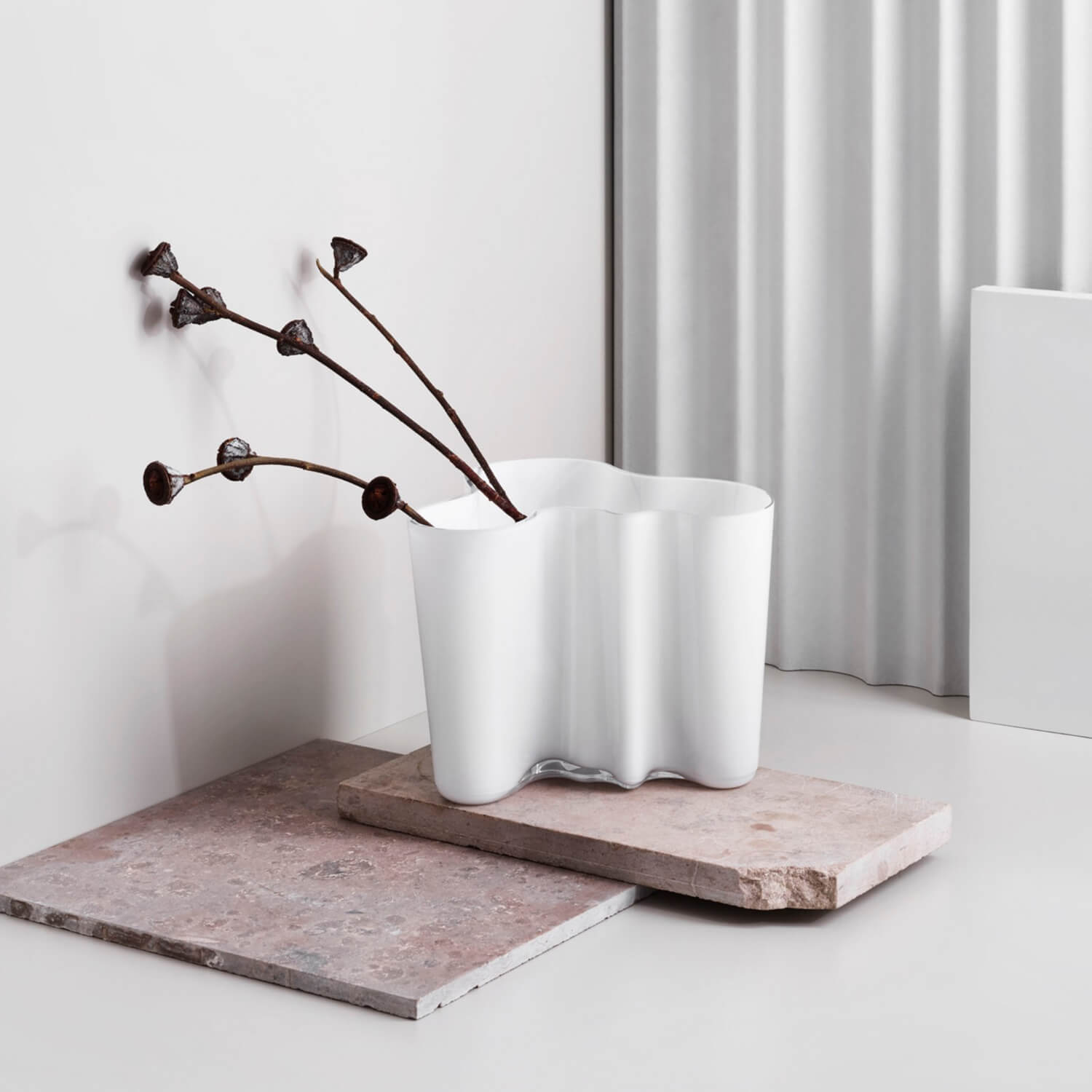 In 1936, Alvar Aalto’s series of glass vases won first prize in the 1936 Karhula-Iittala Glass Design Competition. Compared to the decorative objects of the time, the simple yet organic shape of this vase was a revolutionary statement. Inspired by waves (“aalto” in Finnish) in the water, the vase is a symbol of Finnish design and one of the most famous glass objects in the world. Each and every vase in the Alvar Aalto Collection continues to be mouth blown at the Iittala factory and comes in a wide range of colors and sizes. The Collection is a staple of modern Scandinavian design and Iittala’s most iconic series.