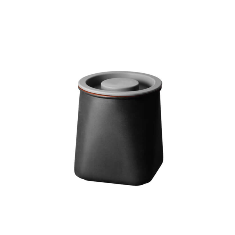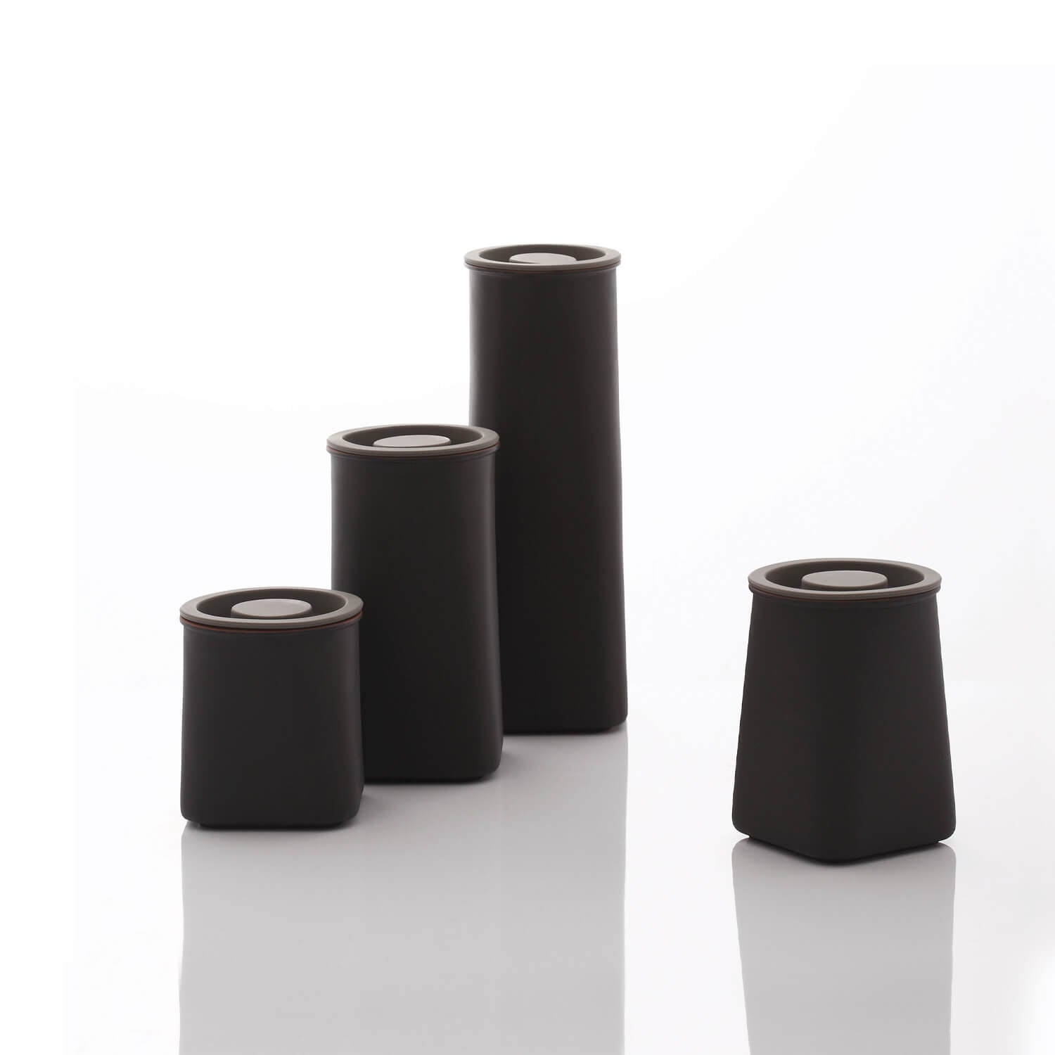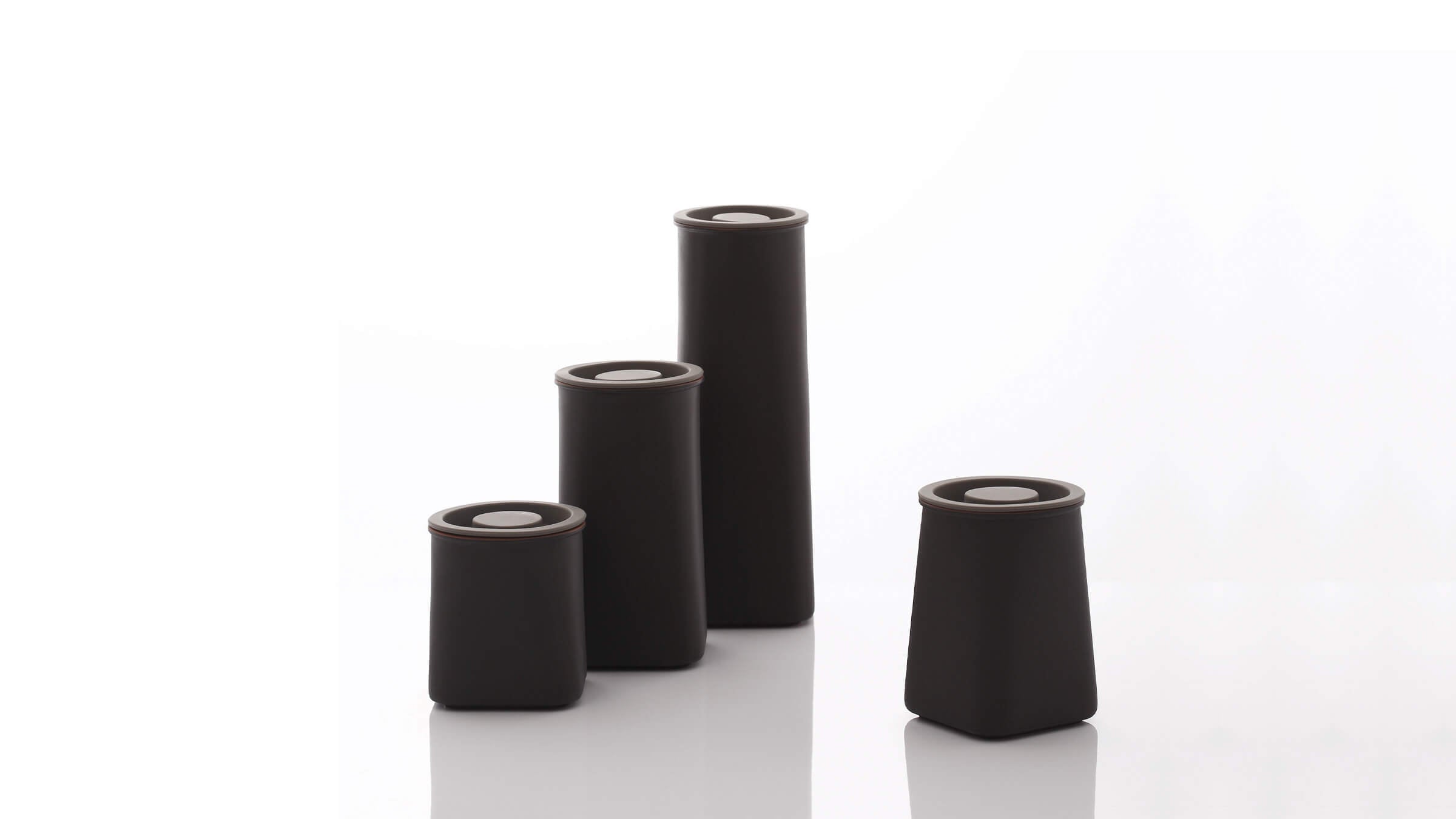 • The lid is made of silicone and contrasts the smoothness of the man-made material with the rawness of the natural canister