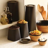 • Functional canisters provide additional storage on kitchen countertops and keep contents fresher for longer