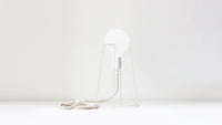 Resembling an enlarged version of a cork found in champagne bottles, the Agraffe Table Lamp is an elegant addition to your modern home. Made in collaboration with Italian artisans, the lamp is designed by a young Milan based designer named Giulia Agnoletto. The simple lamp is characterized for its metal structure and visual contrasts such as its fabric cord. The white bulb creates a beautiful and atmospheric environment.