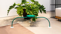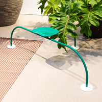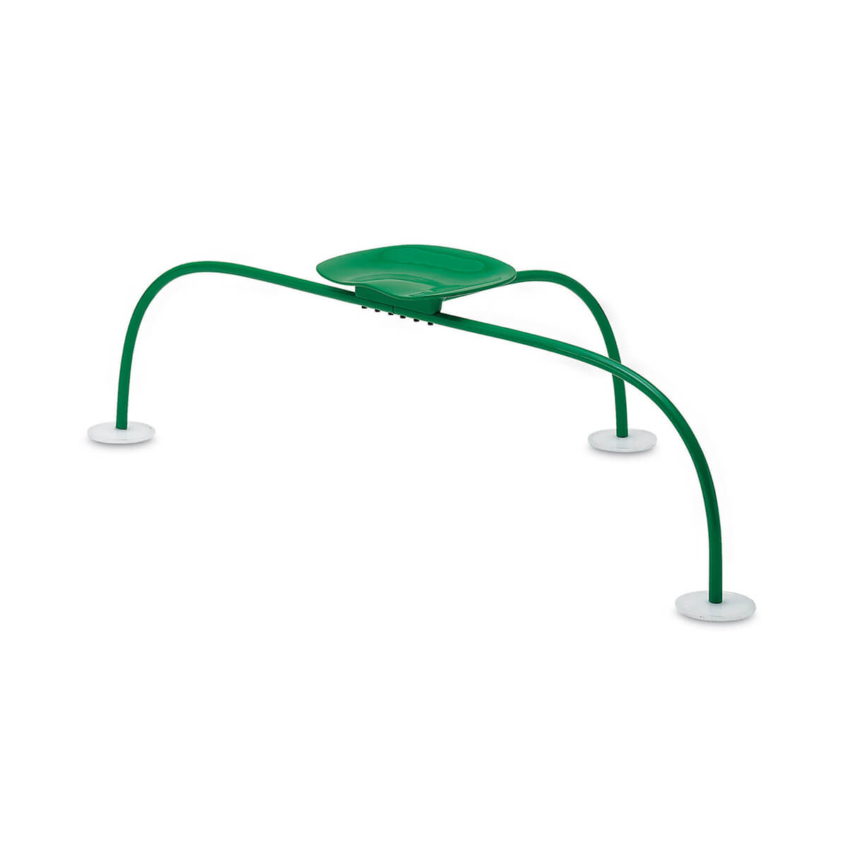 Unequalled in the history of design, the Allunagio by the legendary Castiglioni brothers first arrived on the scene in 1965, and with three thin legs branching away from the seat in a cadence of otherworldly repose, it looks as if it landed on earth from another planet, curious and unique. A word meaning “moon landing” in Italian, the Allunagio was meant to be just that – unearthly, eccentric, and novel, yet at the same time ergonomic and restful for moments spent in a garden or on a terrace. With steel legs and an aluminum alloy seat, both painted grass green, this intriguing stool is a durable and vibrant choice for your outdoor landscape, a piece of design history that is as visually arresting as it is functional.
