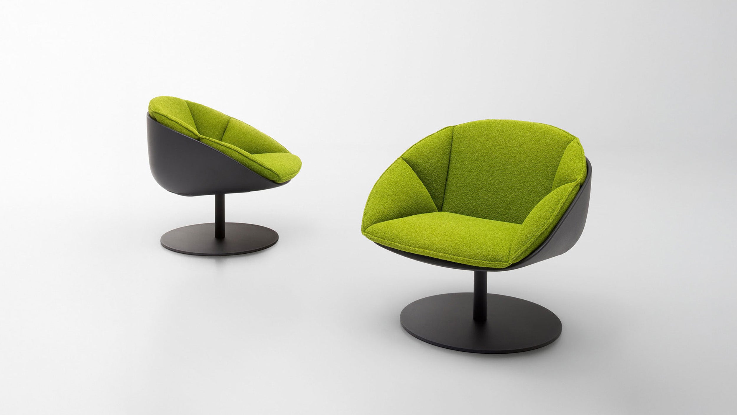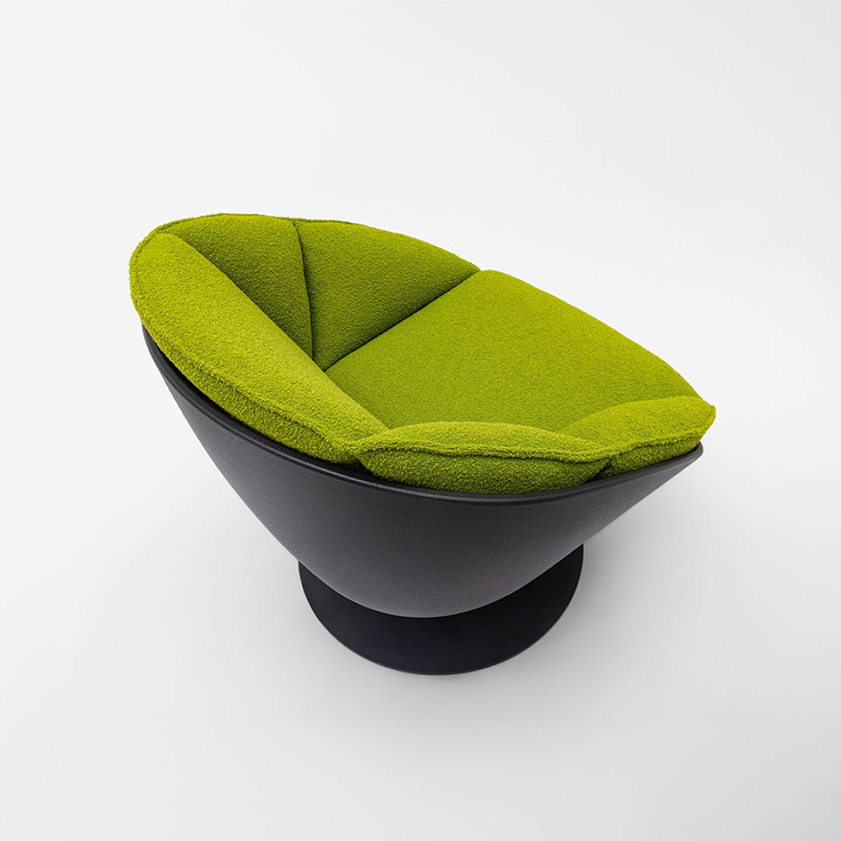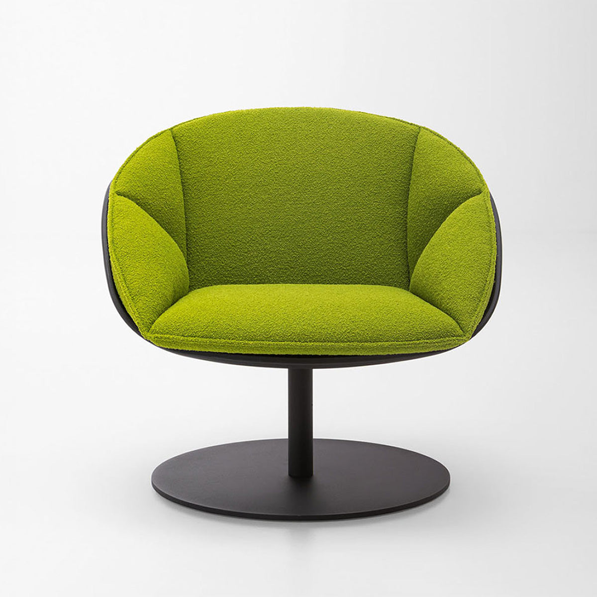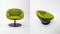 The Amable Swivel Lounge Chair, designed by Victor Carrasco for Paola Lenti, features a sleek aluminum base finished in matte avorio or graphite, accented with plastic spacers. Its molded polyethylene shell is available in bianco, ghiaccio, or graphite, harmonizing seamlessly with the sturdy base. The removable pad, crafted from recycled and biodegradable polyester fiber with a stress-resistant polyurethane core, is covered in waterproof polyester and secured by a sassafras wood stick. Designed for both outdoor and indoor use, it is recommended to protect the chair with a Winter Set cover. The Amable series, recognized with the 2018 German Design Award, embodies refined craftsmanship and versatility.