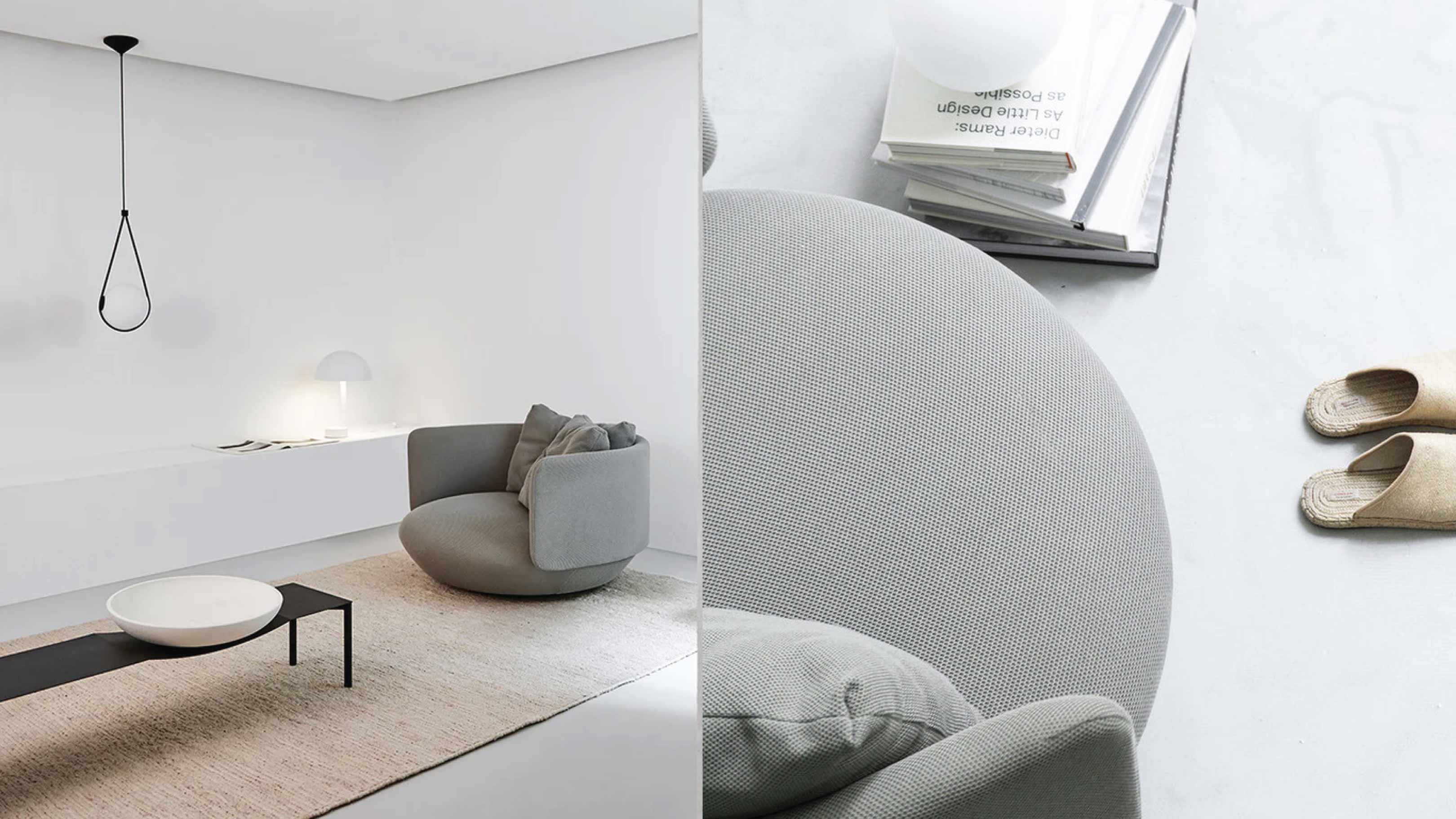 The exclusive WE—KNIT covering of the chair is crafted from recycled PET bottles, making it a sustainable and environmentally conscious choice. The fabric's seamless surface provides a soft and warm touch, offering a cozy and inviting feel that is perfect for lounging and unwinding.
